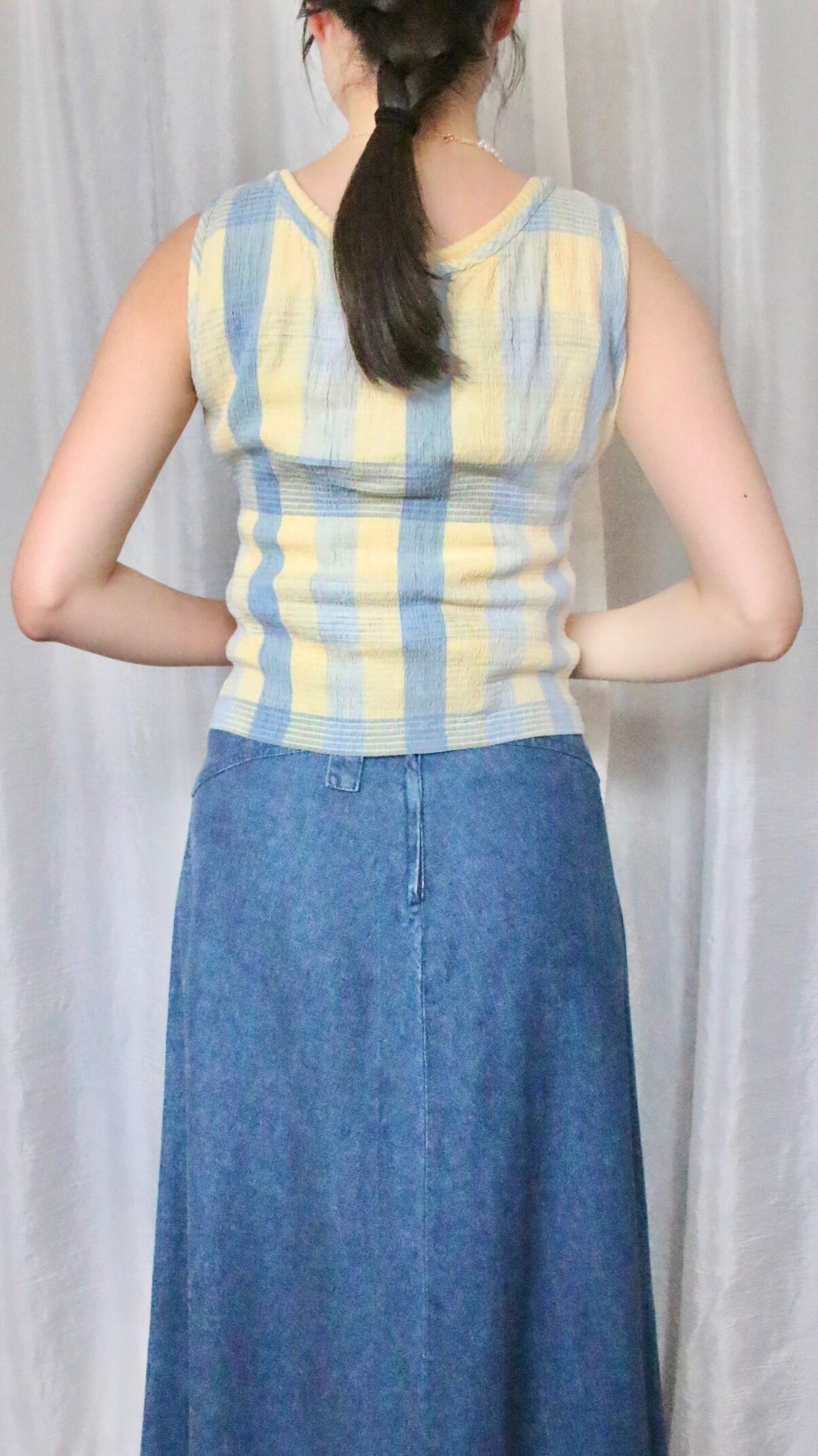 ミニ丈なのでハイウエストのボトムスに合わせやすく、お腹周りがもたつかないのも嬉しいポイント。