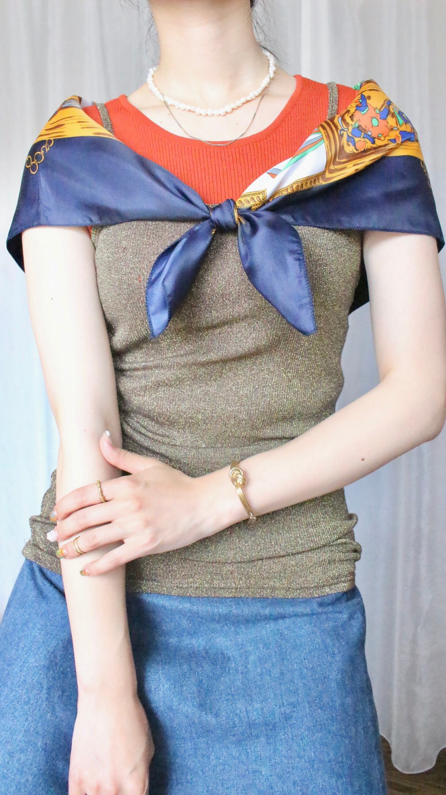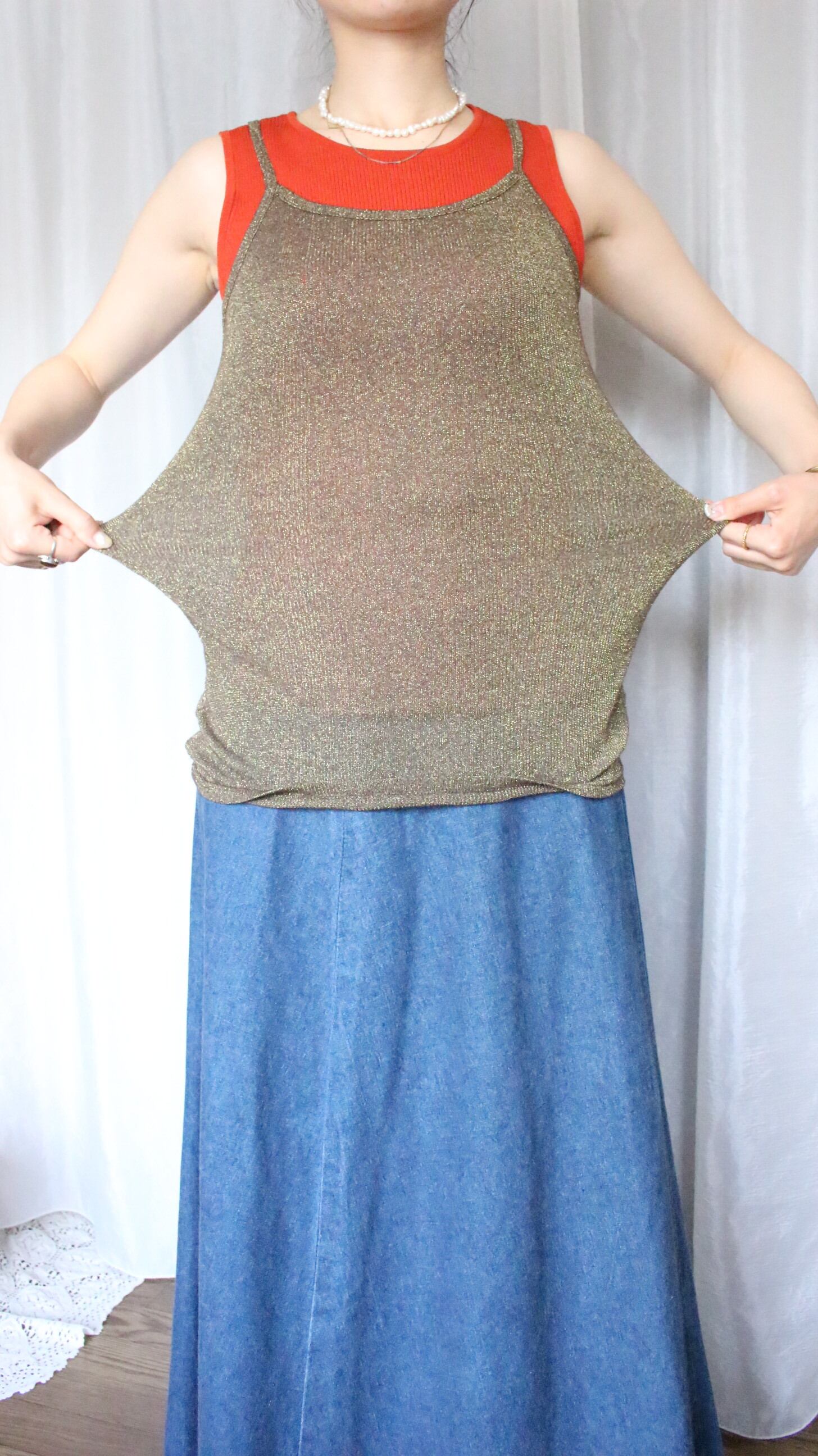 きらきら光るゴールドの生地が華やかで、Tシャツばかりになってしまう長い長い夏に持っておくと便利なアイテム。