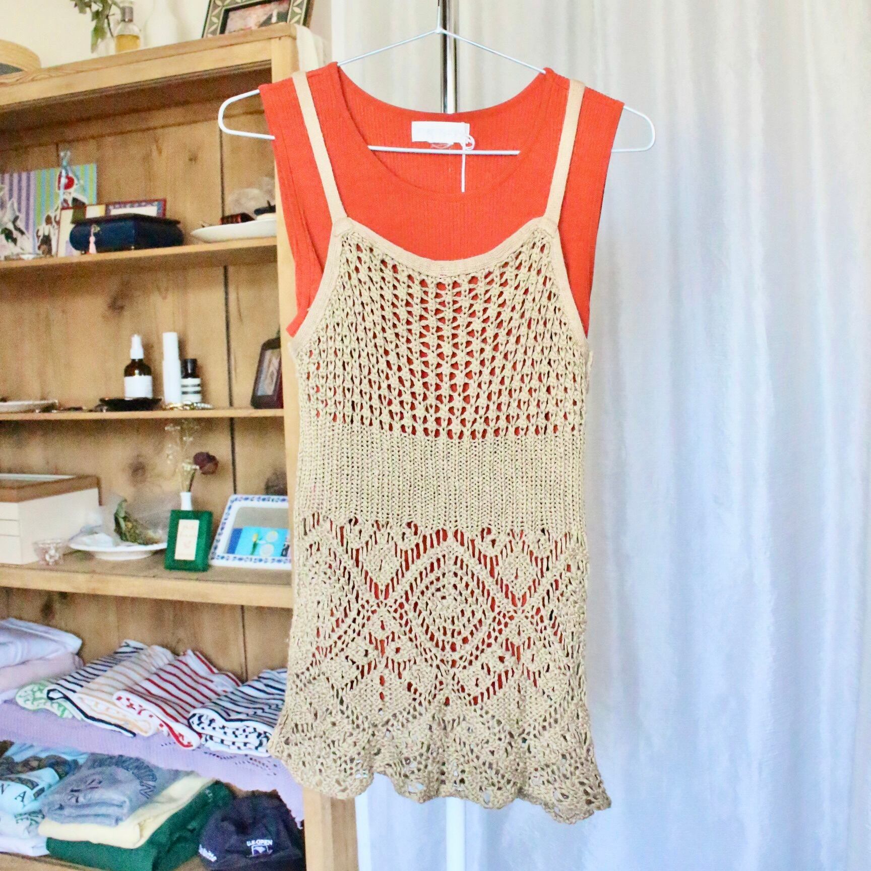 赤、ブラウンのタンクトップ