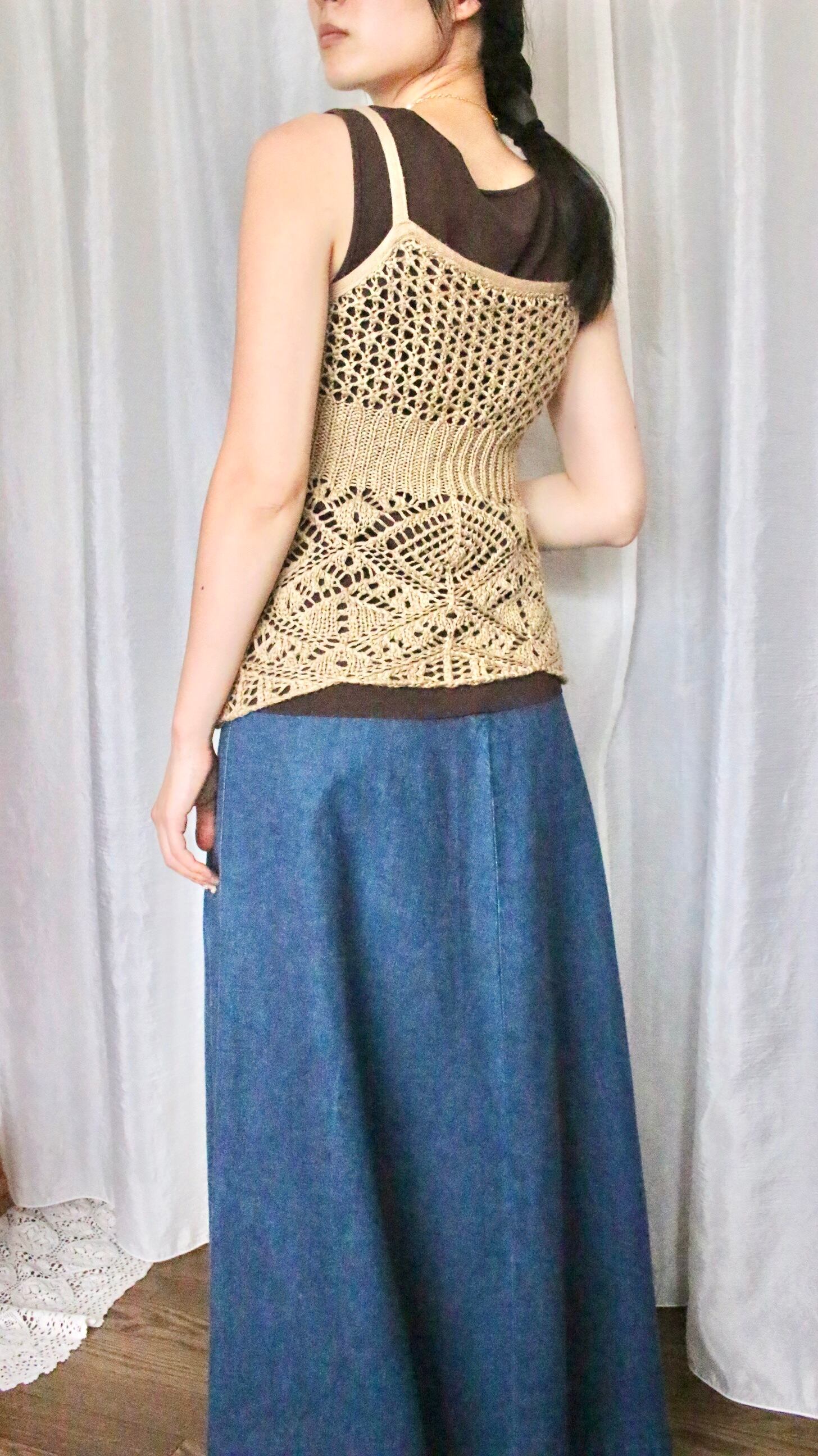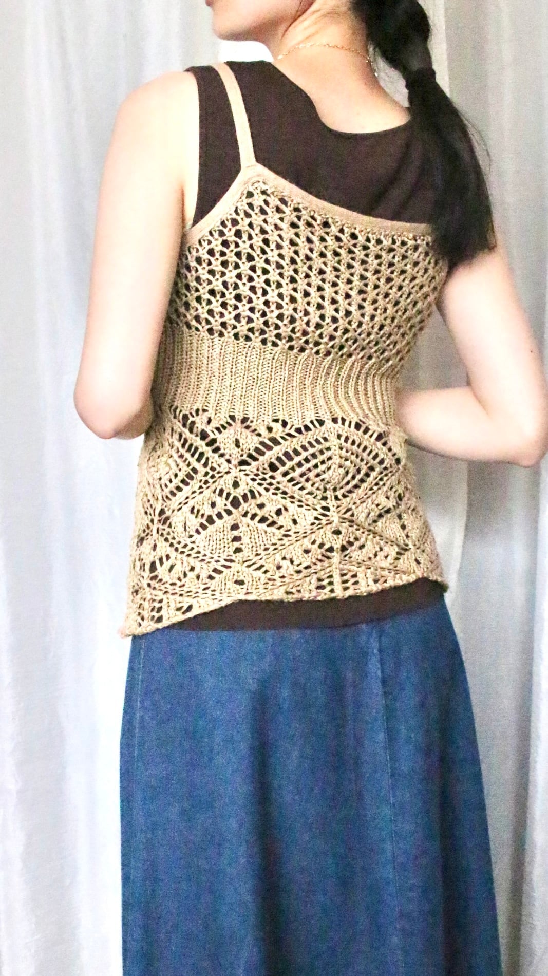編み模様が素敵な、伸縮性のあるデザインニットキャミソール。