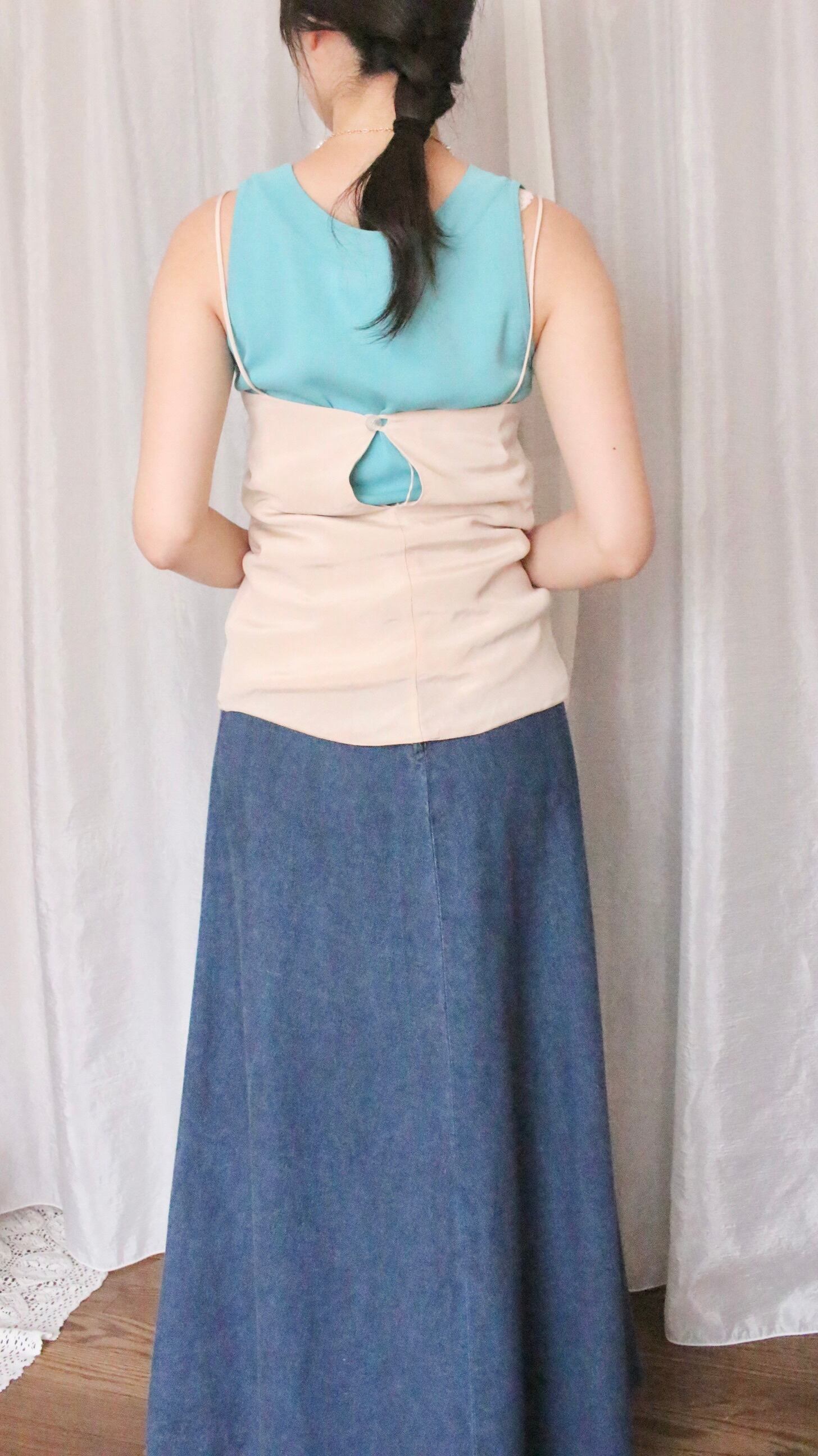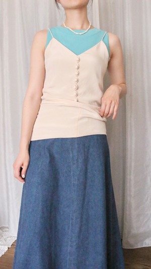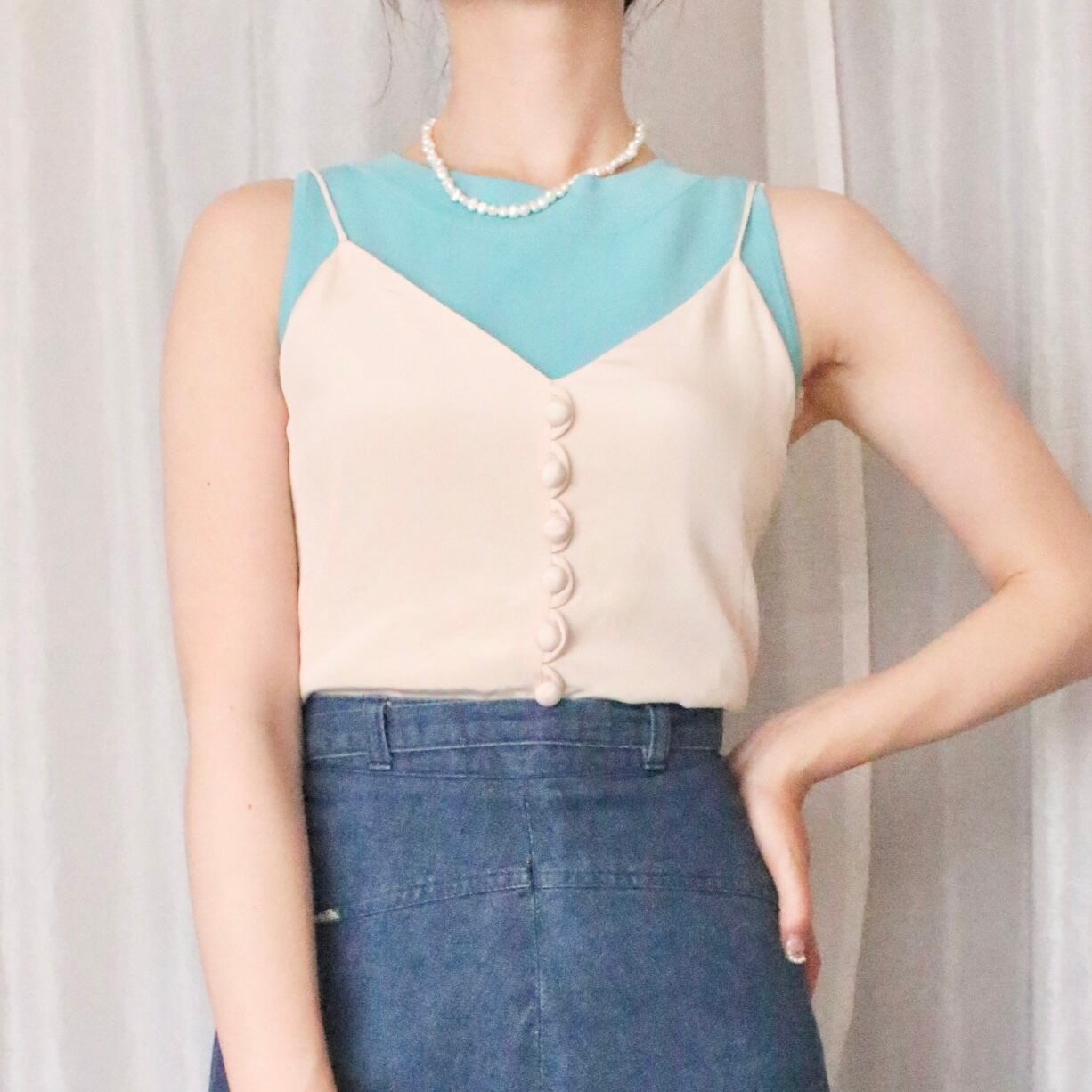 スタイリングのブルーのチェックのタンクトップやスカイブルーのタンクトップと相性がとっても良く、セットでのご購入もおすすめいたします。