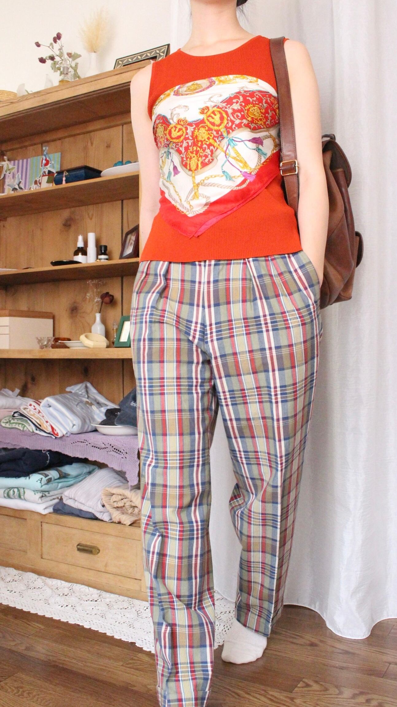 チェックのパンツ