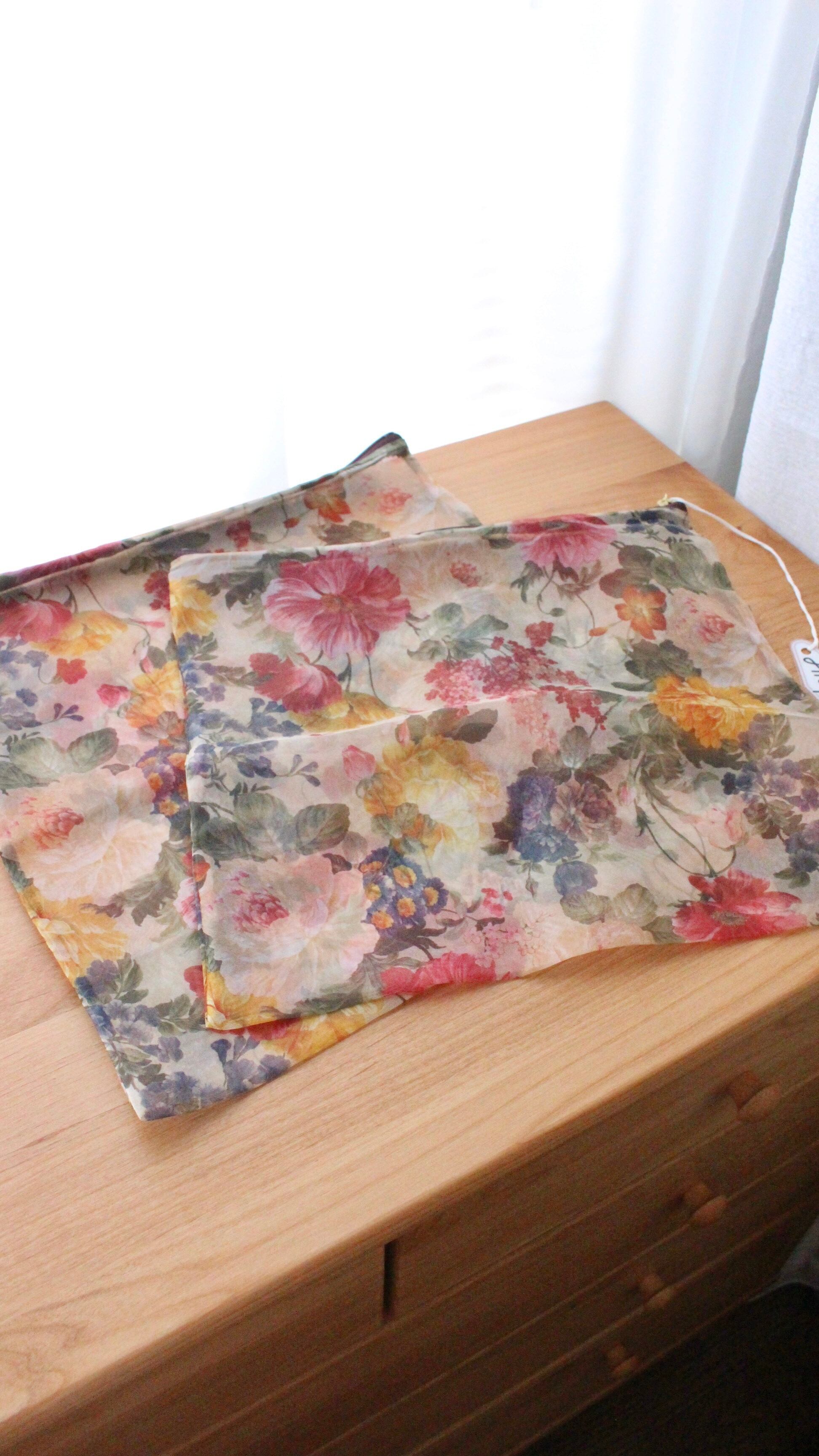 シアーで涼し気、花柄がラグジュアリー、かつカラフルでポップさも兼ね備えた生地です。