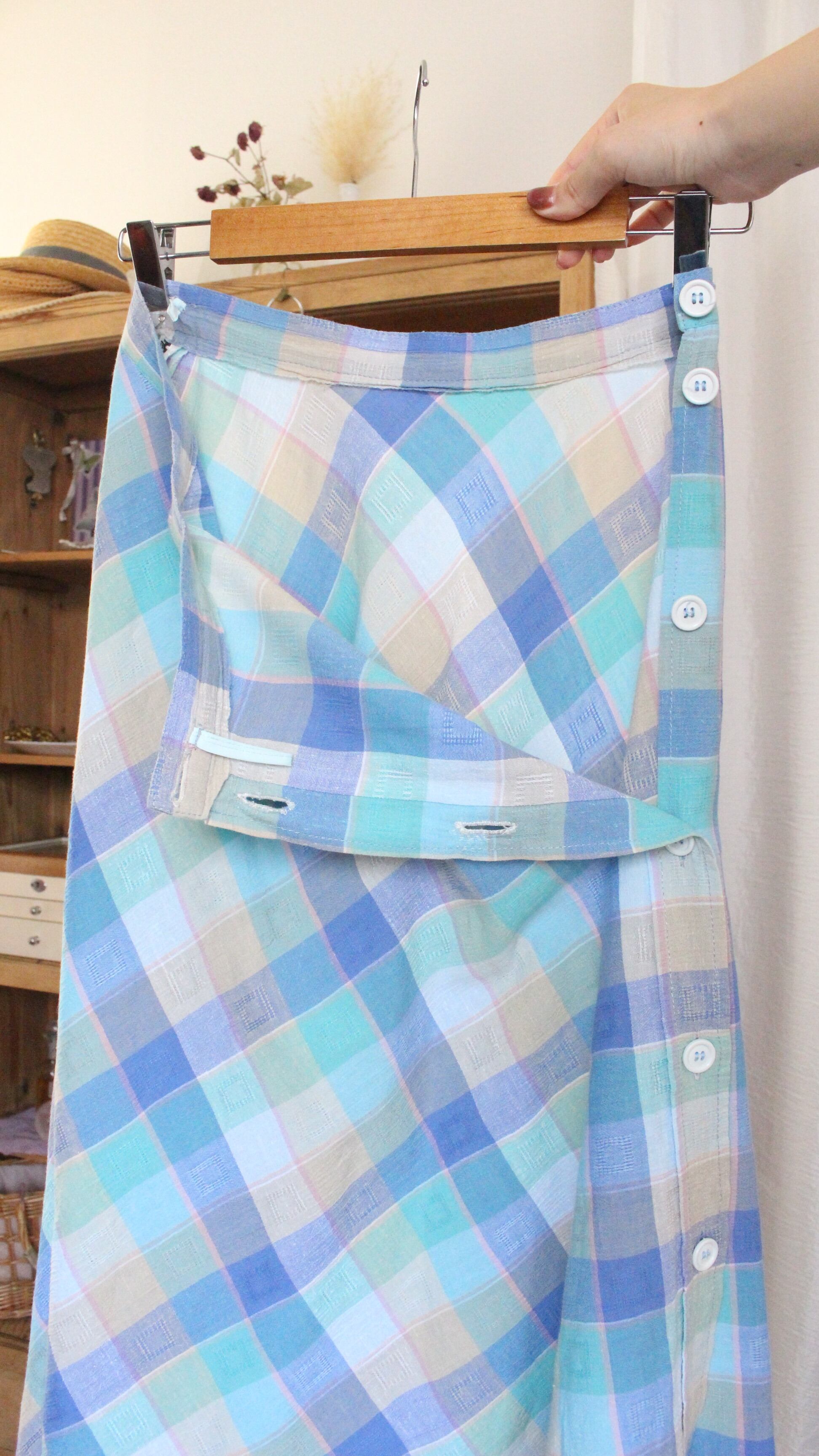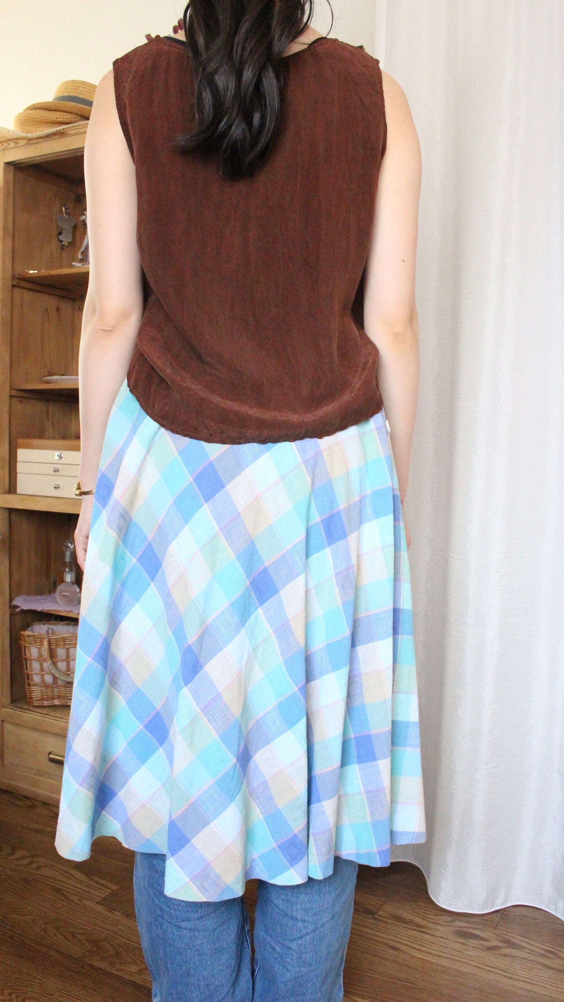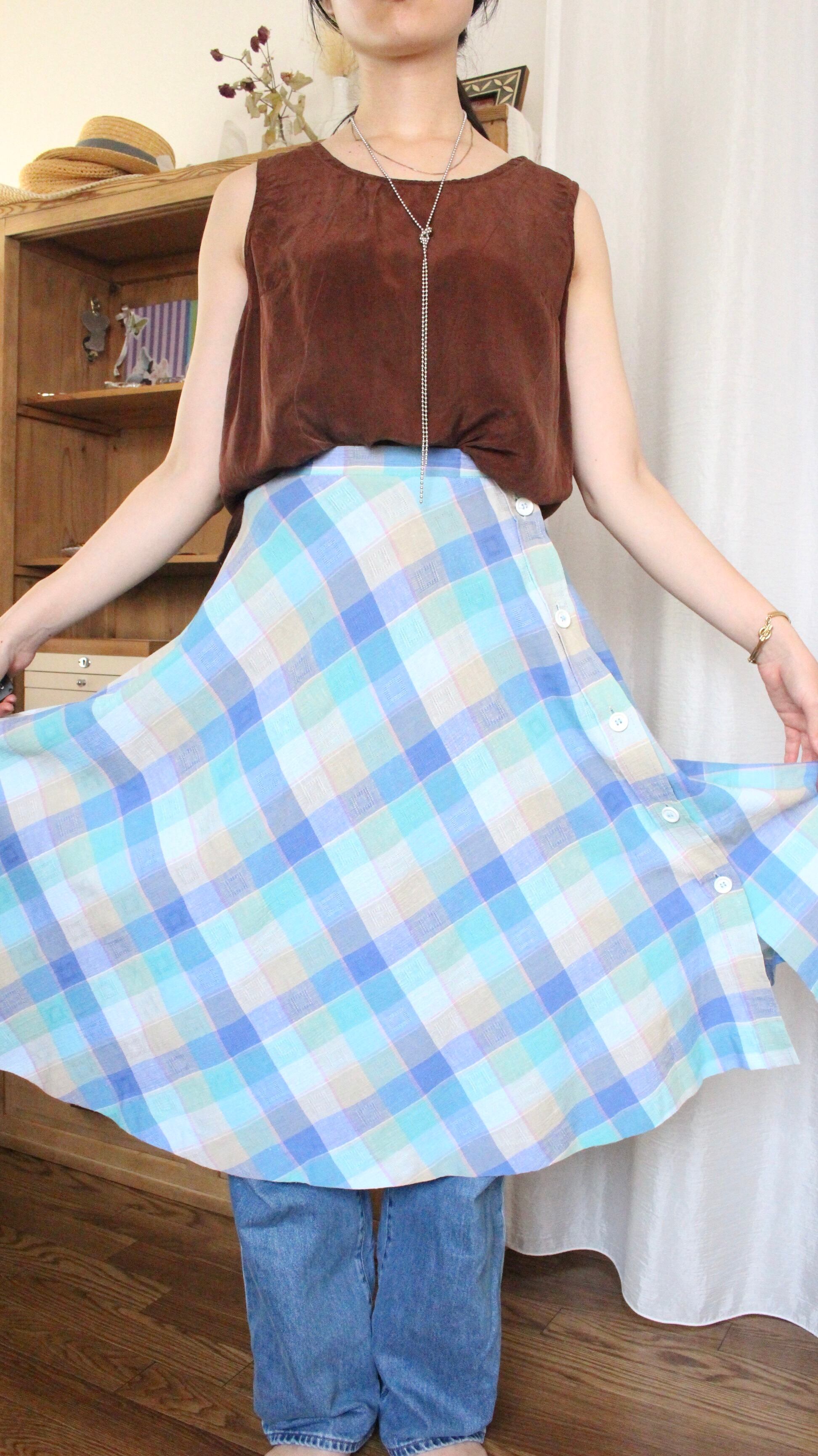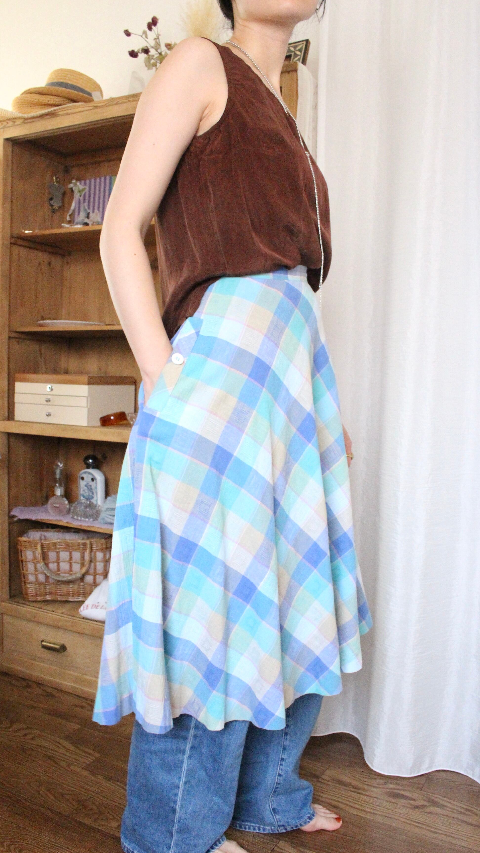 チェックスカート Aライン ブルー【1078】