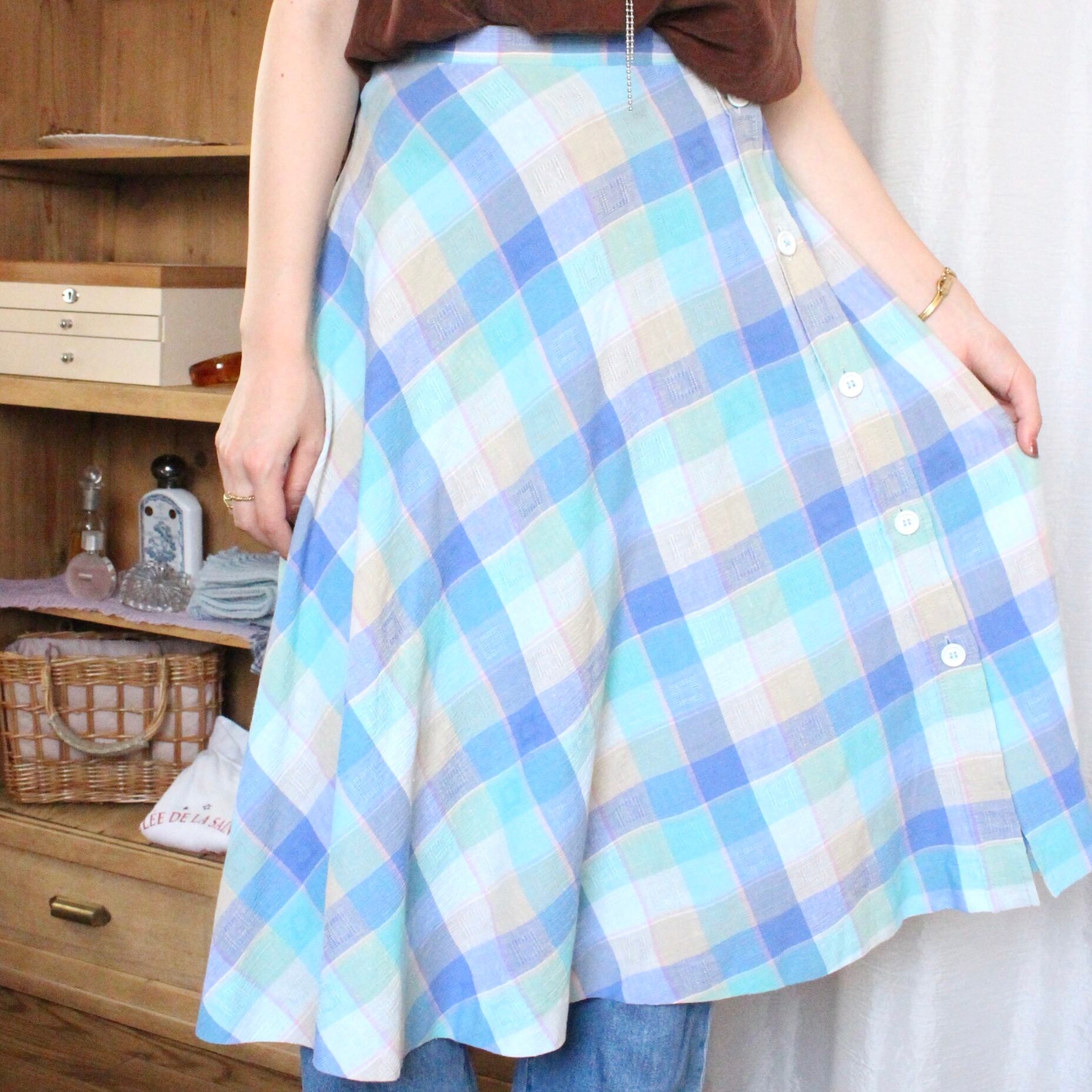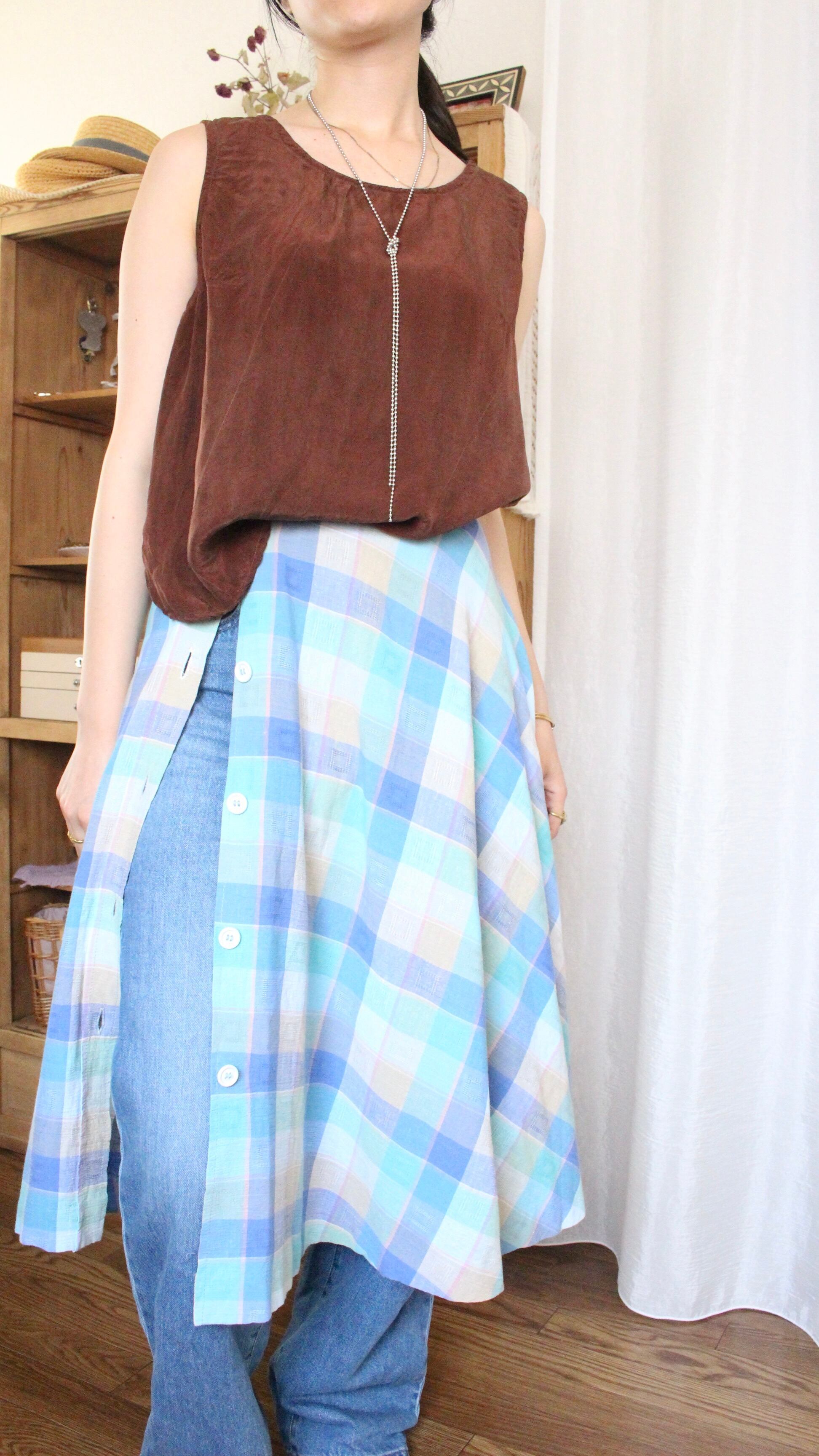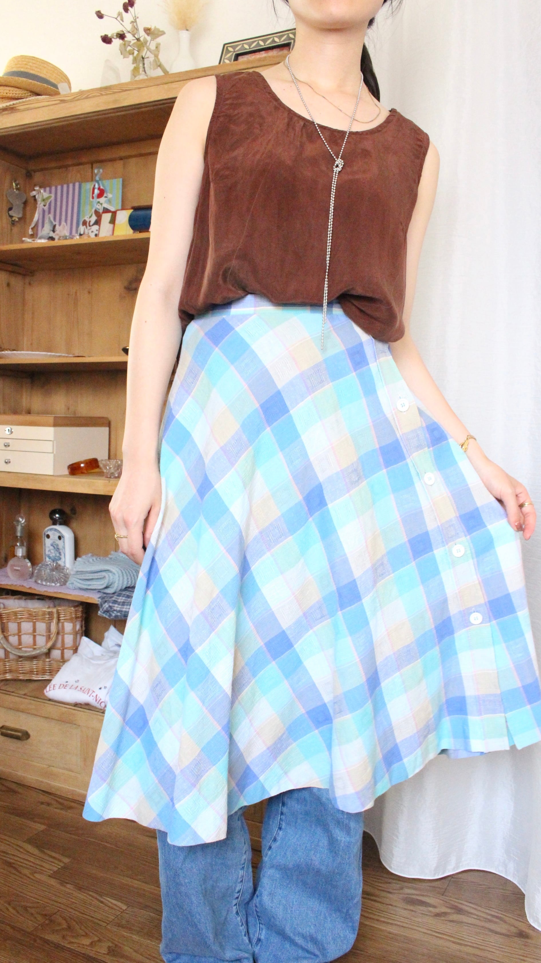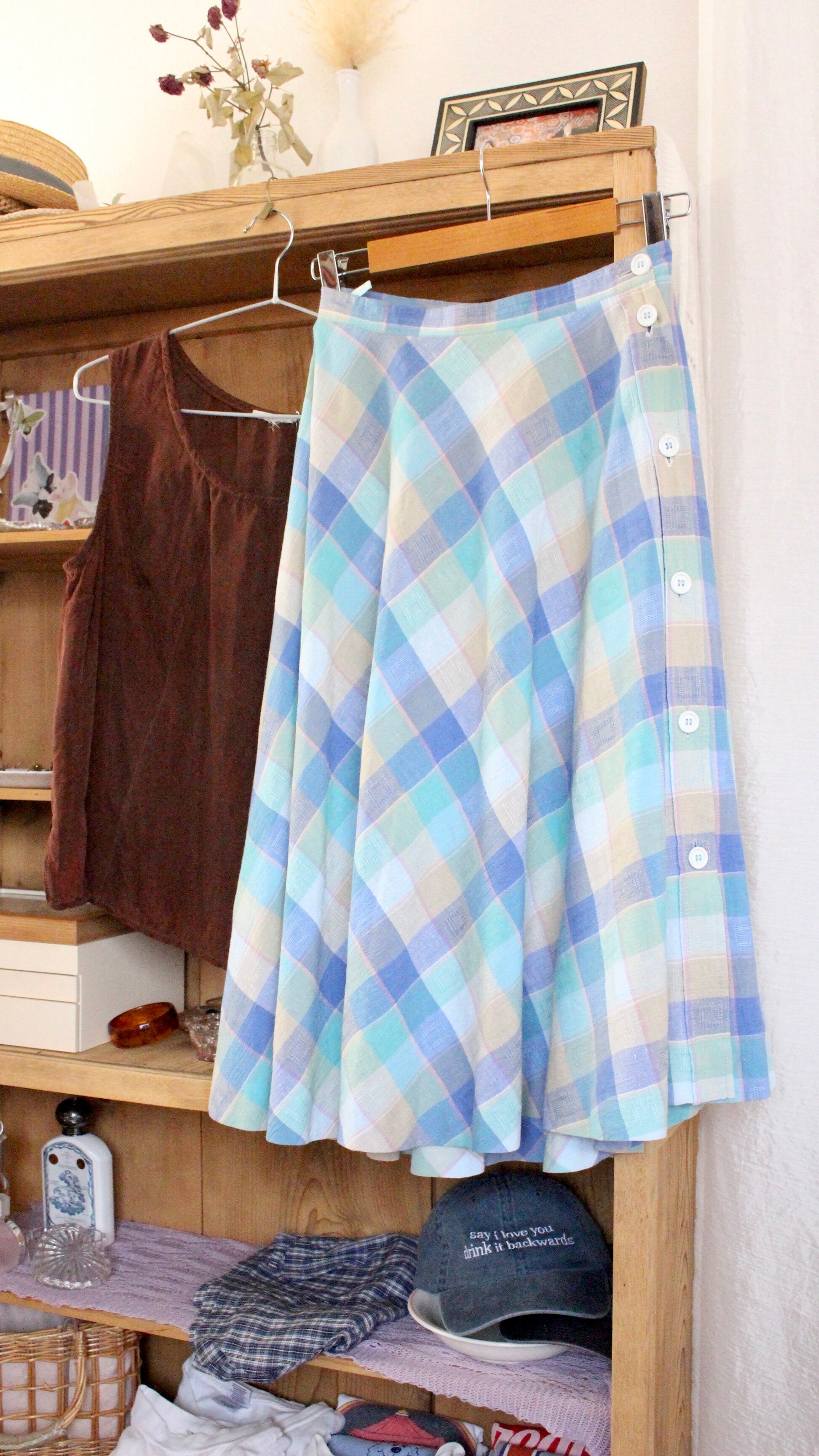 チェックスカート Aライン ブルー【1078】