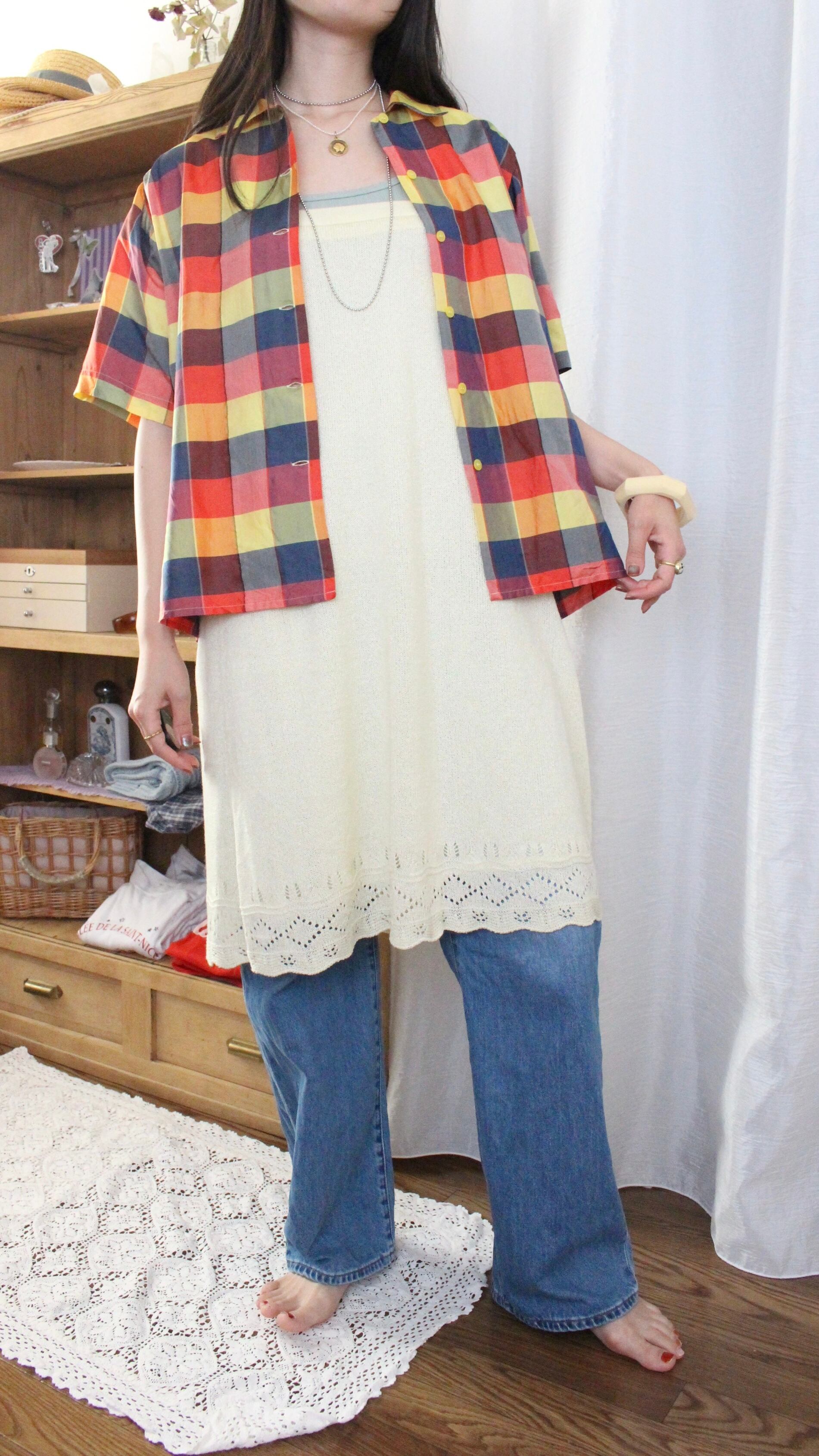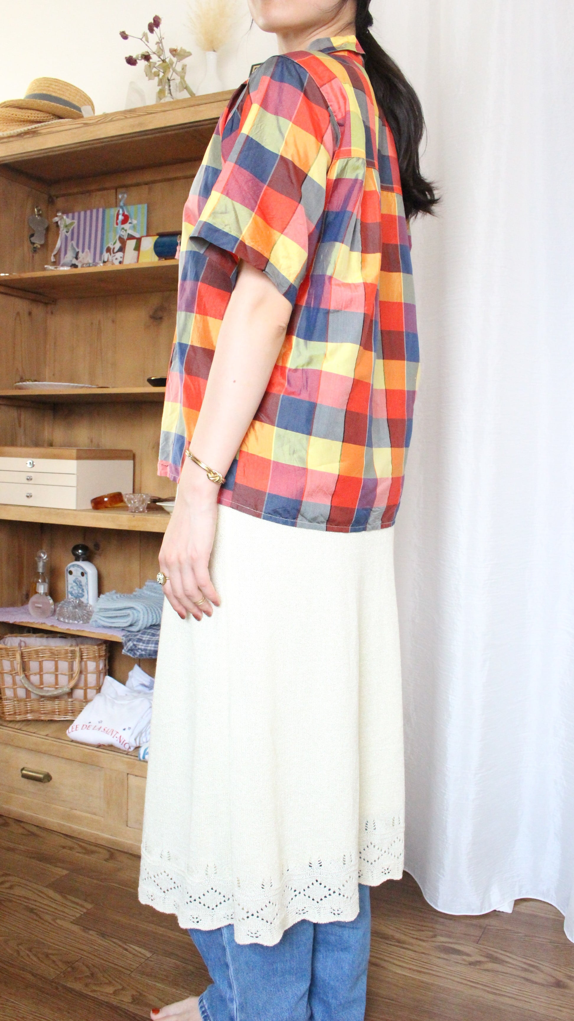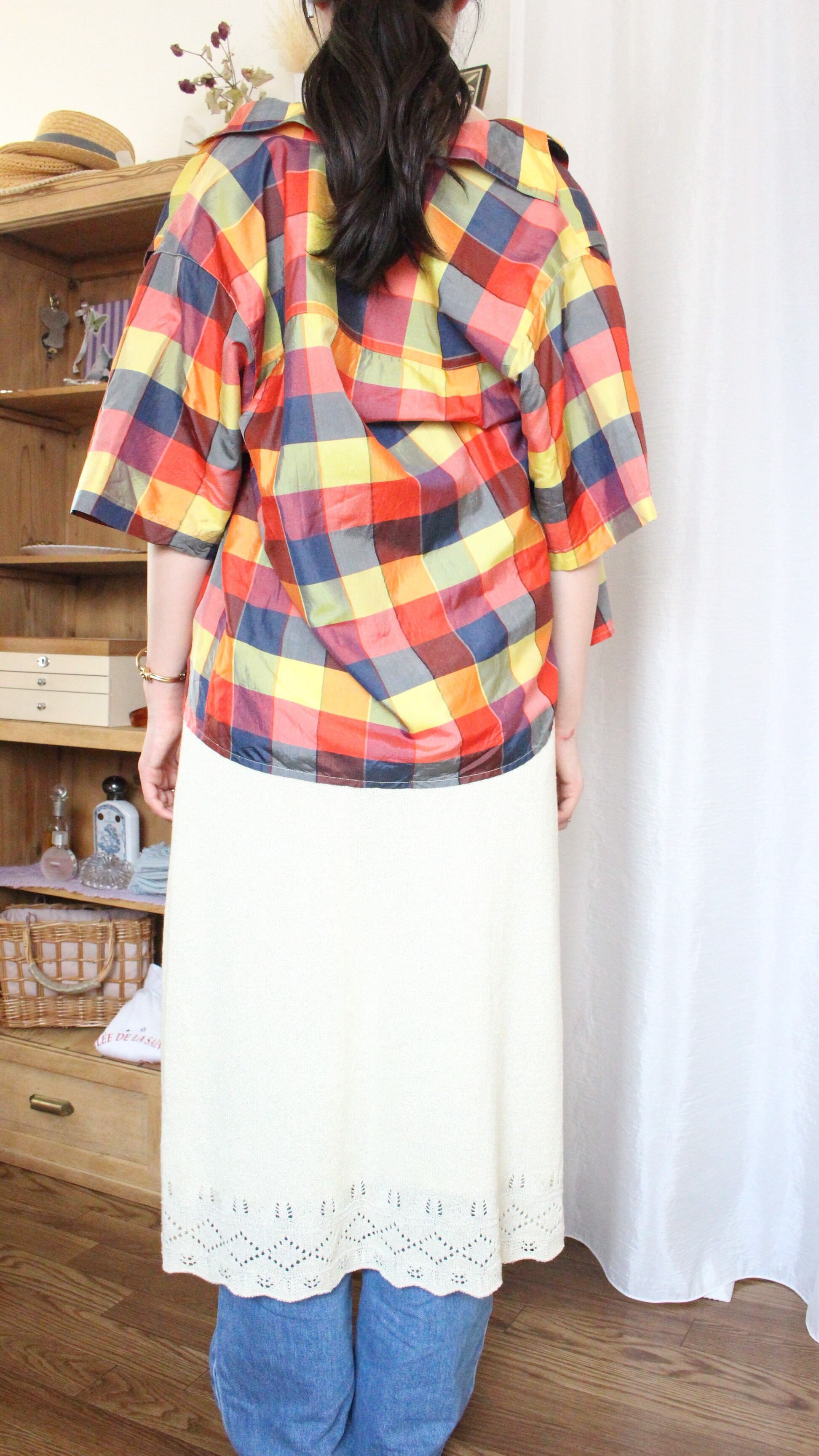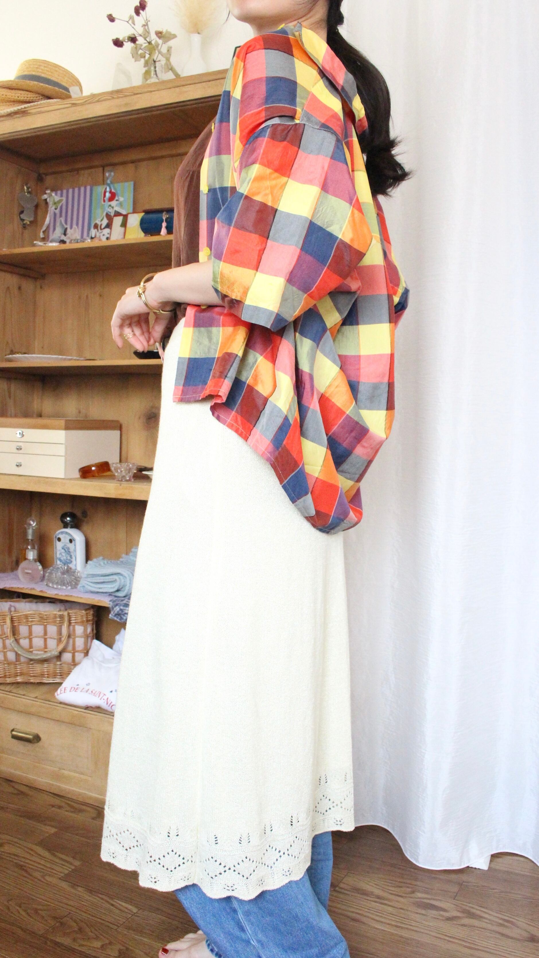 薄手なので羽織のようにくたっとゆるっとしたシルエットで着ていただくこともできます。