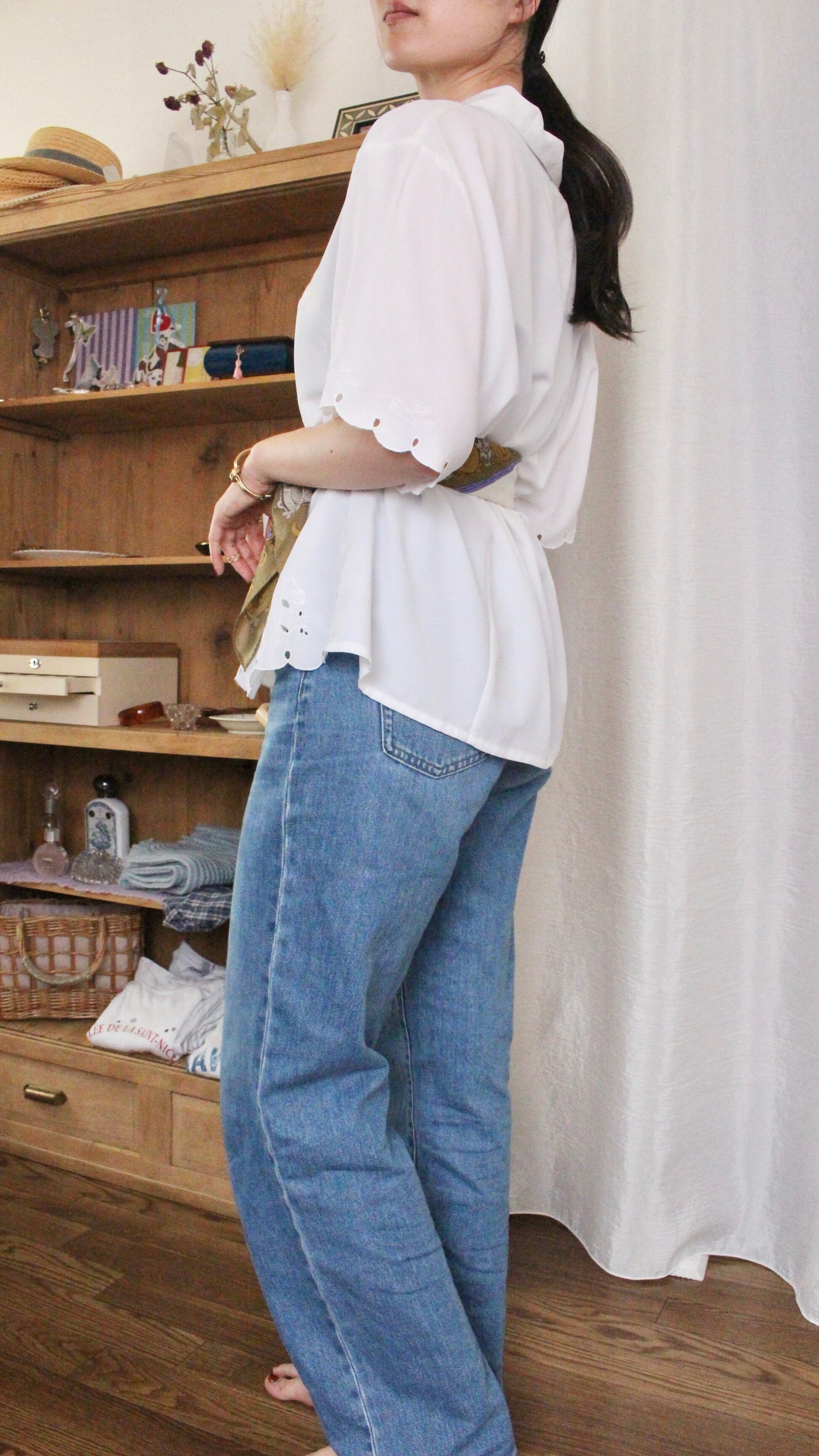 2Xサイズとおおきめですが、薄手なのでくたっとゆるっとしたシルエットで着ていただくと体系カバーできつつ、着ぶくれもせずキレイめにさらっと着ていただけるのではないかと思います。