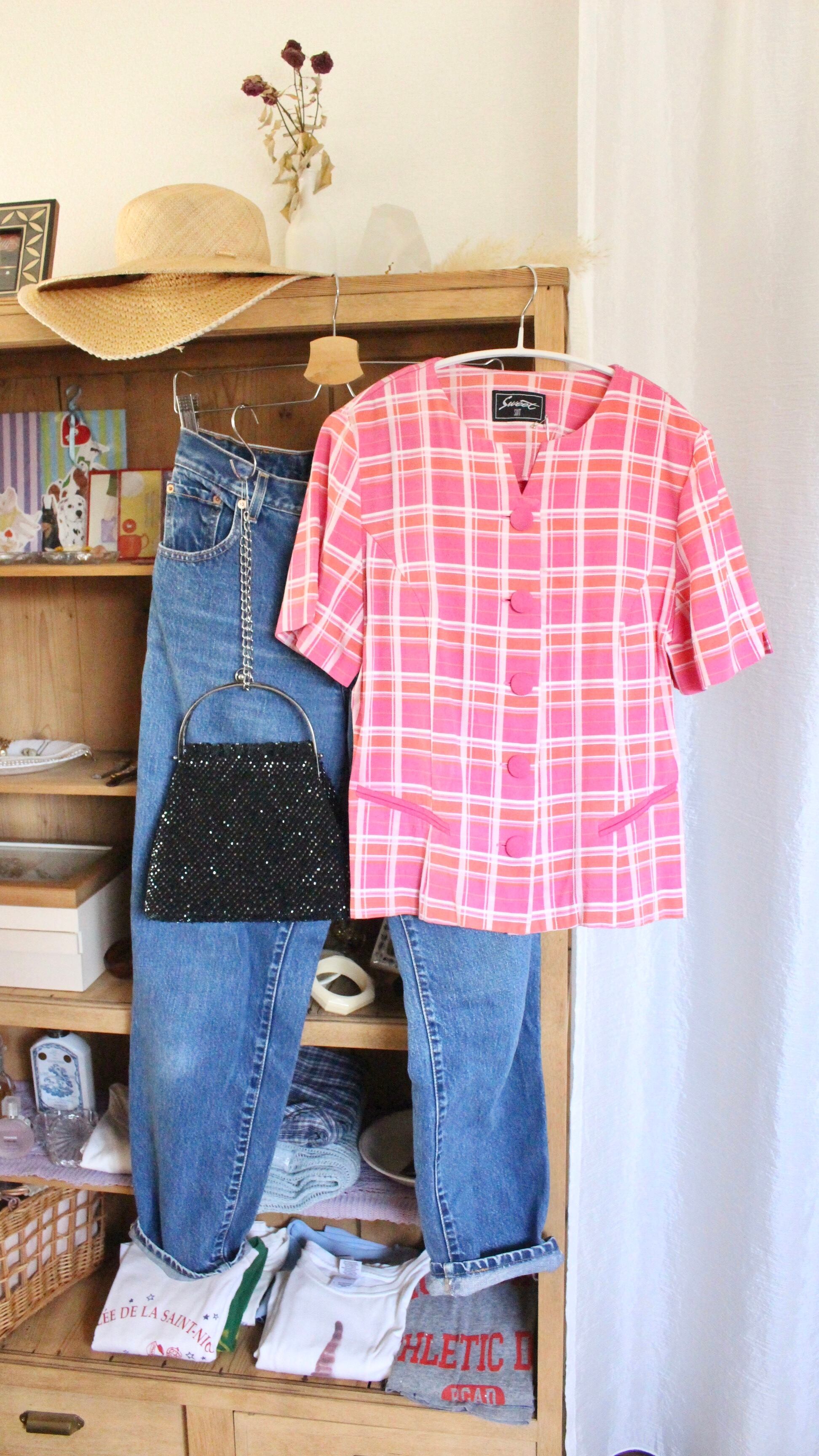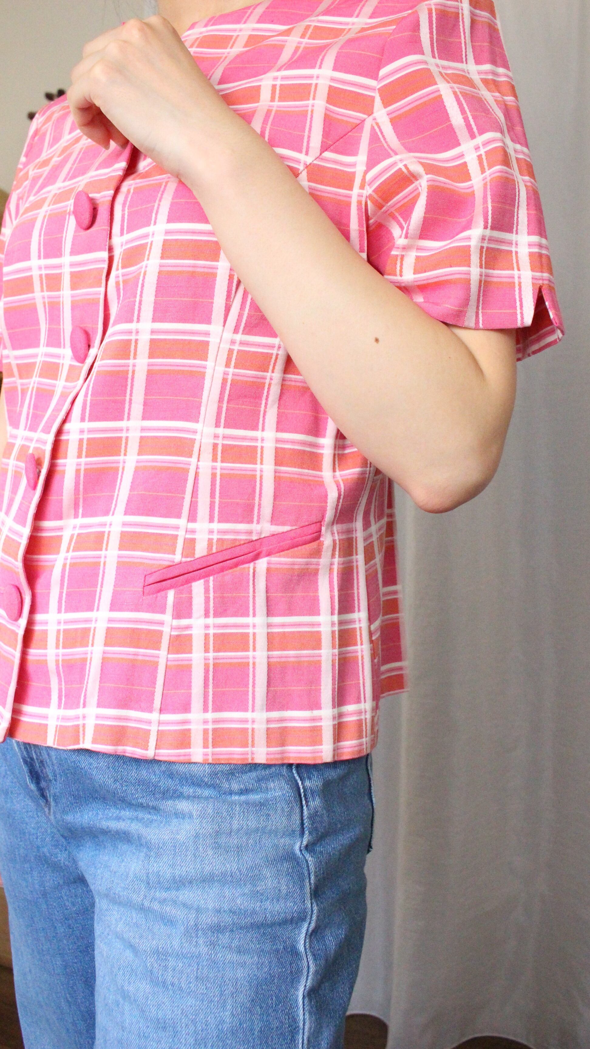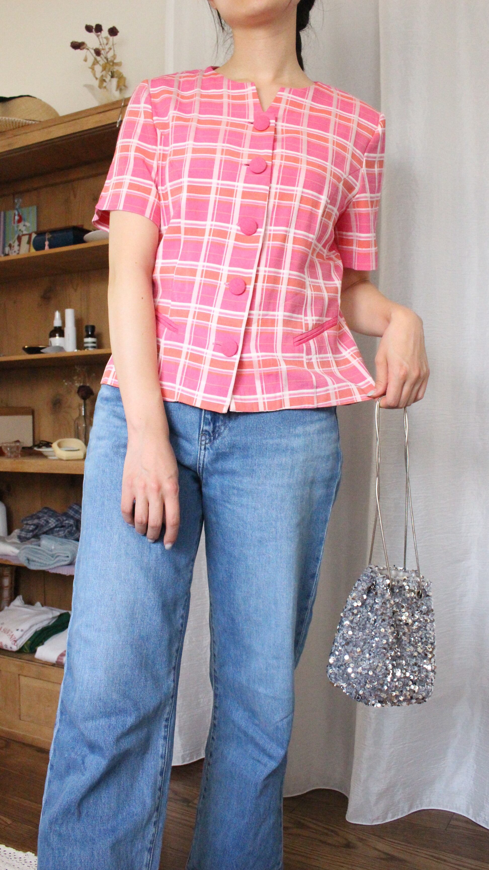 レトロチェックブラウス ピンク【】