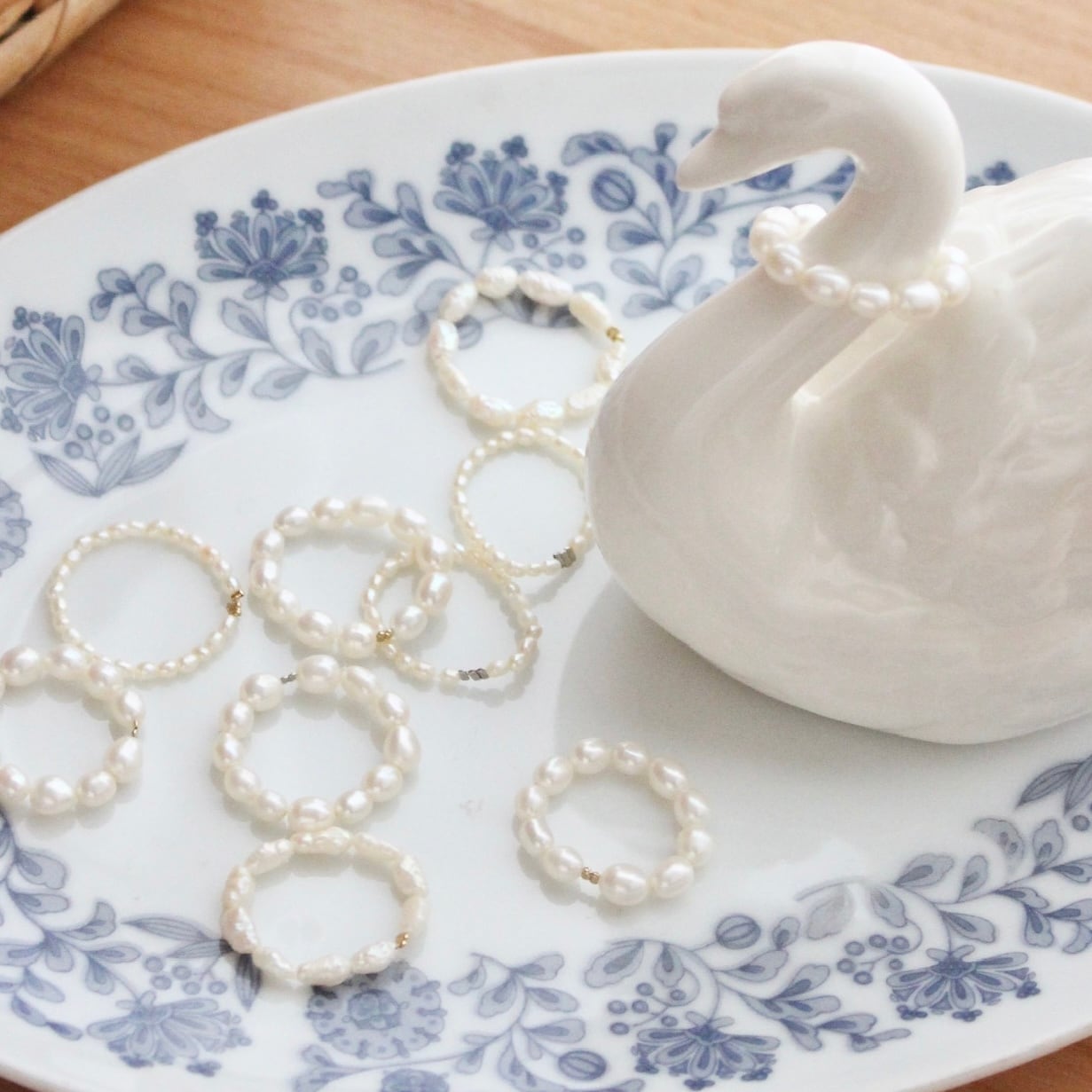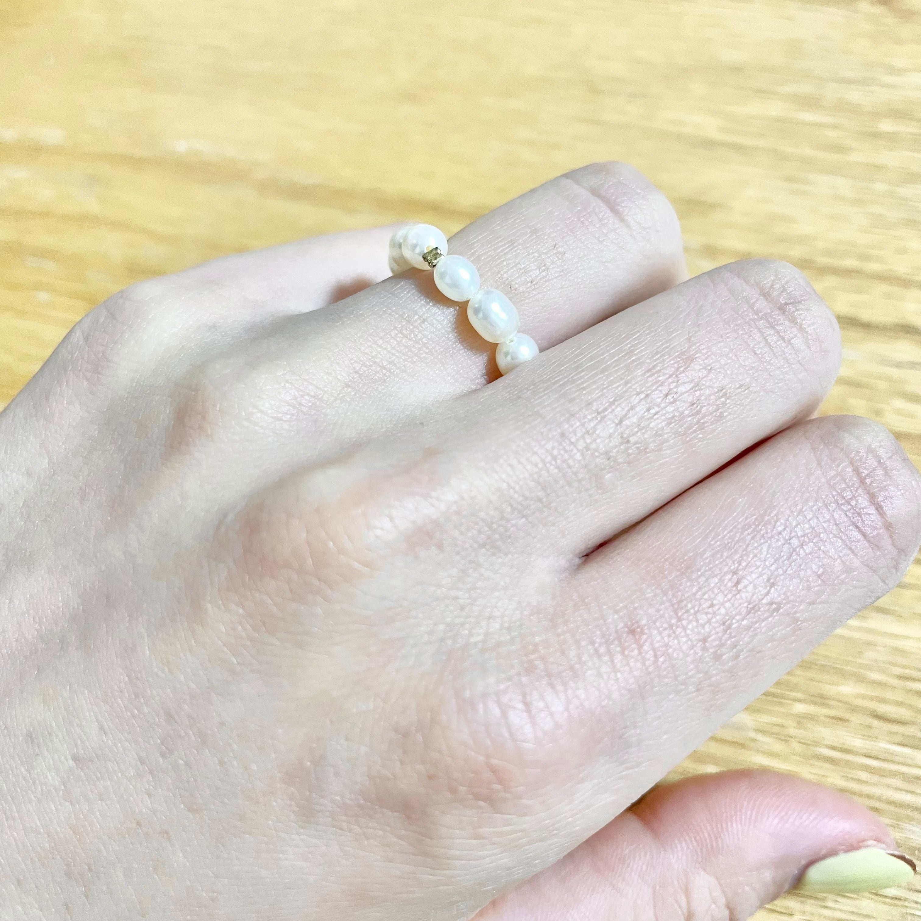 もうひとつ、粒の大きさがさまざまなバロック淡水パールのリングもございます。