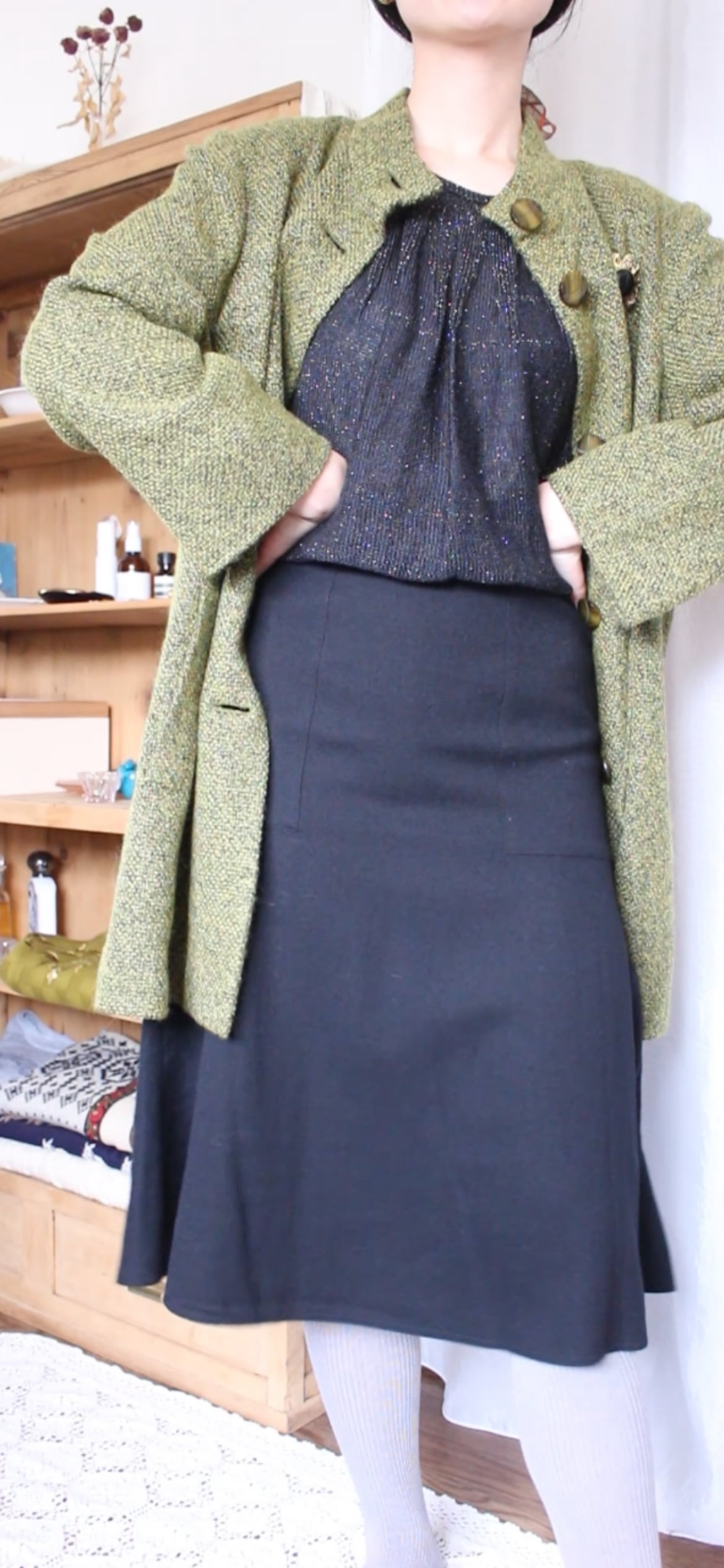 ゆったりしたサイズなので、すっきりしたストレートラインのスカートでも、パンツでも、ワイドなパンツでもフレアなスカートでも何にでも合います◎