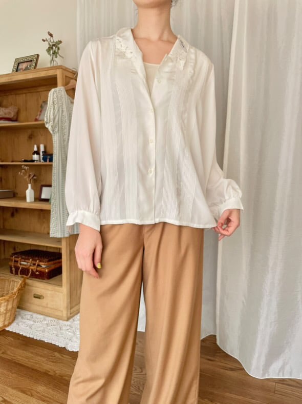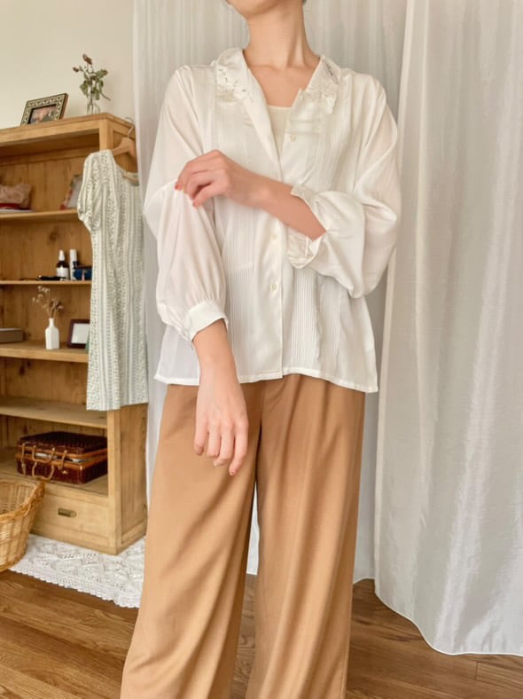レース襟ブラウスシャツ ホワイト