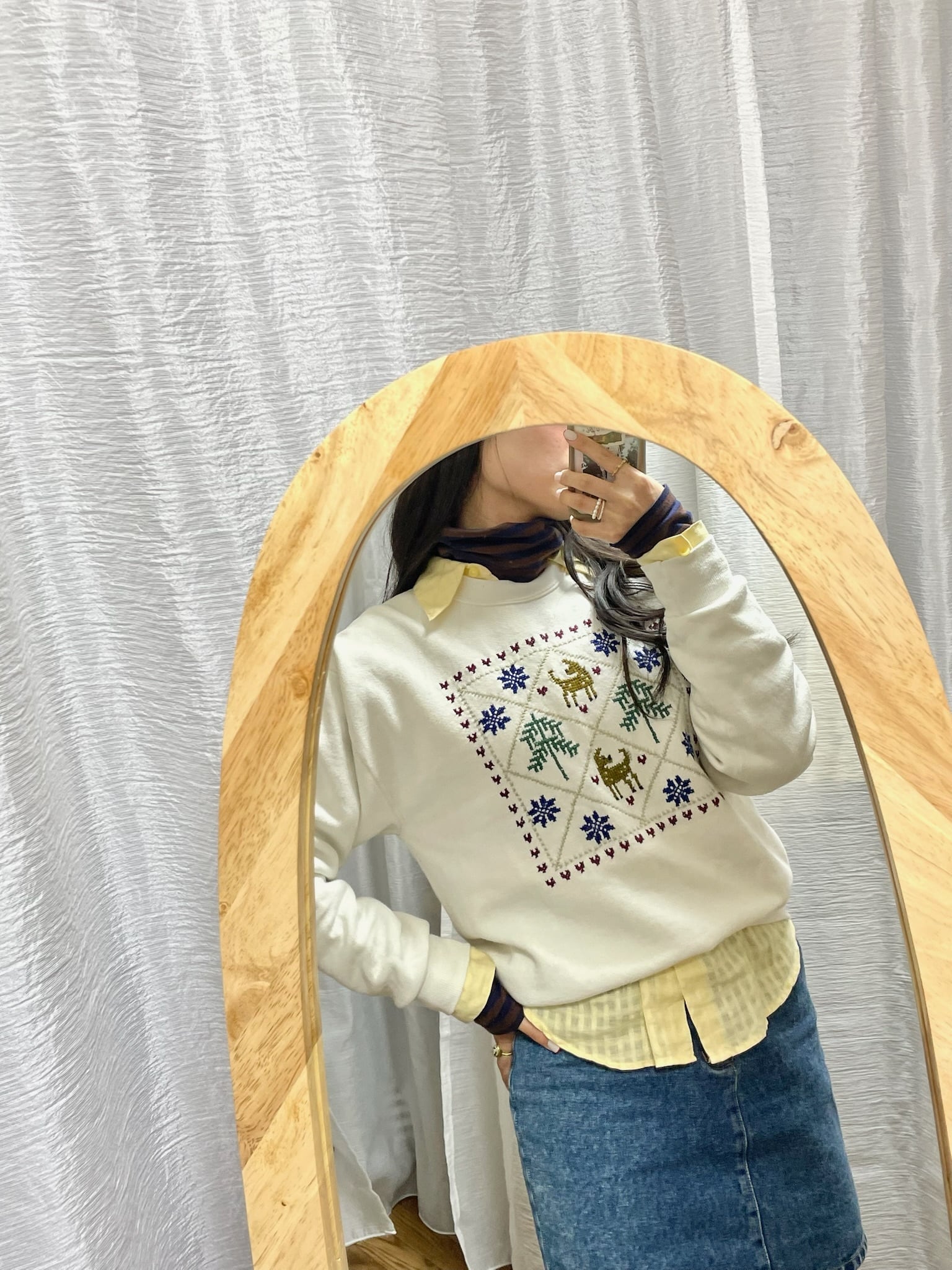 中にシャツを着たり、タートルネックニットを合わせたりして、冬にも楽しんでいただけます◎