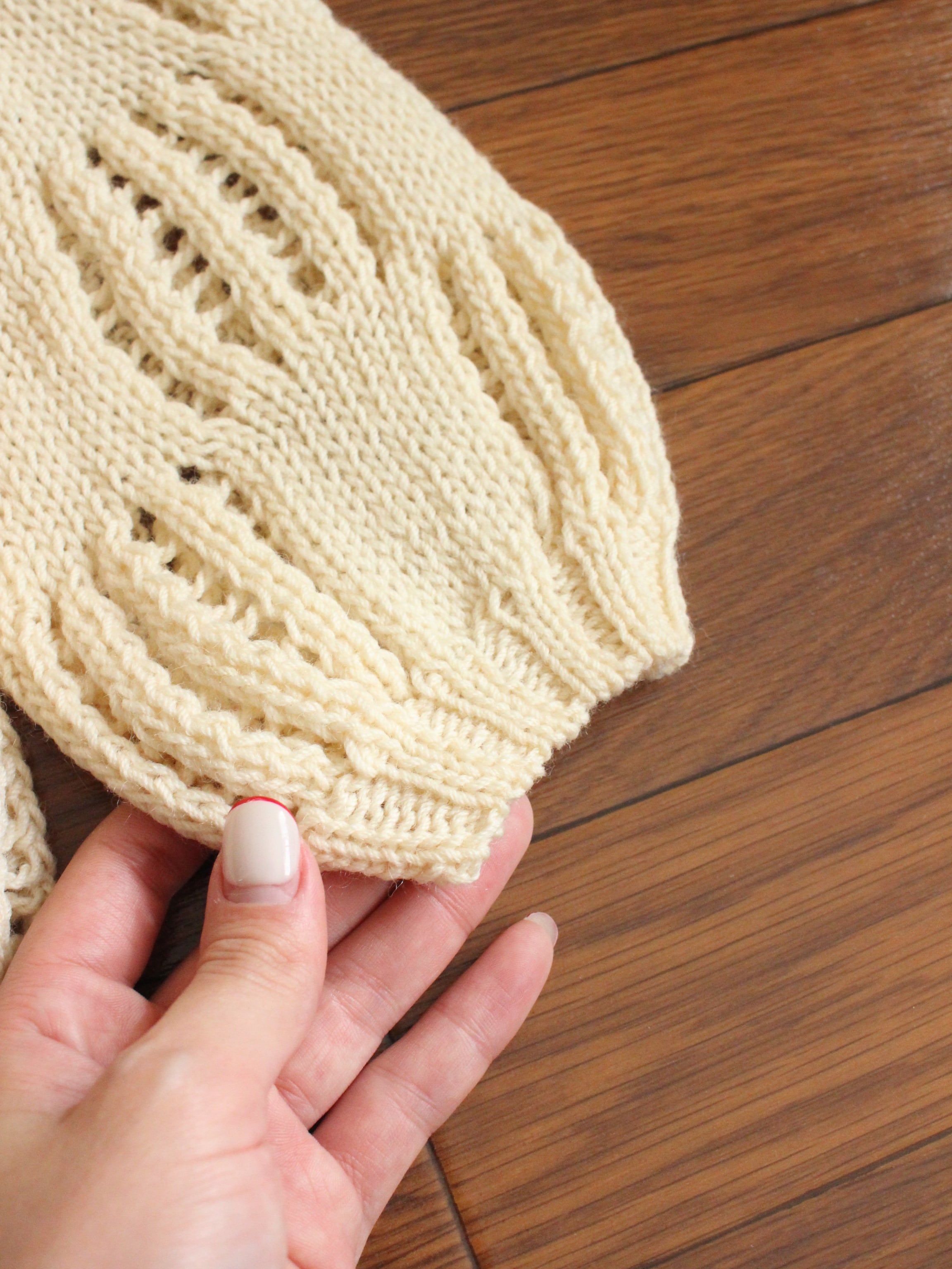 [素材]手編みのため不明(アクリルのような手触りで、ほわほわふさふさしていません)