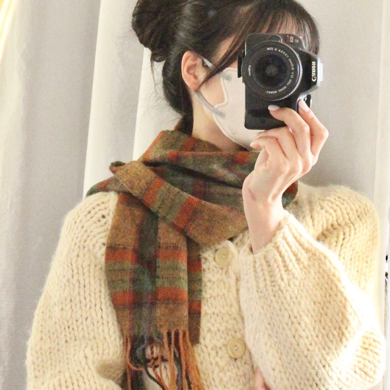 チェックのウールマフラー