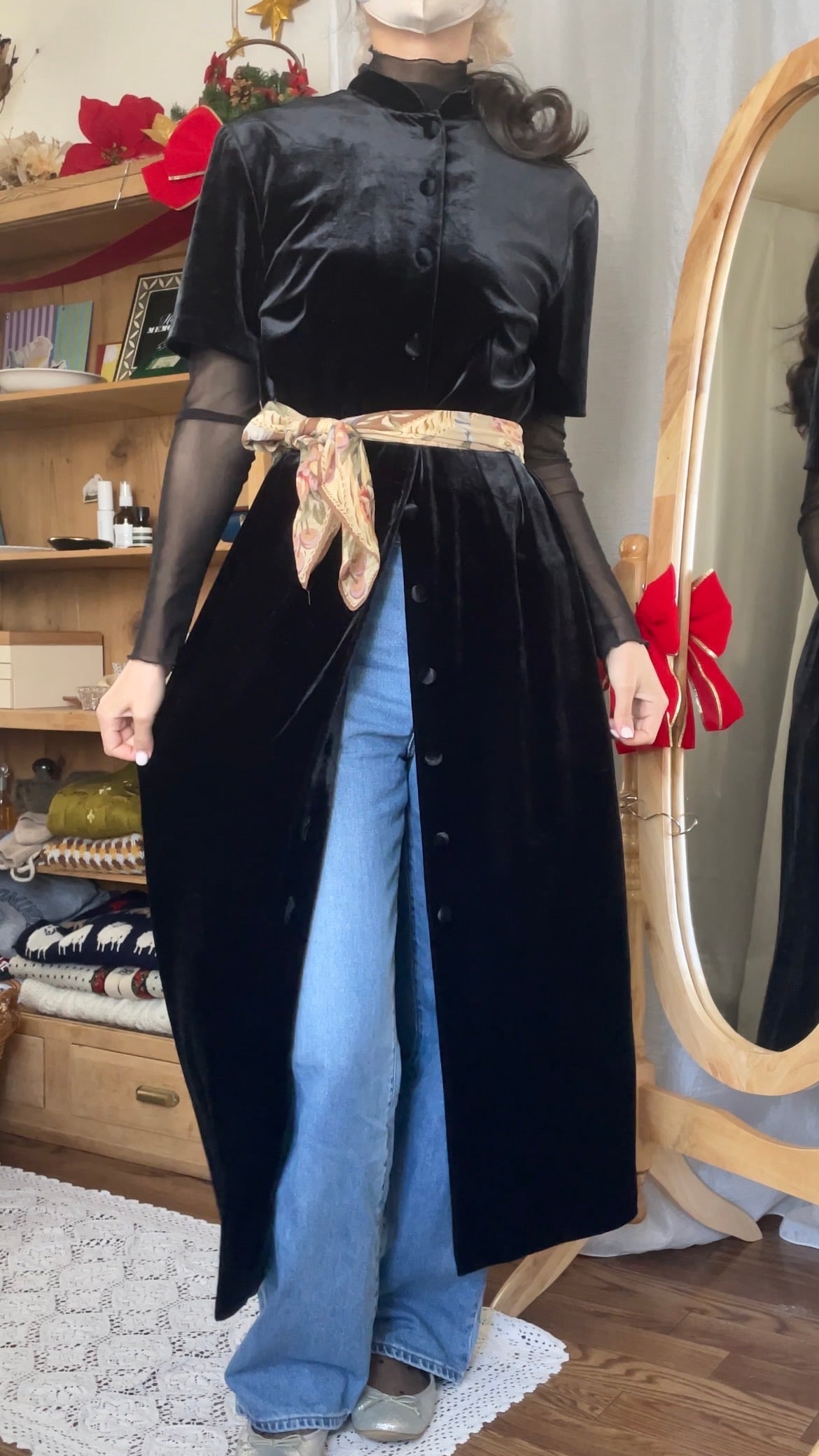 前のボタンで完全に前が開けるのでガウンのように来てもおしゃれです。