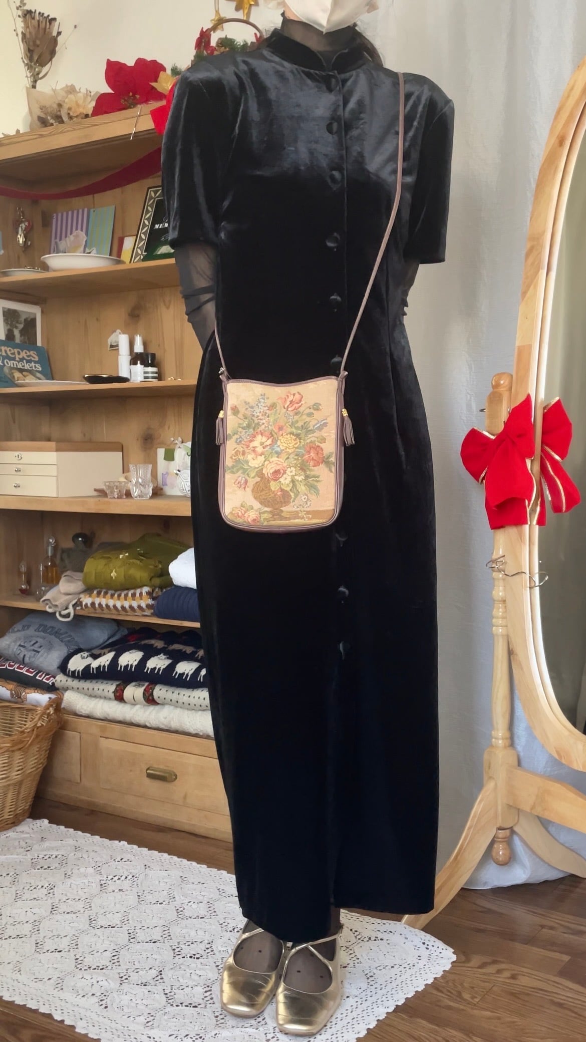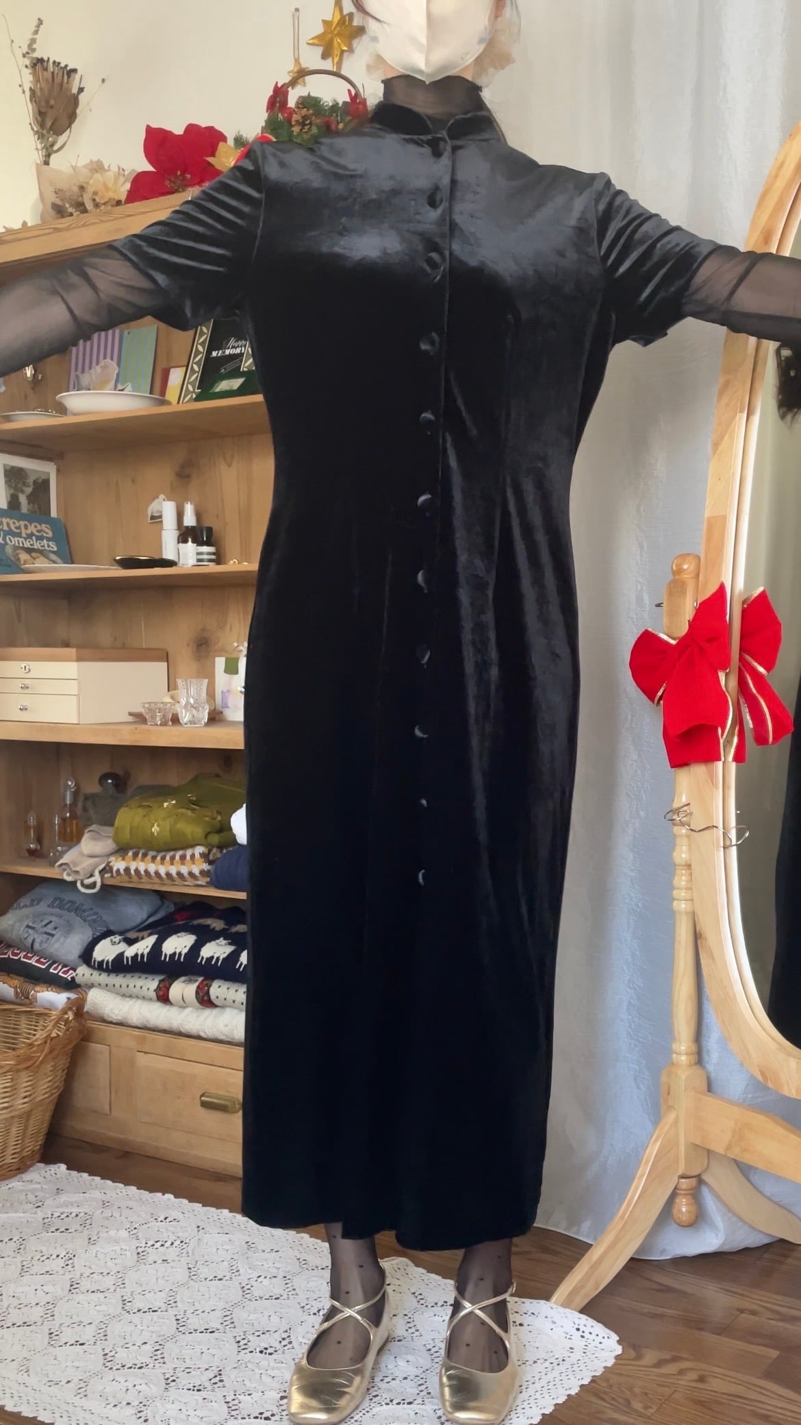 ベロアロングドレス チャイナ ブラック