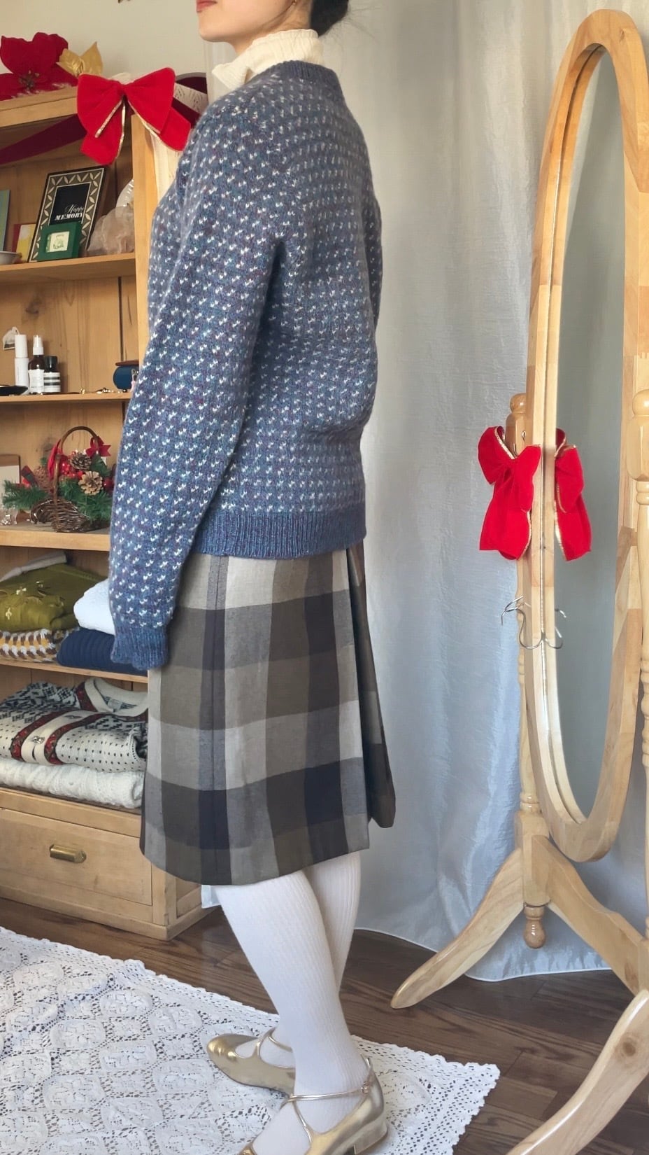 例えばチェックやボーダーなど、少し大きい柄のものと合わせるとニットの細かいドット柄とうまく調和すると思います。