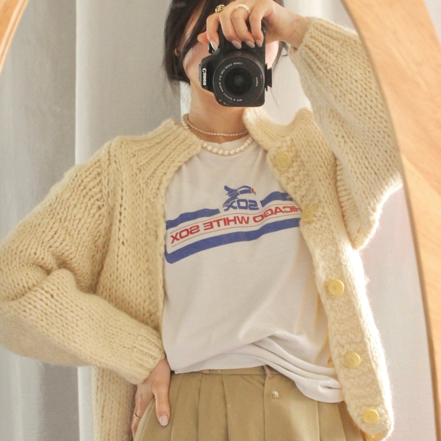 柄がなくシンプルな白色なので本当に何にでも合わせやすく困ったらさっと羽織ればどんなコーデにもぴったり。