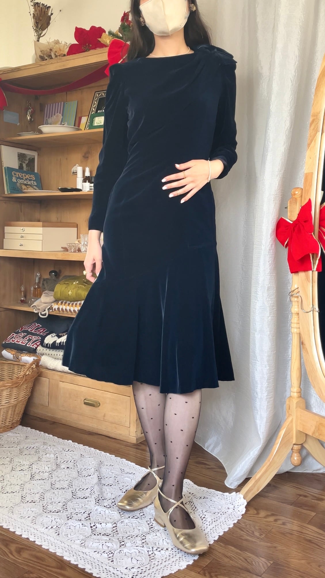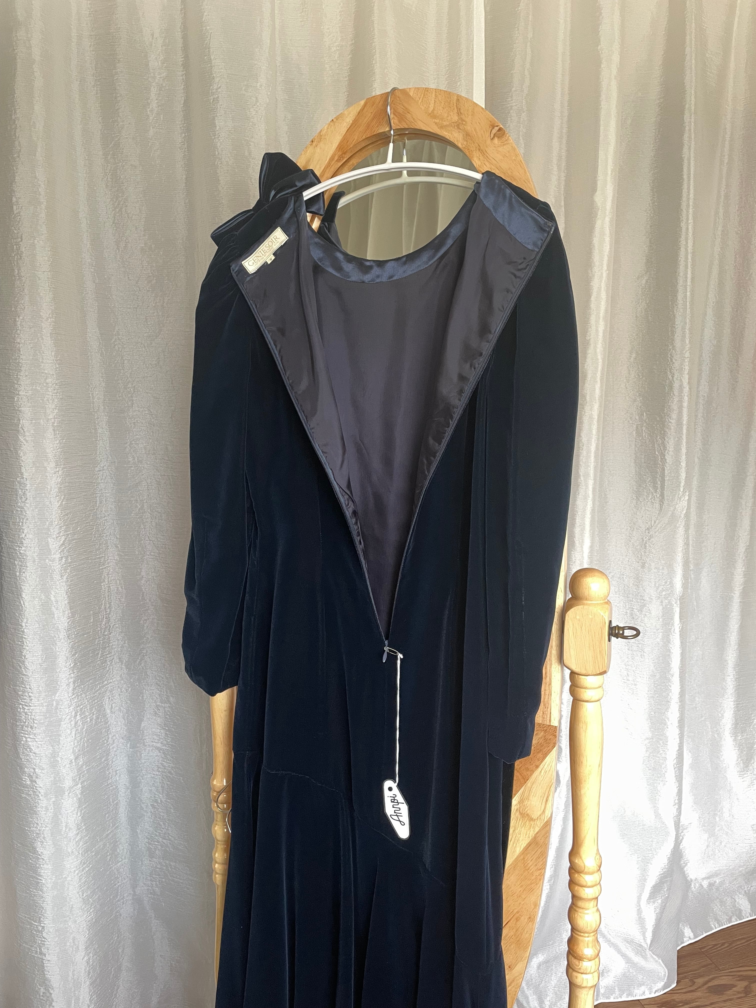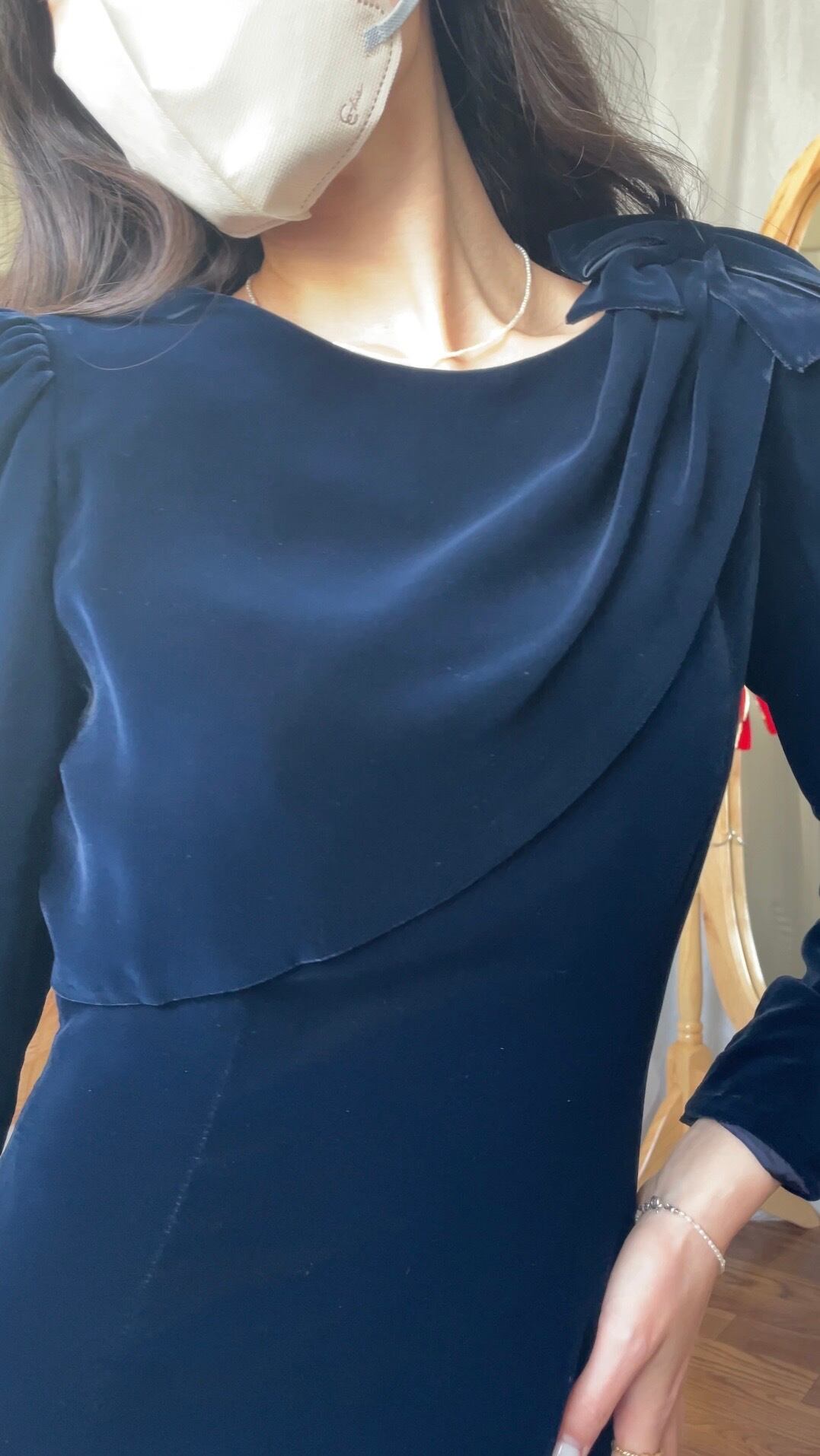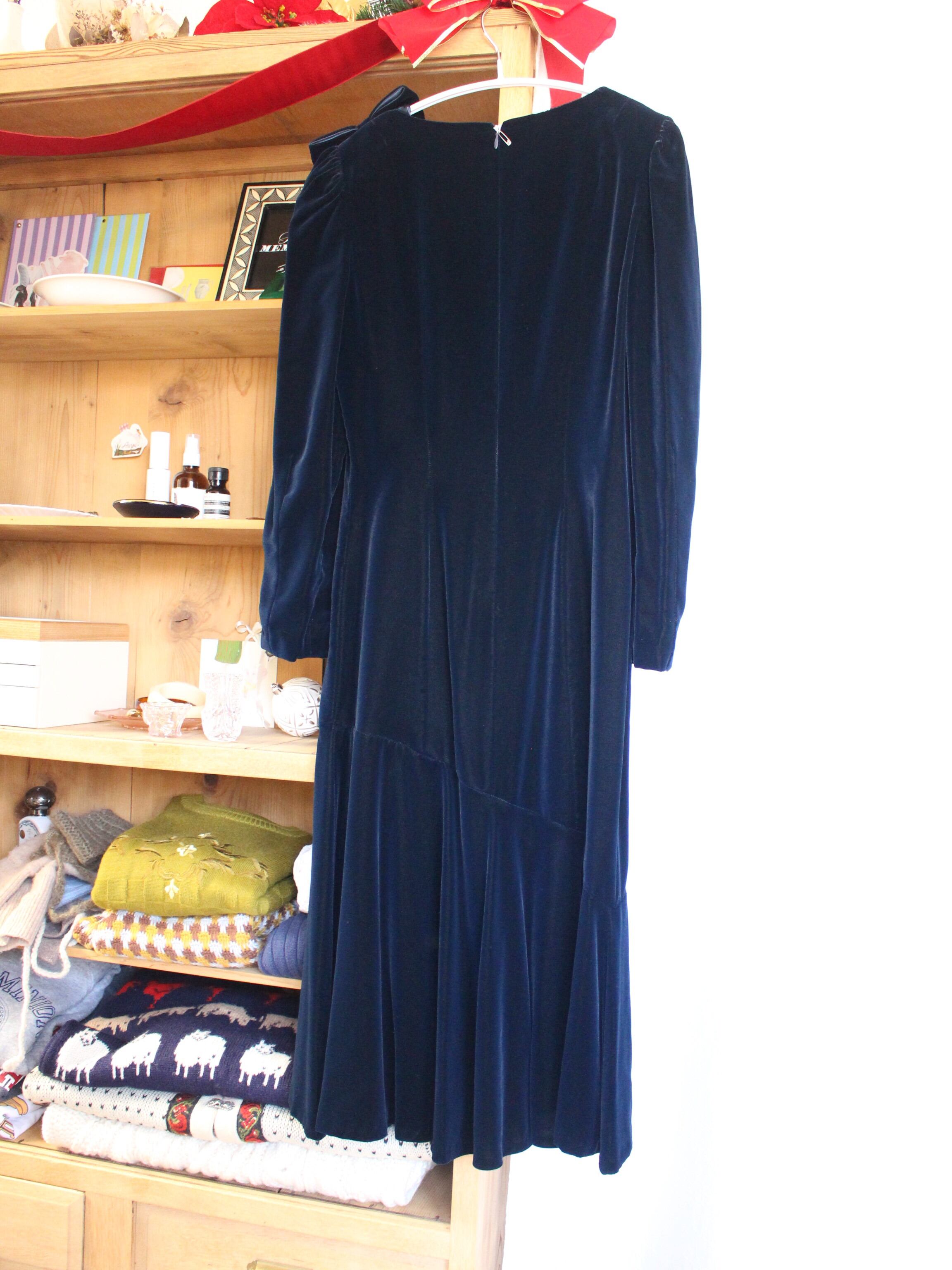 ベロアドレス リボン付 ブルー