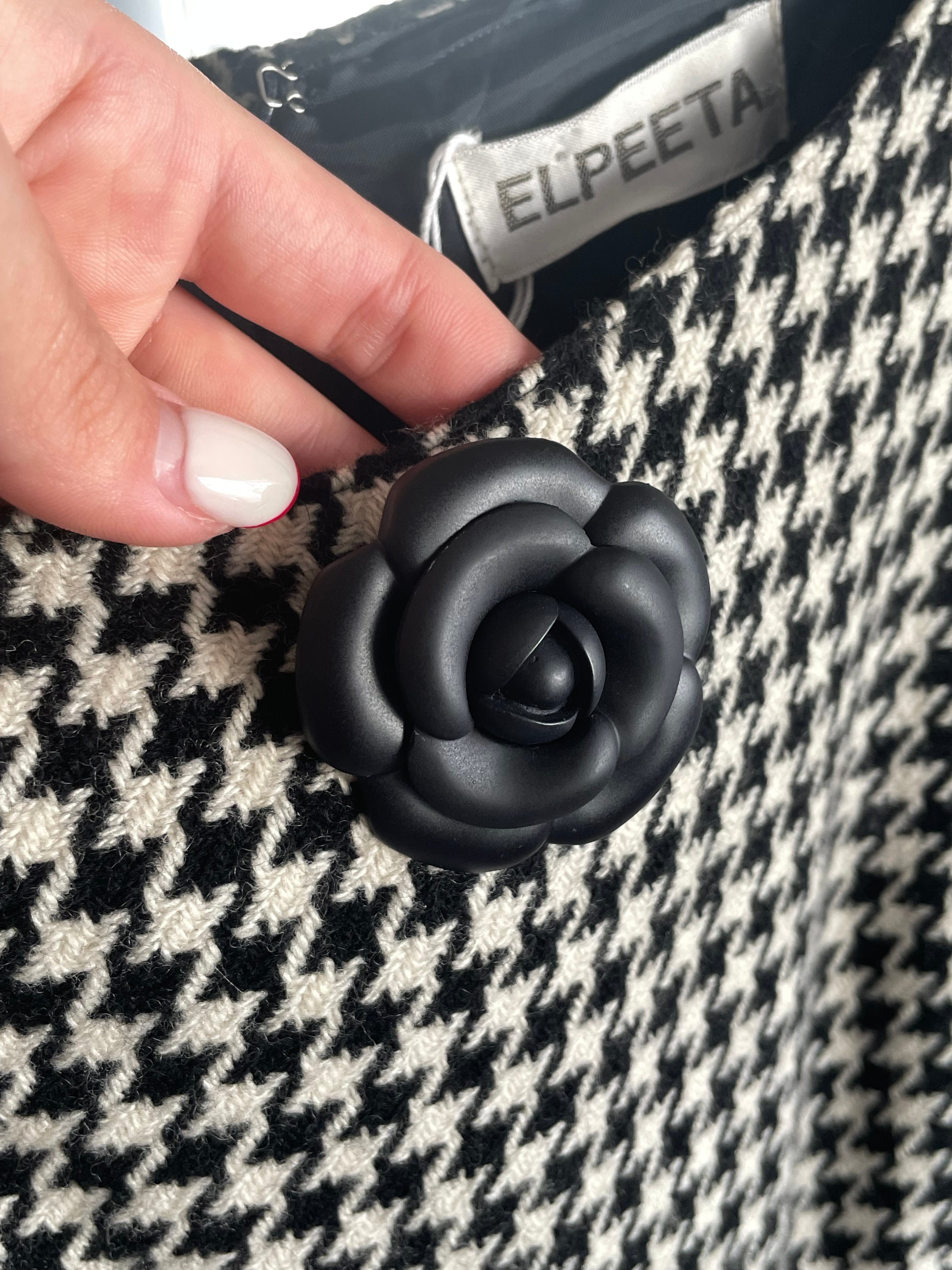 胸元のバラのブローチは取り外しが可能で、別のアイテム(バックなど)にもつけてお使いいただけます。