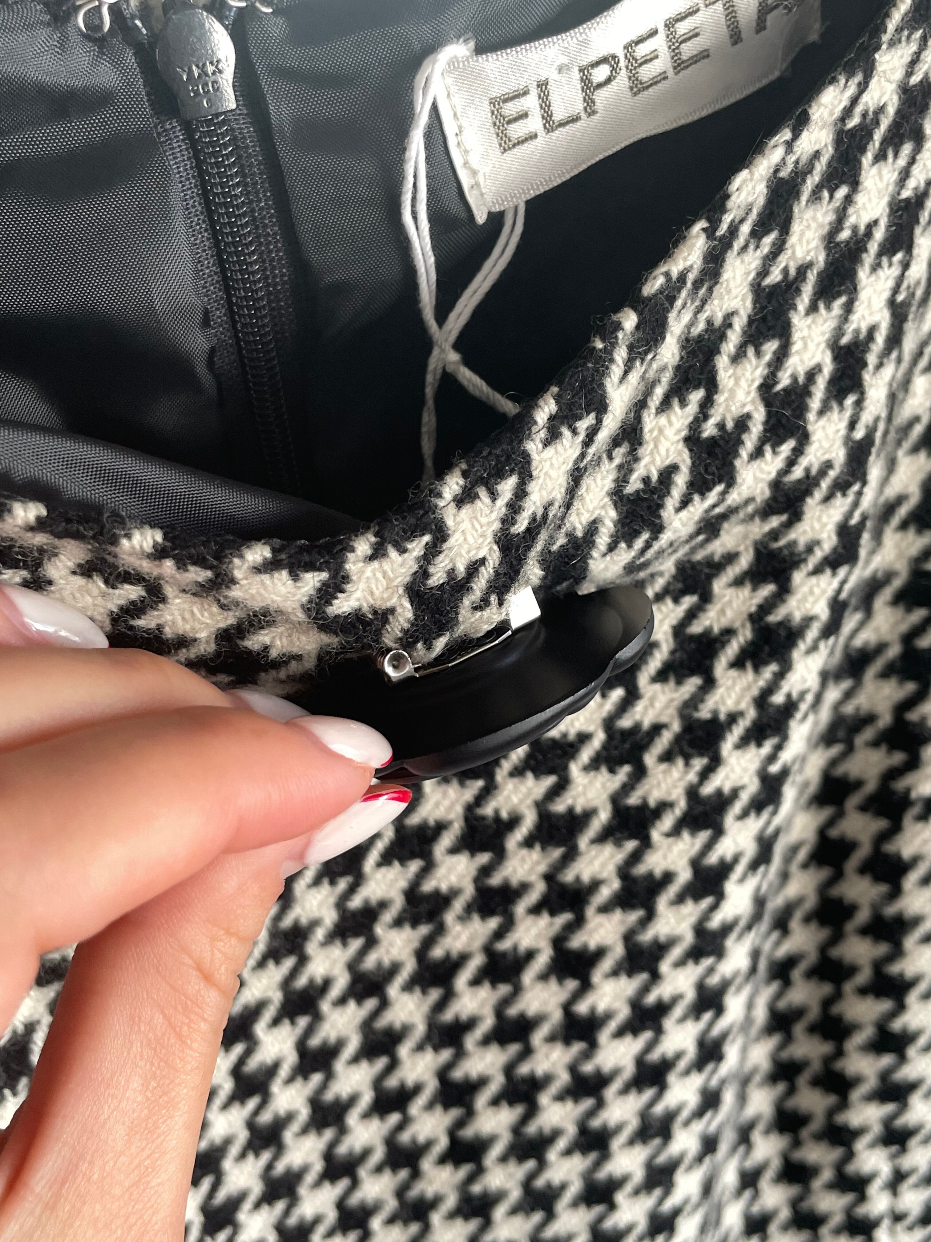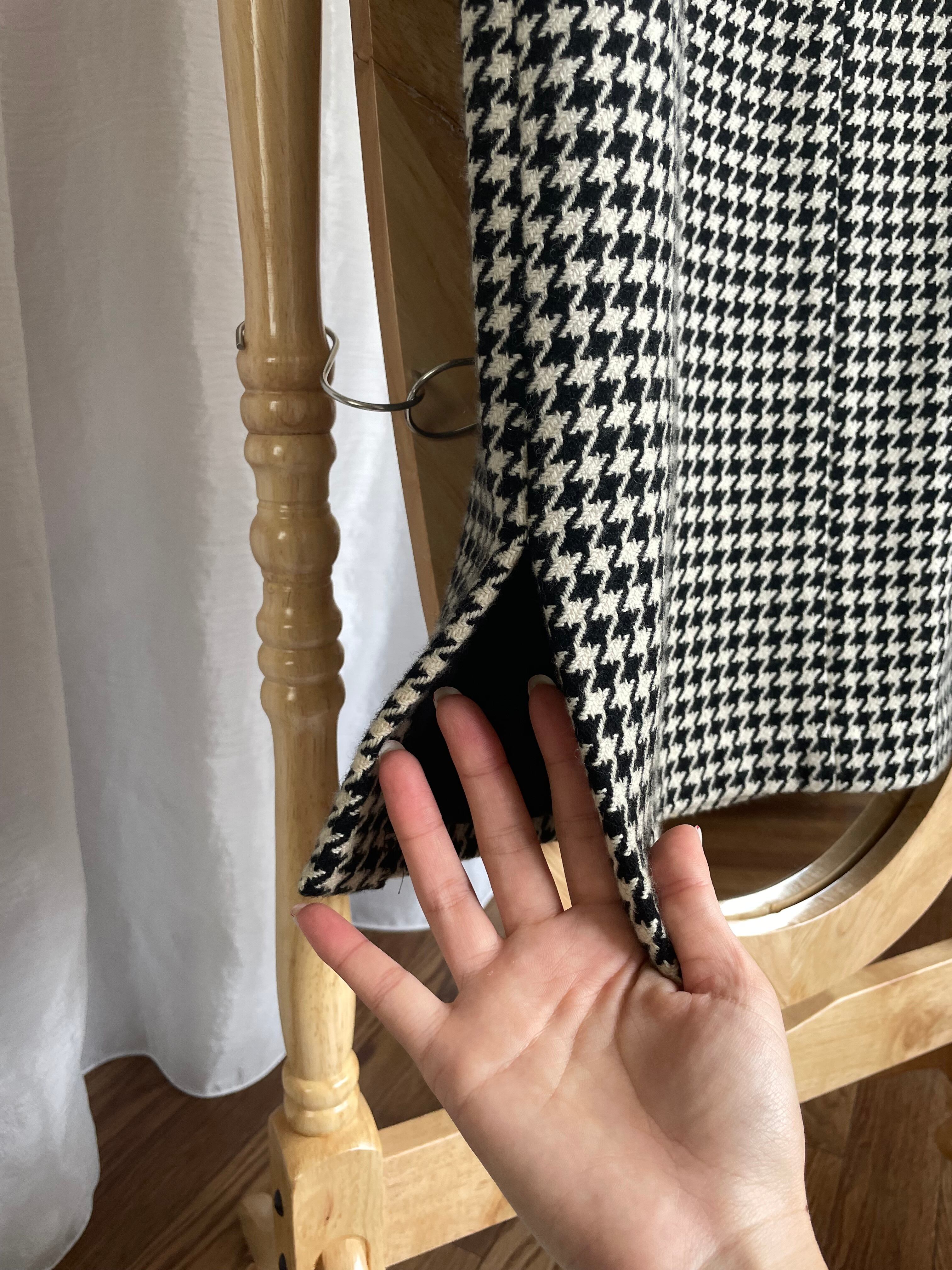 左手の裾には14センチの短めのスリットが入っていて足さばきも良く、毛90%の暖かい生地となっています。