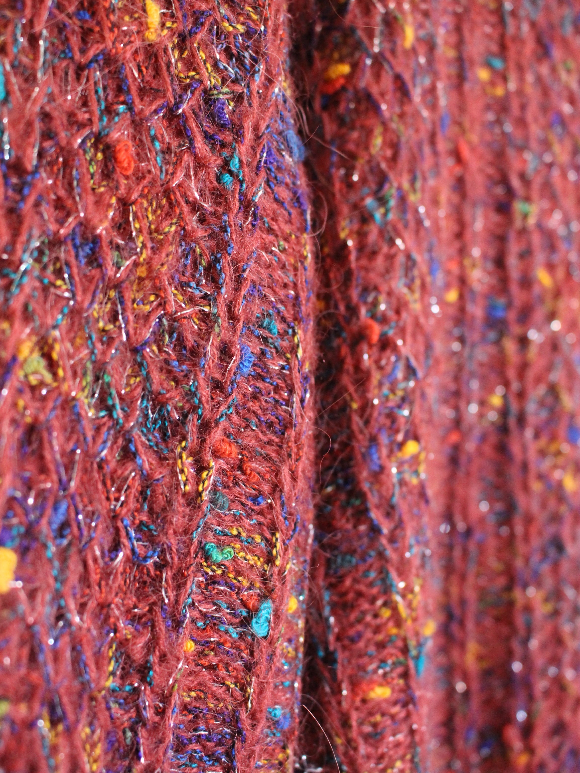 カラフルな糸の中にはシルバーのラメ糸も入っており、控えめなきらめきが上品です。