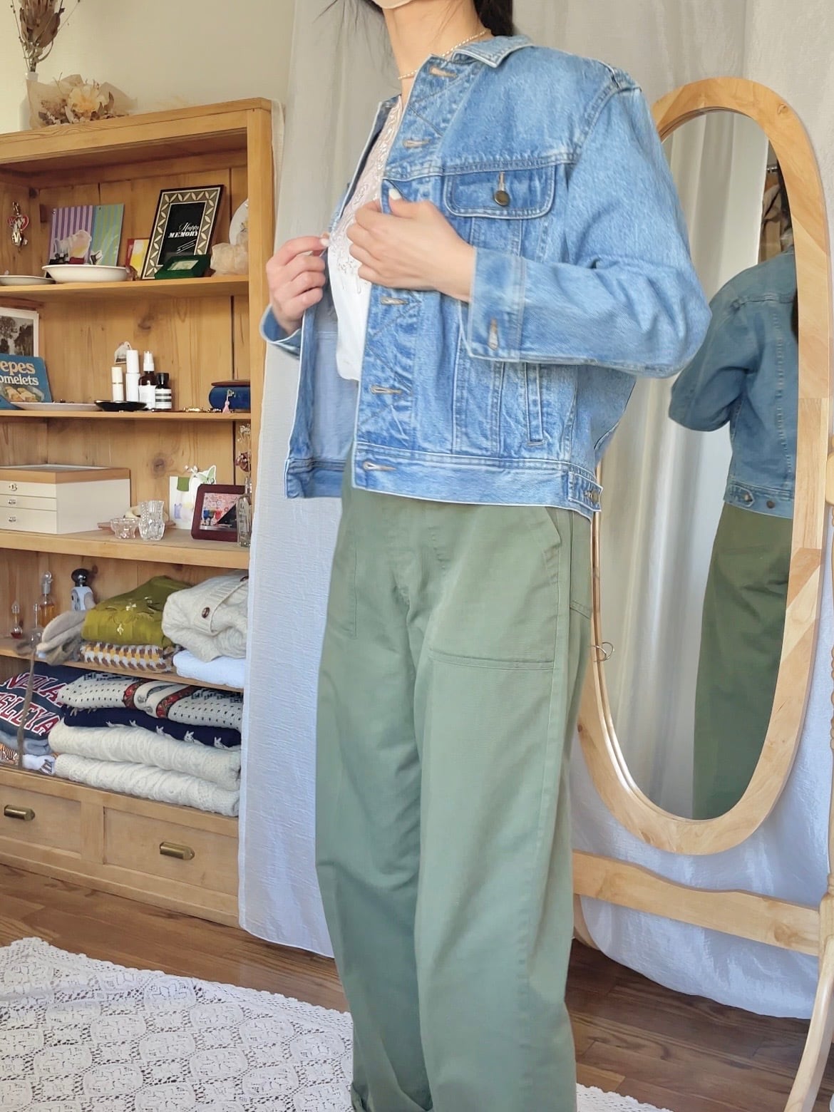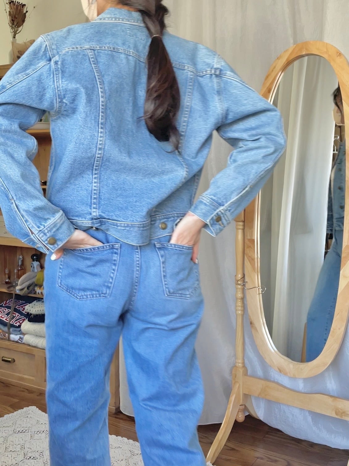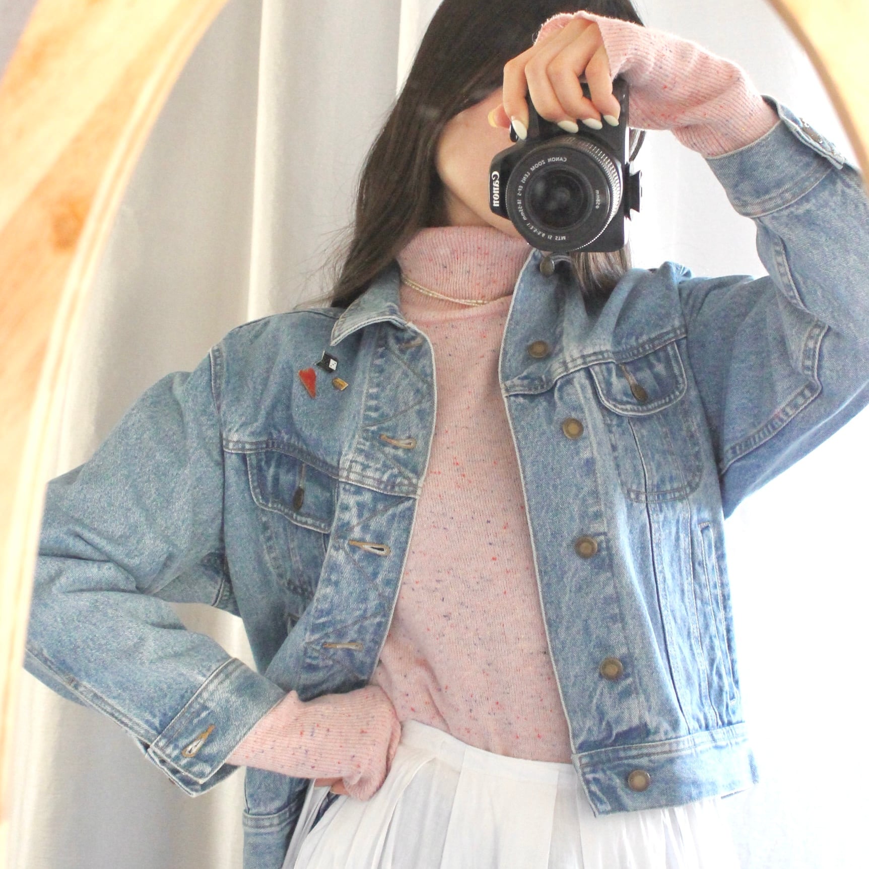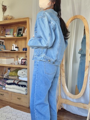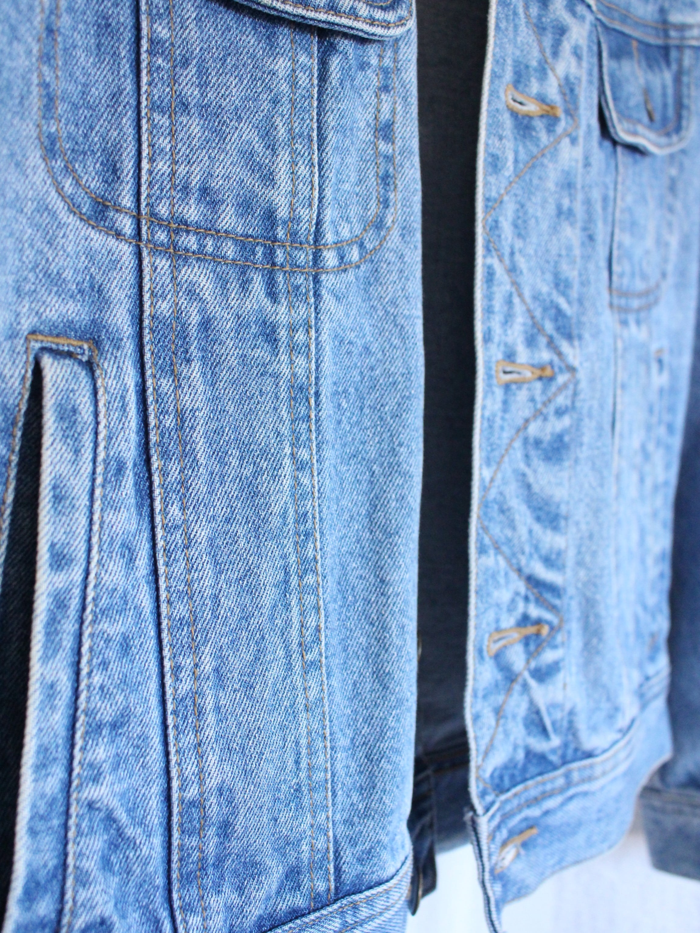 肩幅身幅はしっかりとあり、着丈が短いコンパクトサイズのデニムジャケット。
