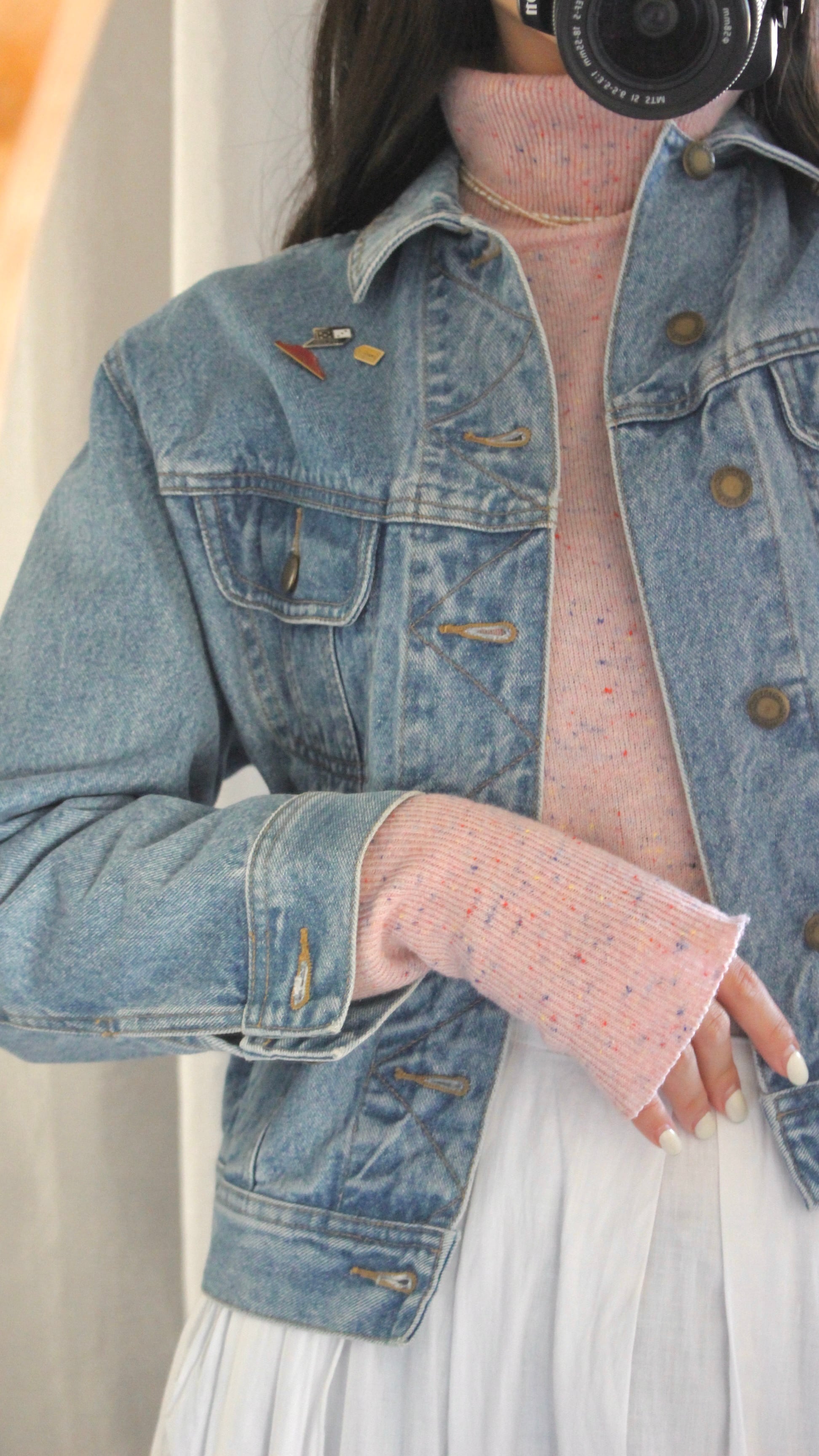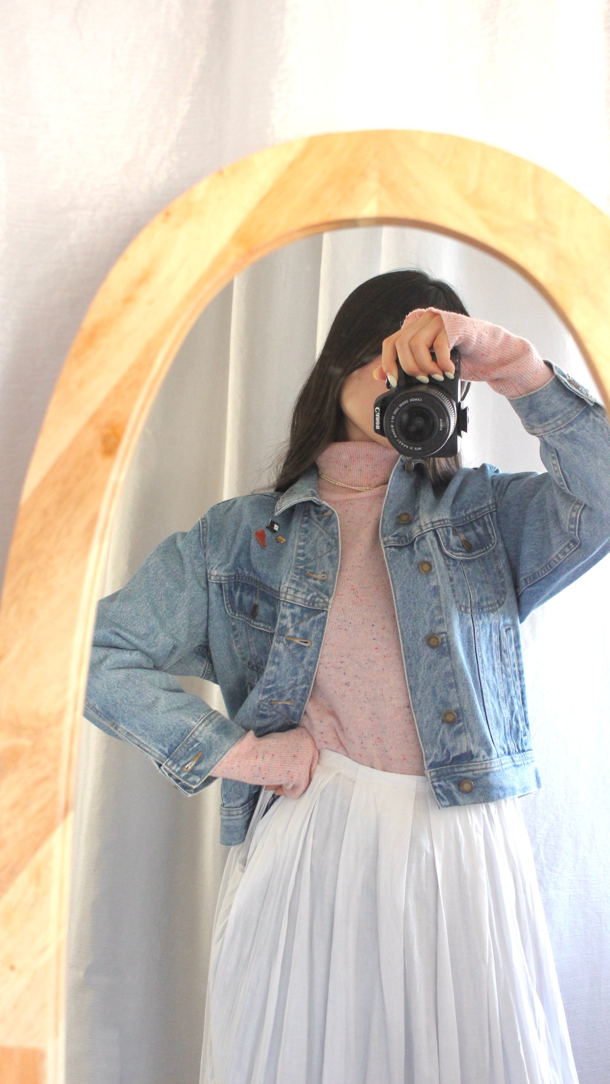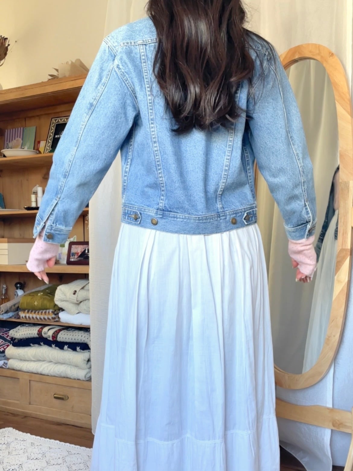 肩幅身幅はしっかりとあり、着丈が短いコンパクトサイズのデニムジャケット。