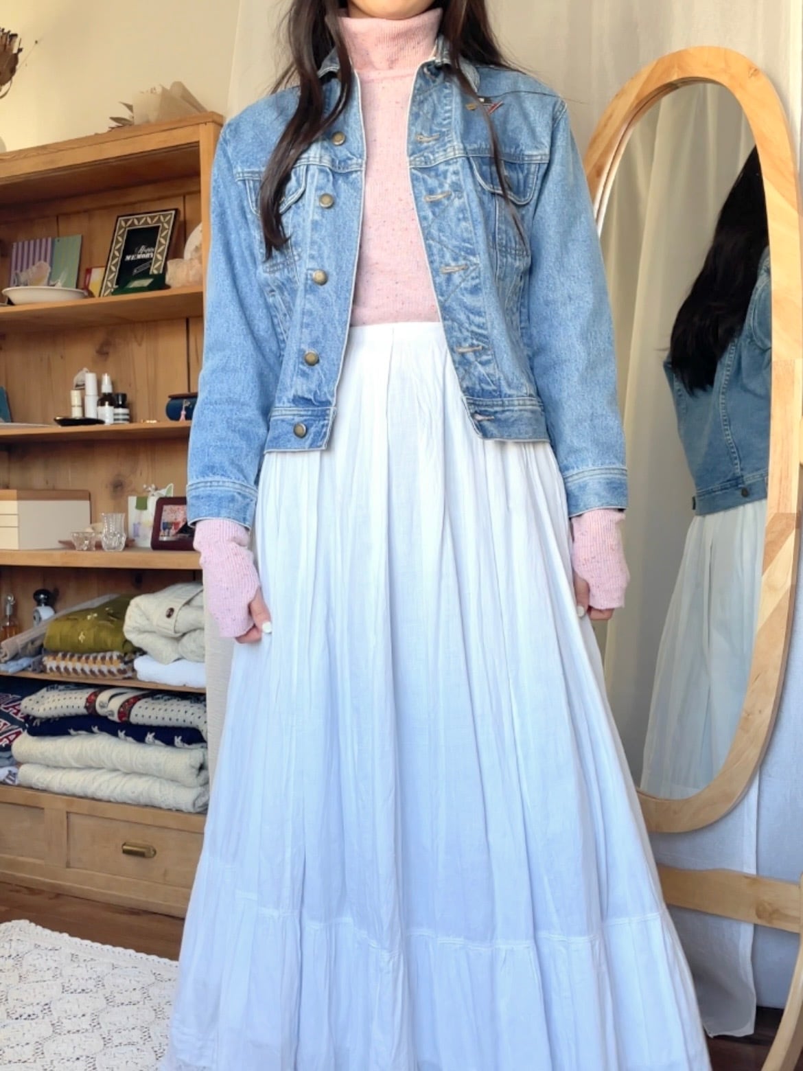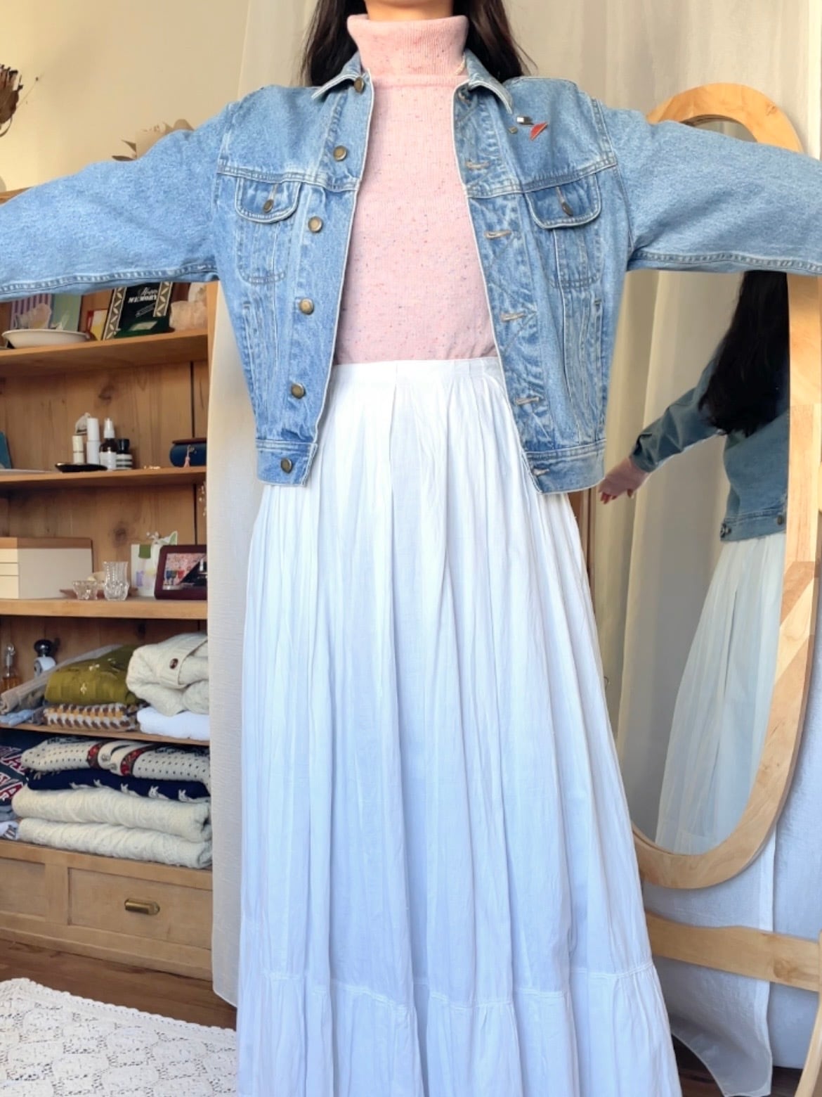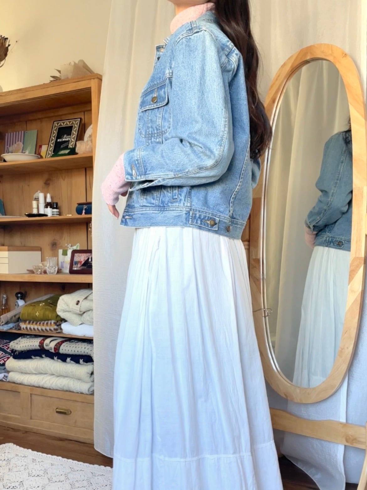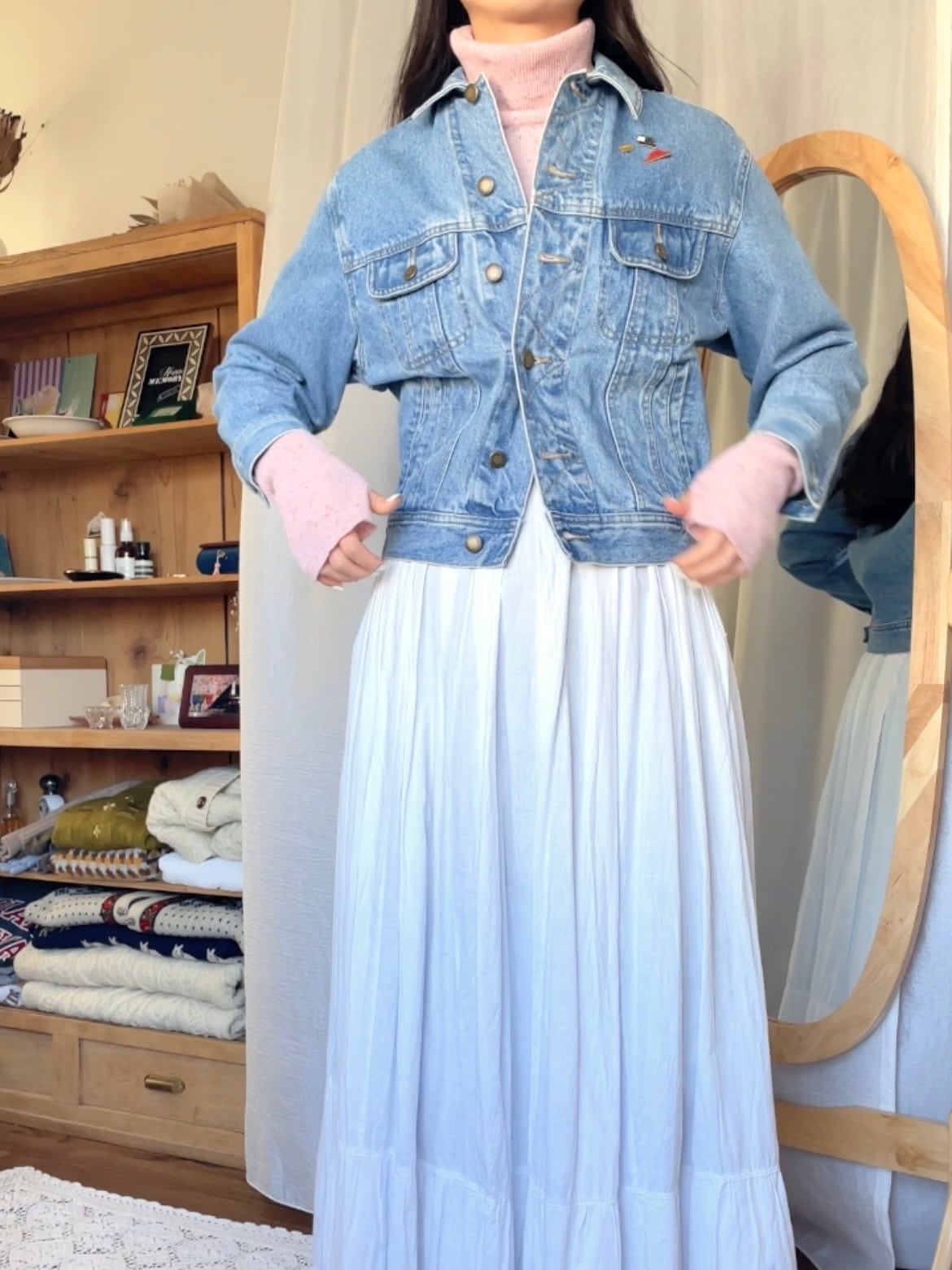 肩幅身幅はしっかりとあり、着丈が短いコンパクトサイズのデニムジャケット。