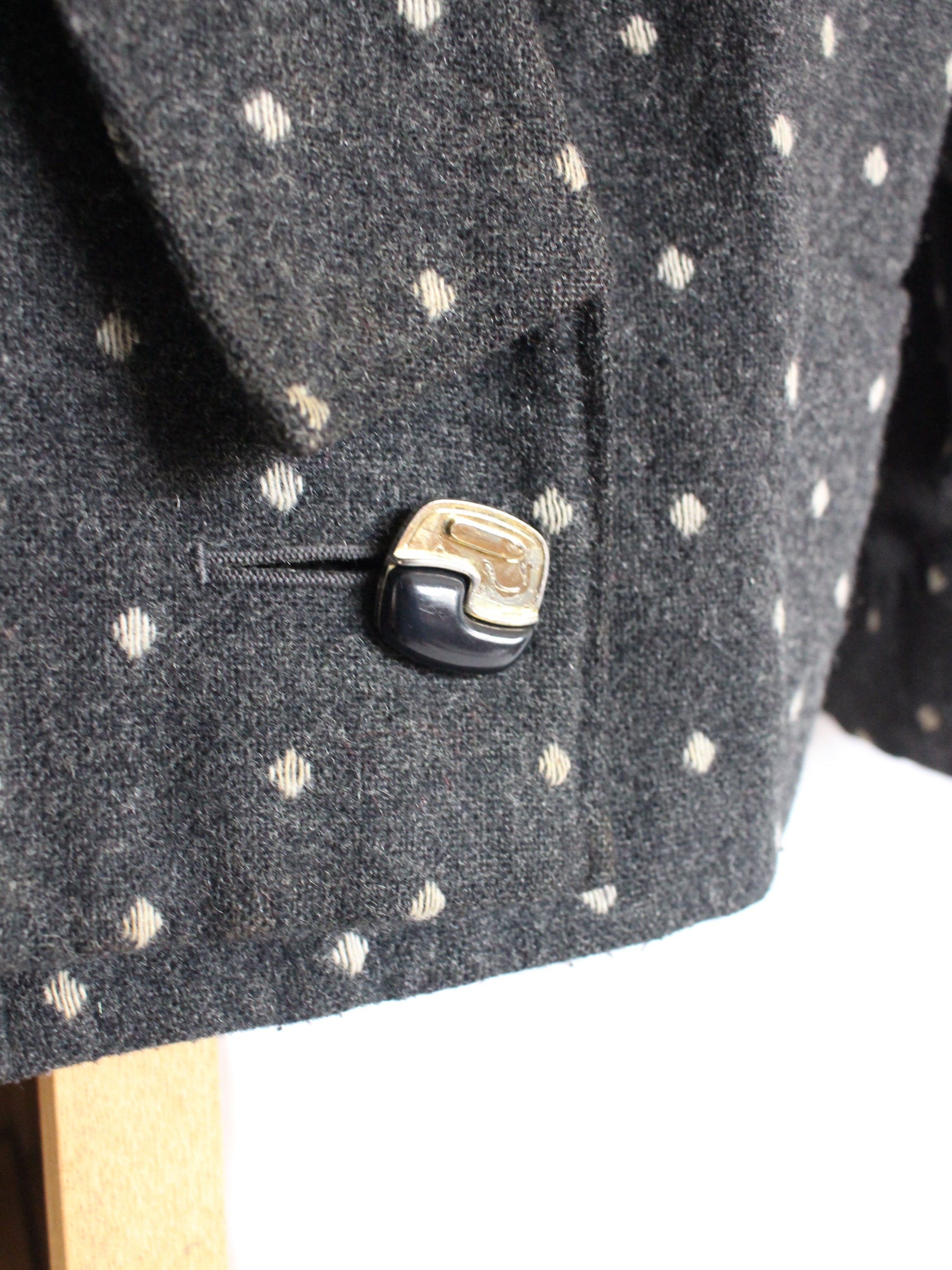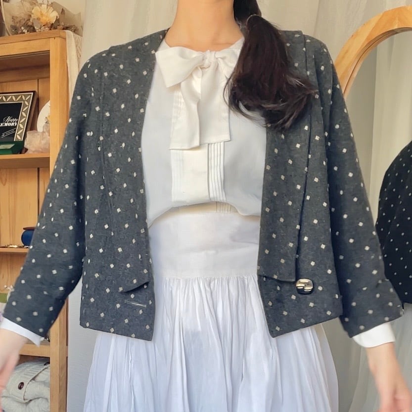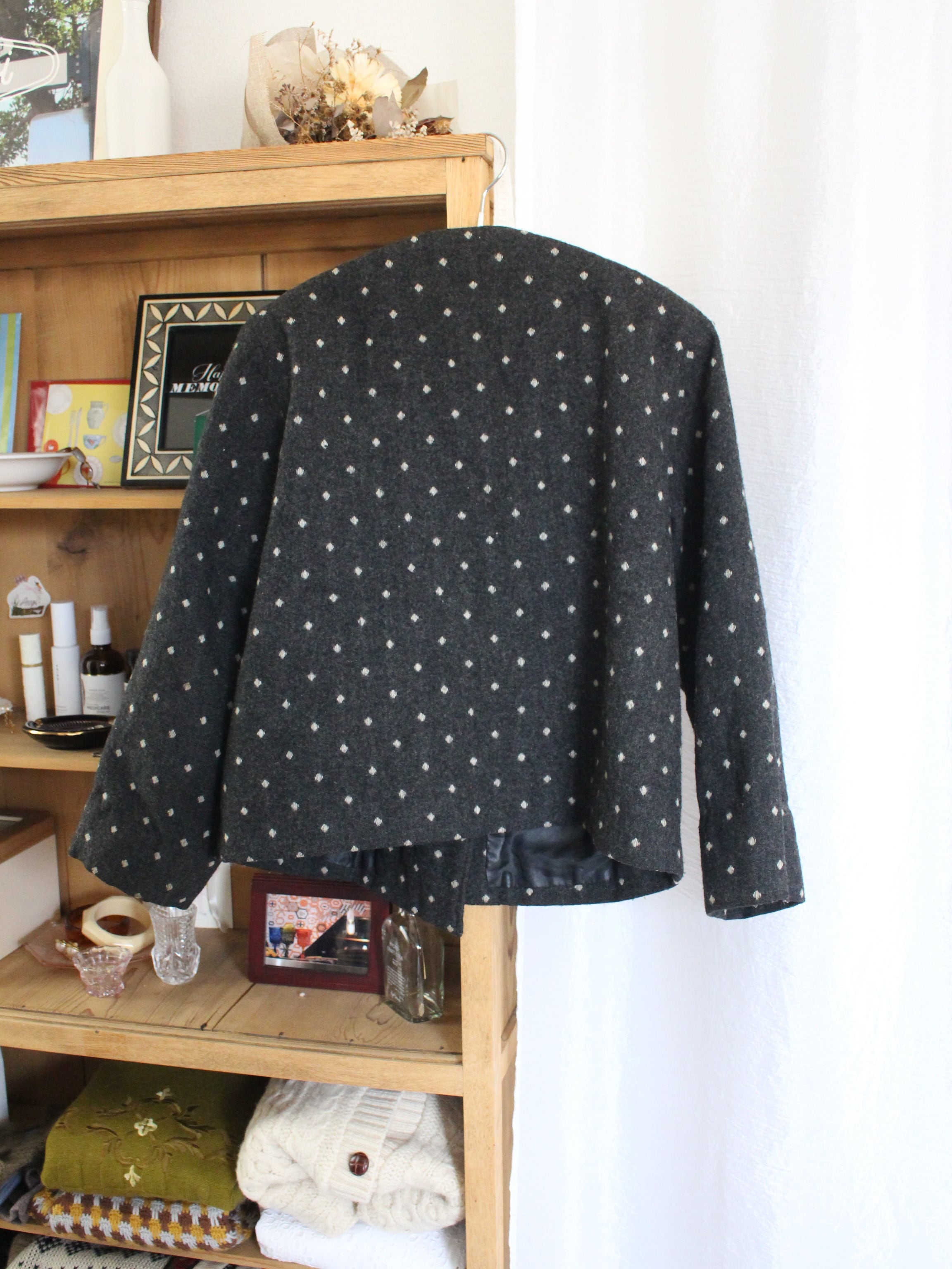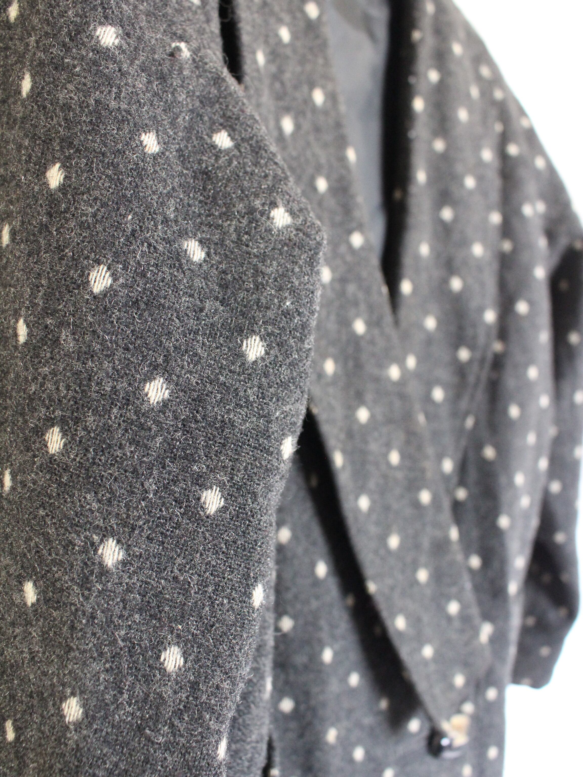 柄のジャケットと言うと派手で合わせる服を選びそうなイメージですが、細かいドット柄で主張が激しくなく柄物やロゴトレーナーなどにも馴染む1点。