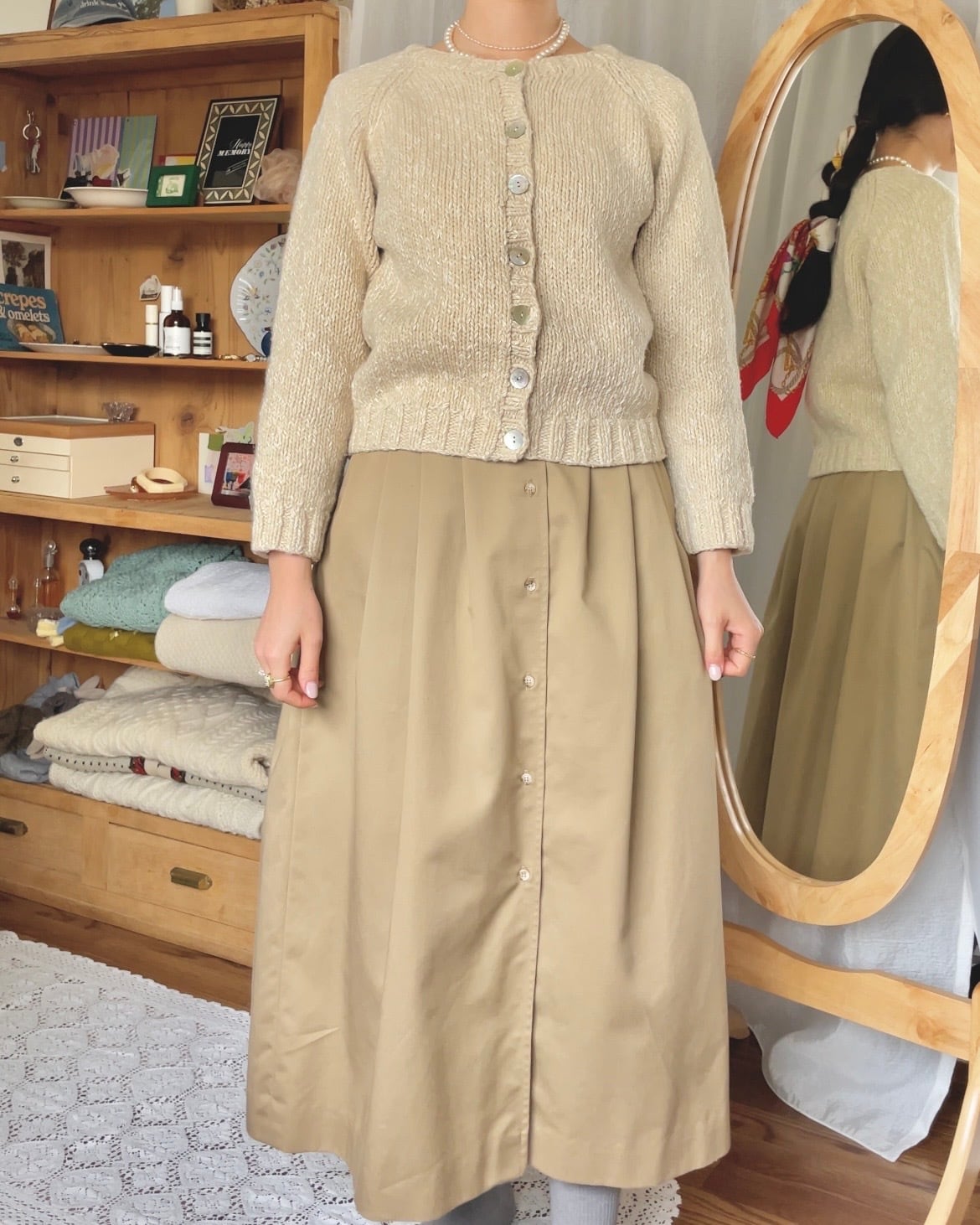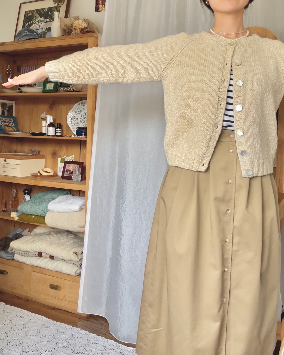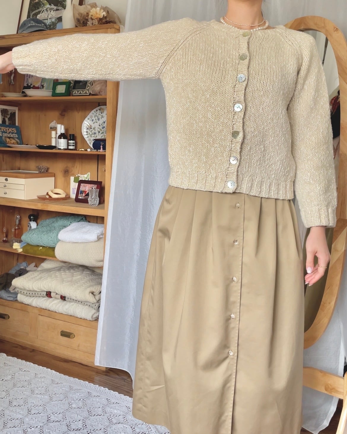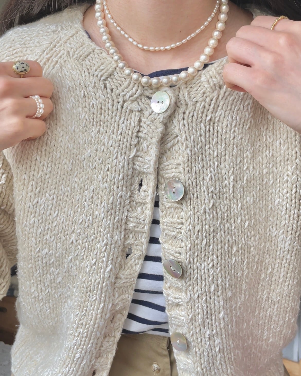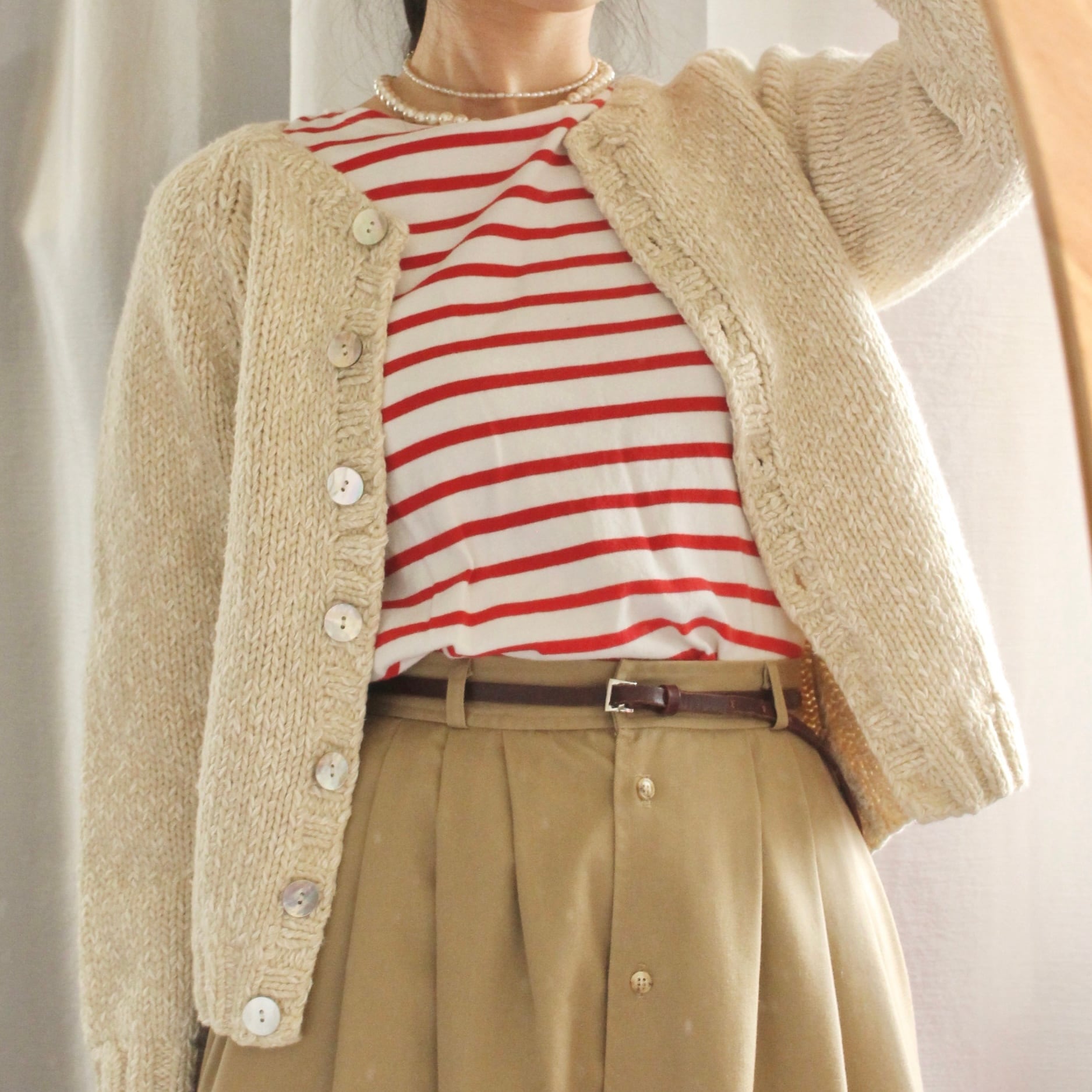 シェルボタンニットカーディガン ホワイト