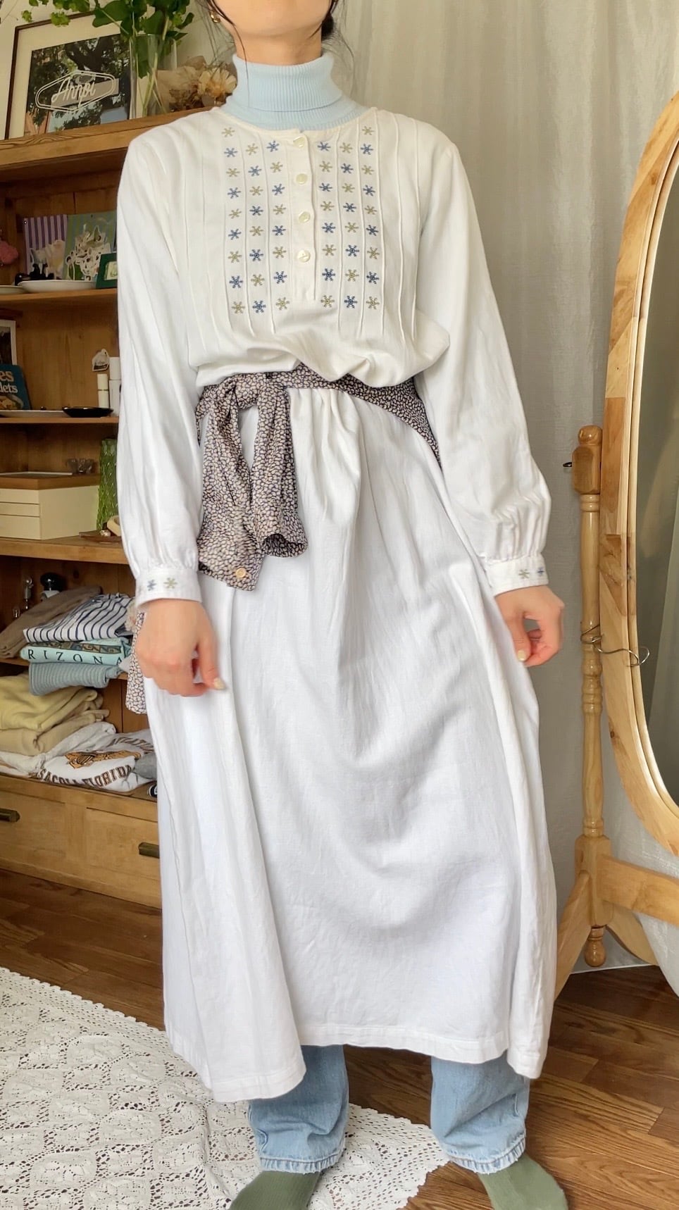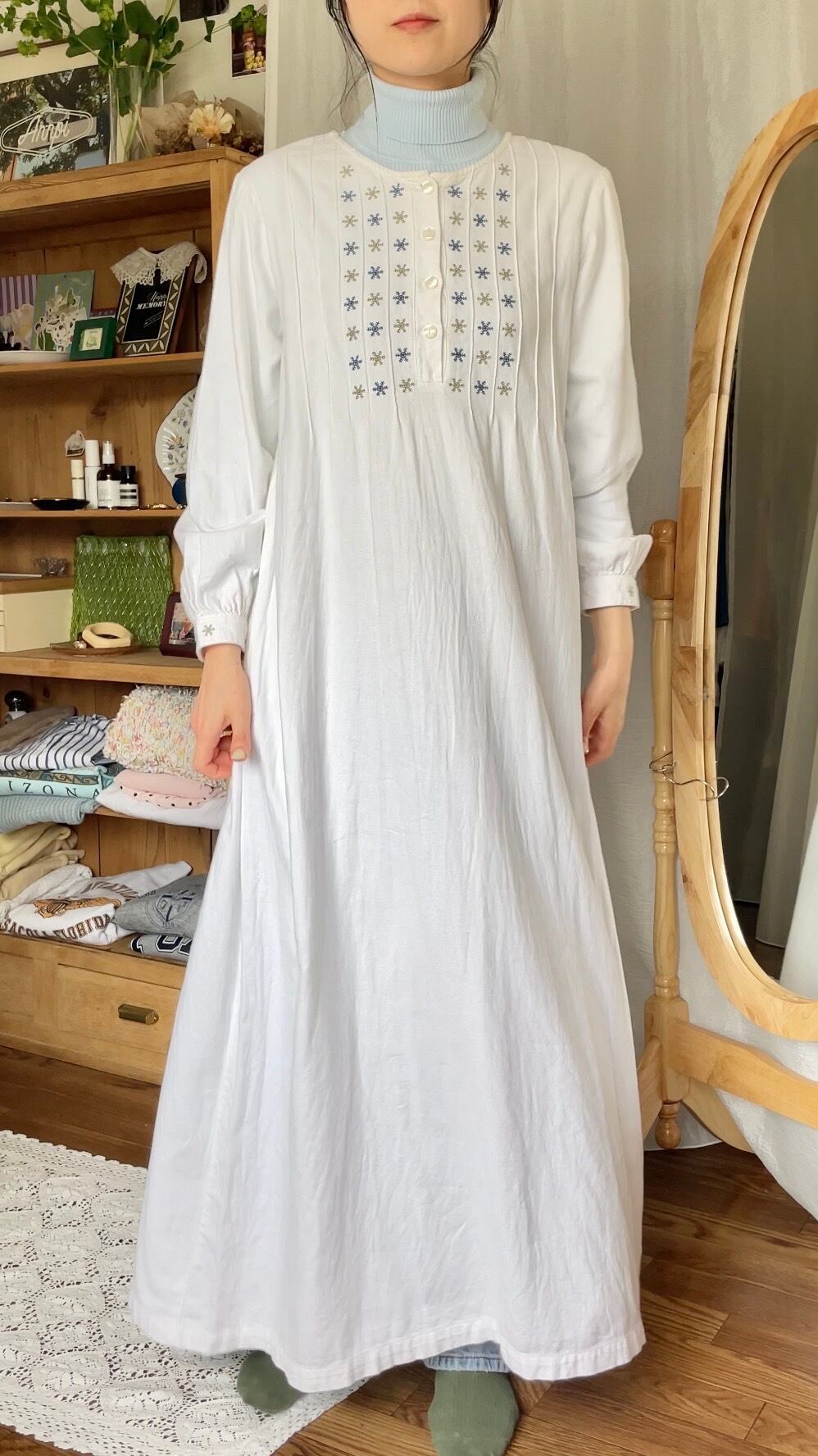 L.L.Bean 刺繍ワンピース ホワイト
