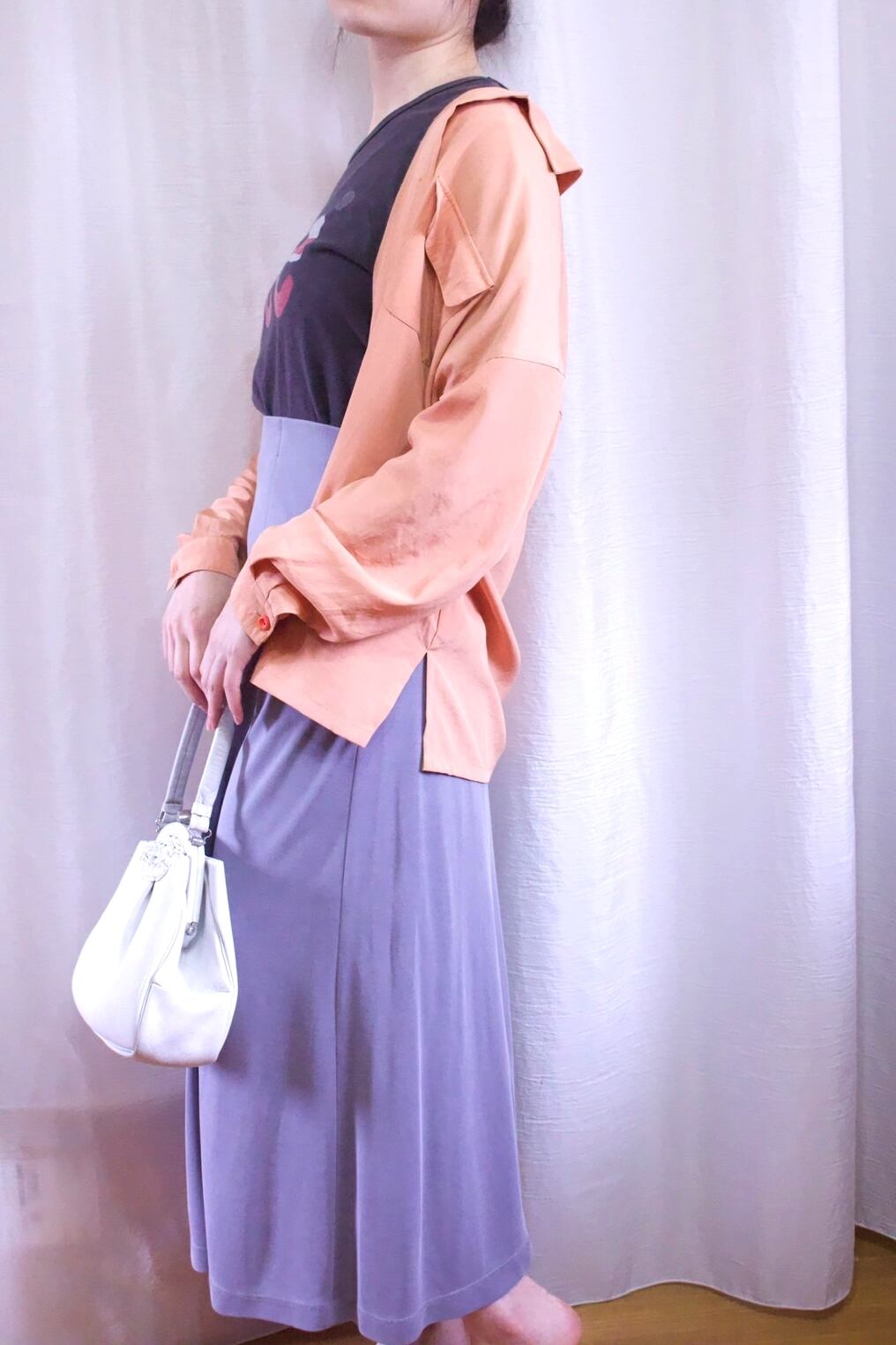 裾はストレートライン、両サイドにはスリットがあるのでボトムスにインするときに扱いやすいと思います。