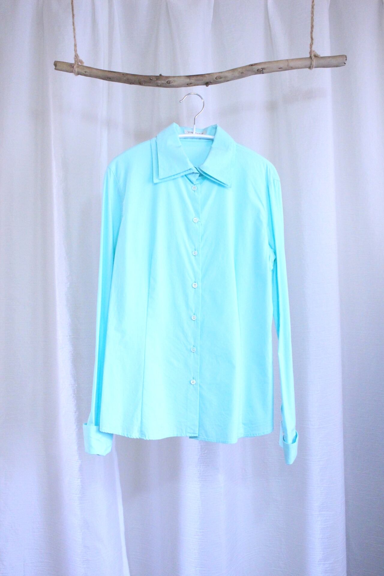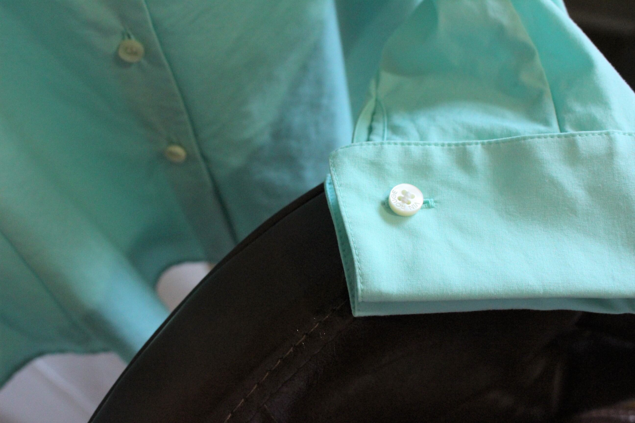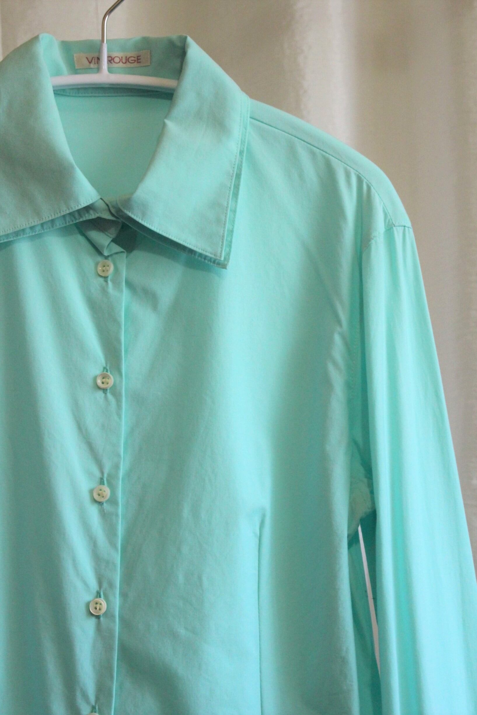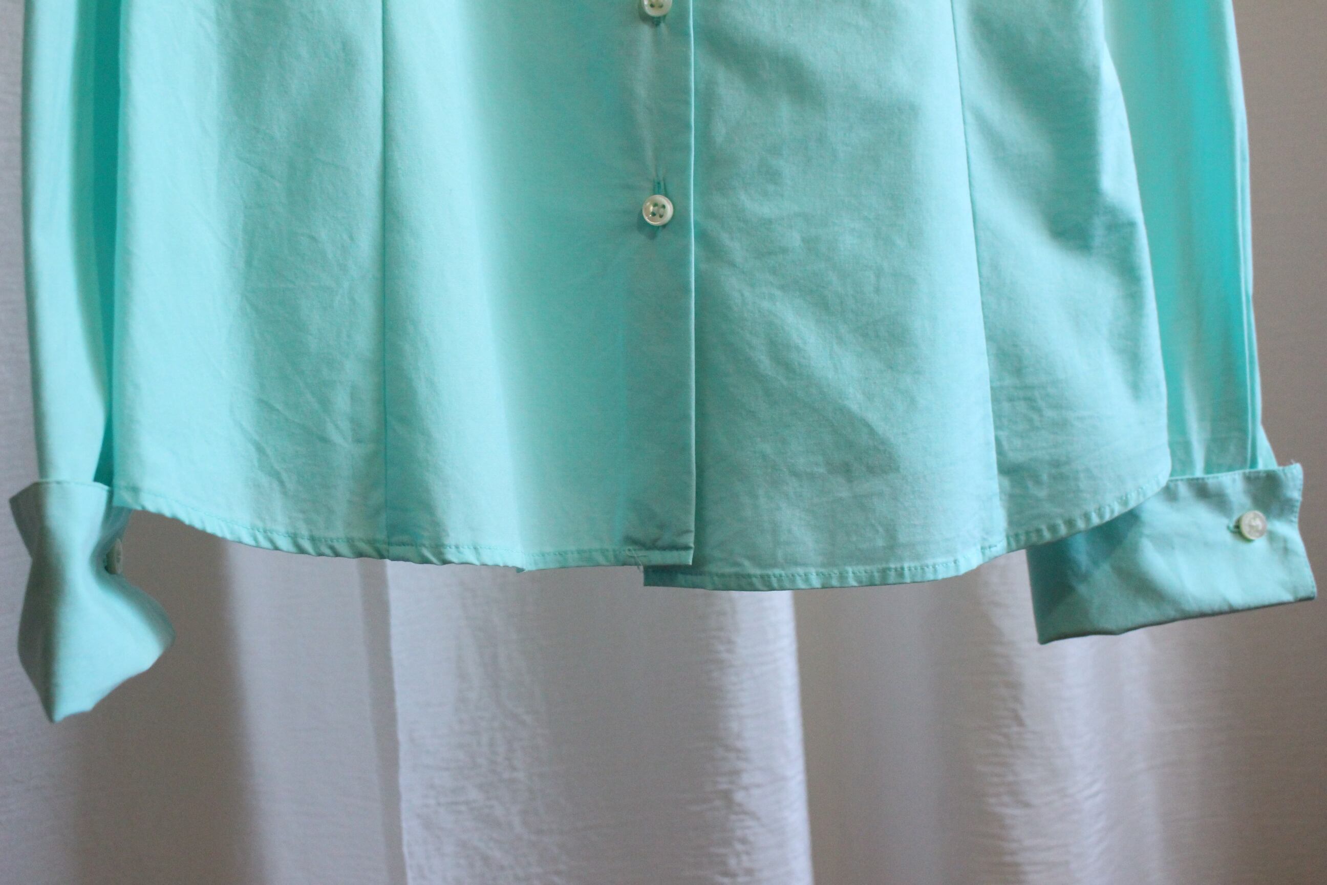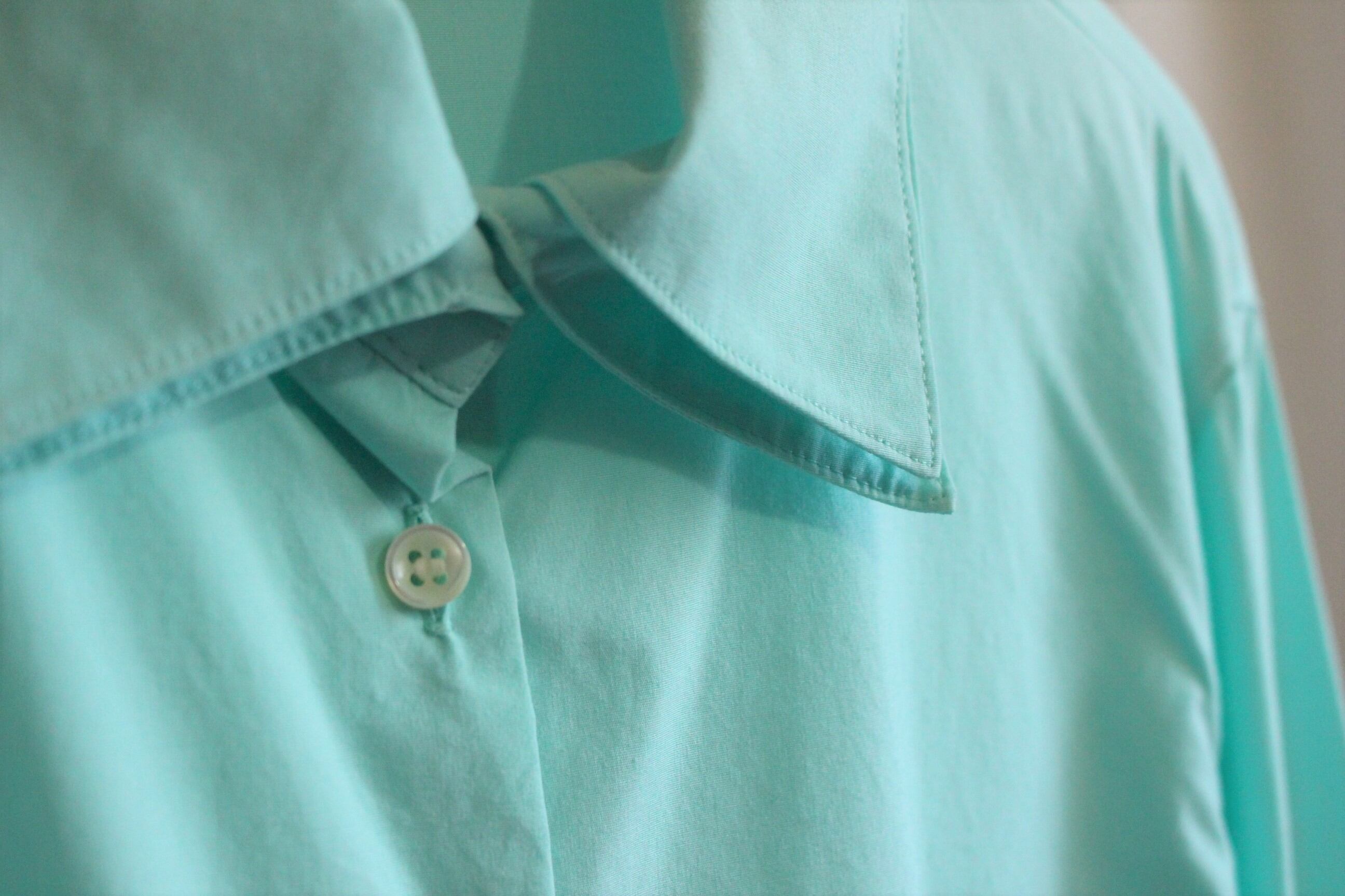 重なるダブルカラーがポイント。袖には紐式のカフリンクス付き。