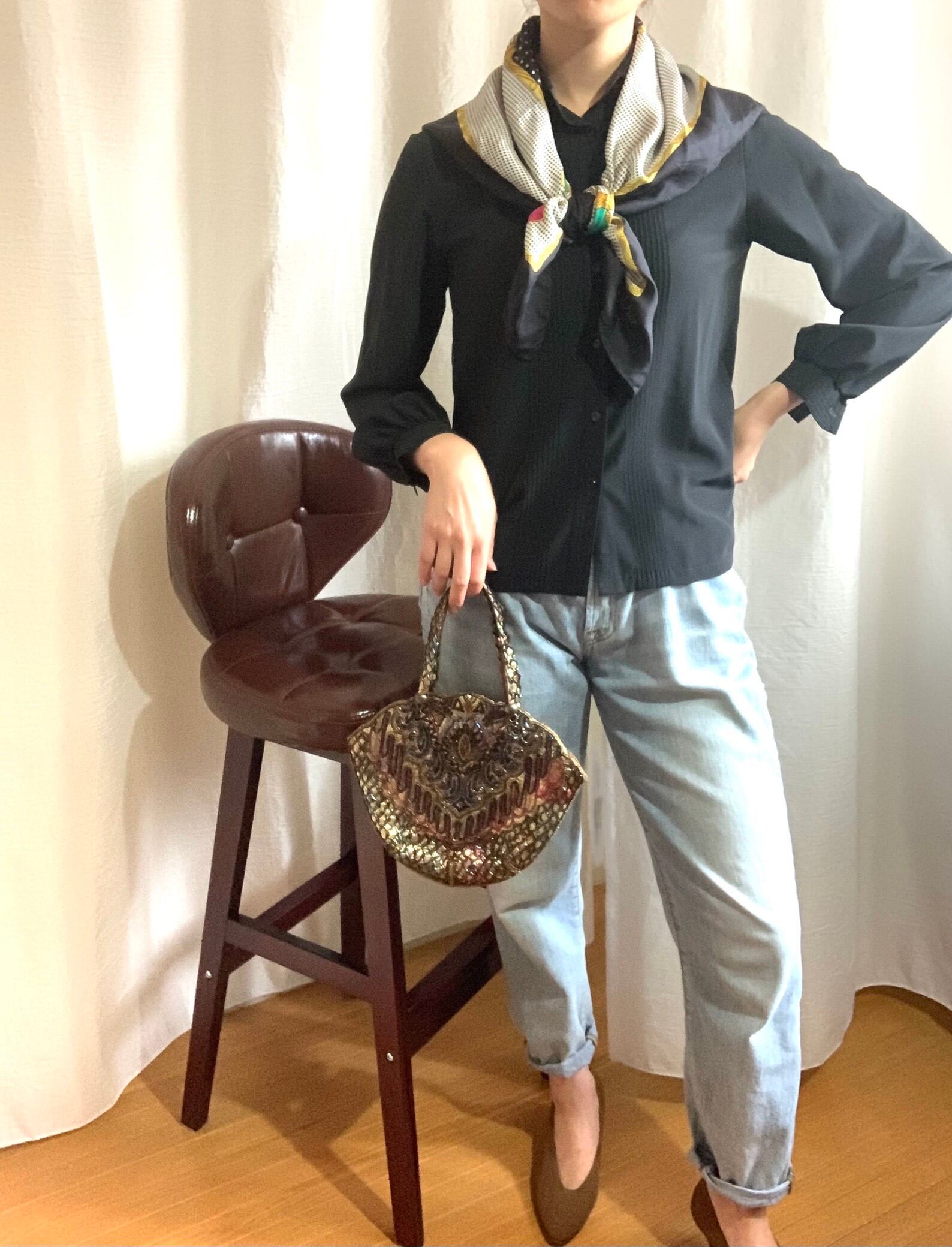 様々なコーディネートで活躍するブラックのシンプルなシャツ。
