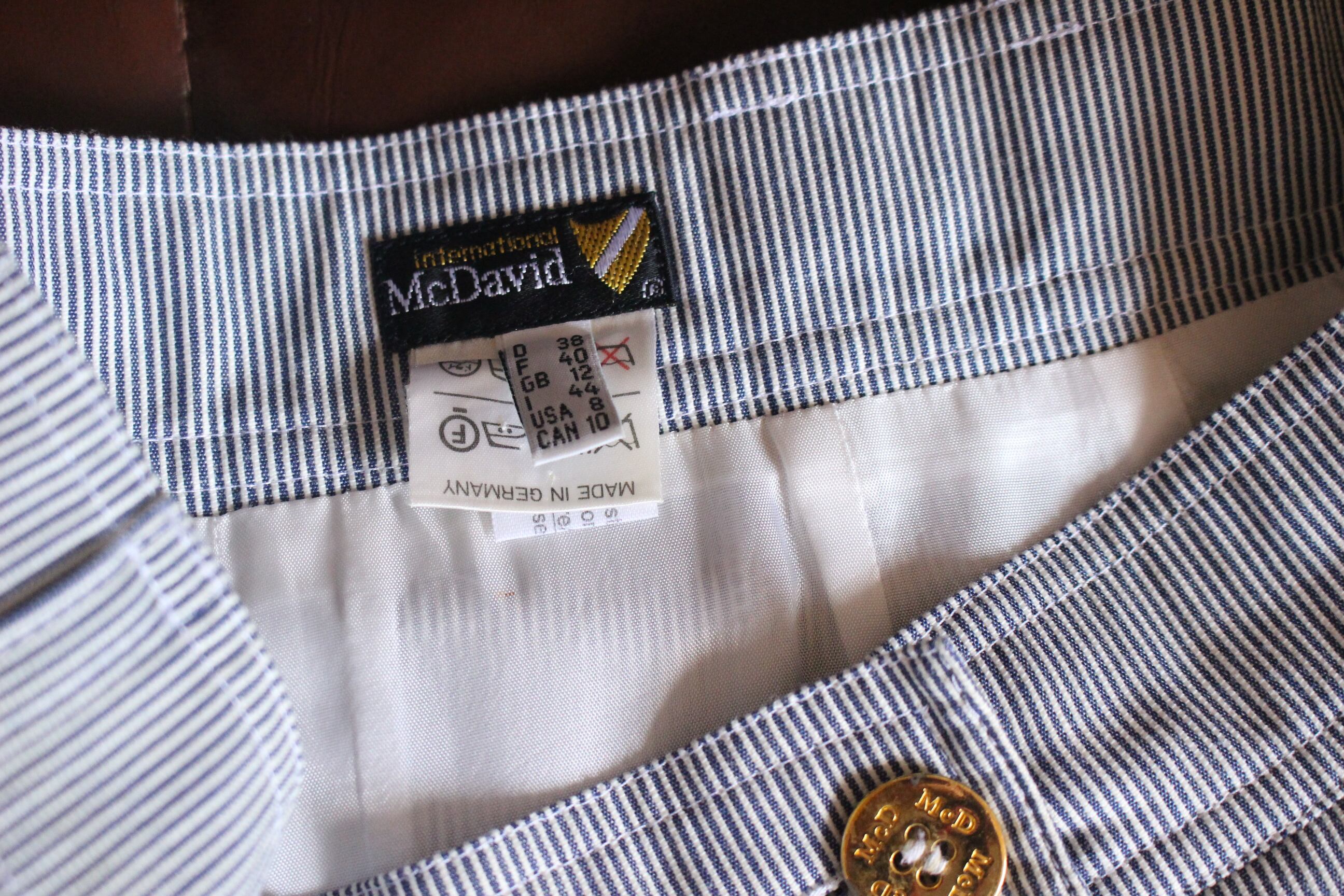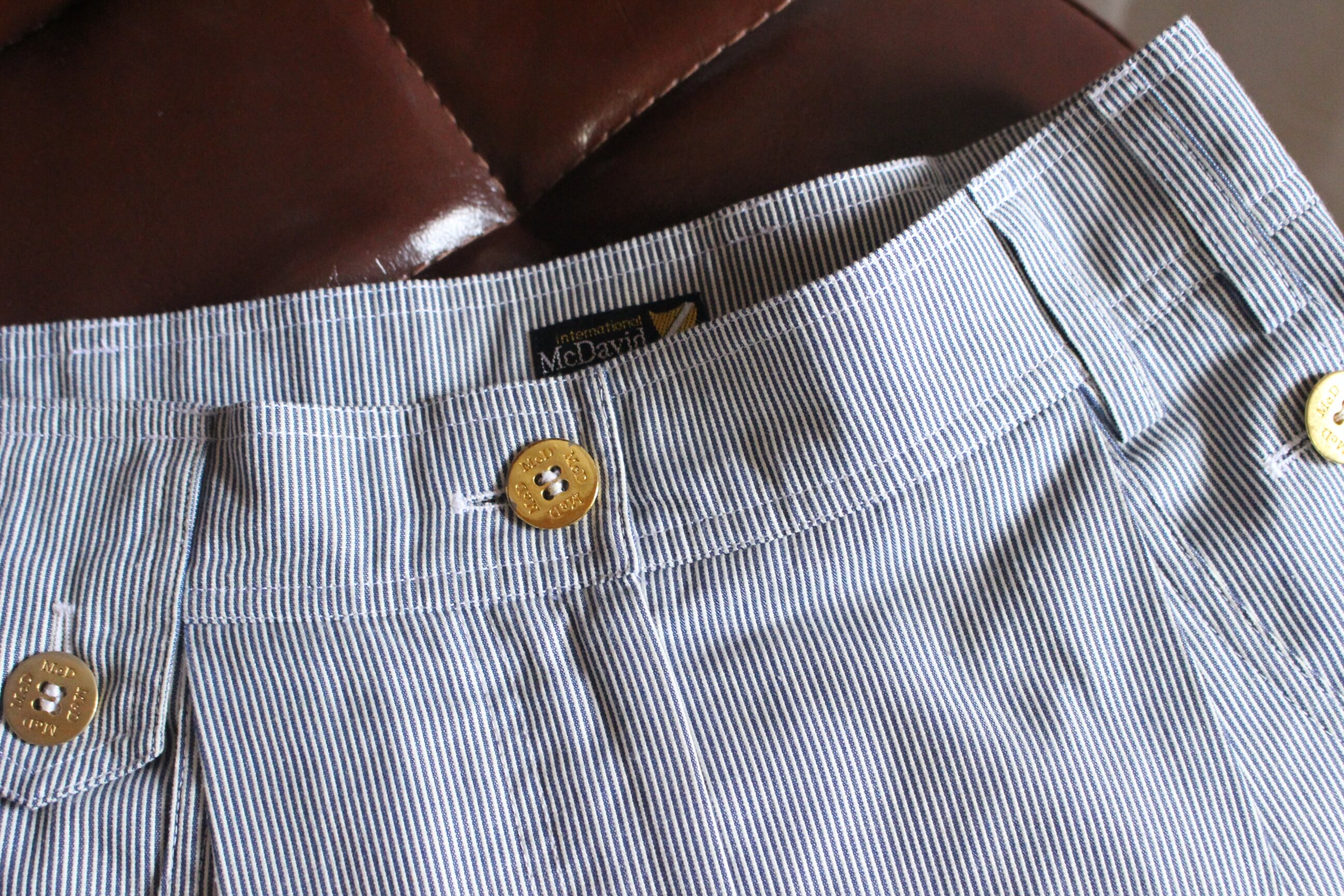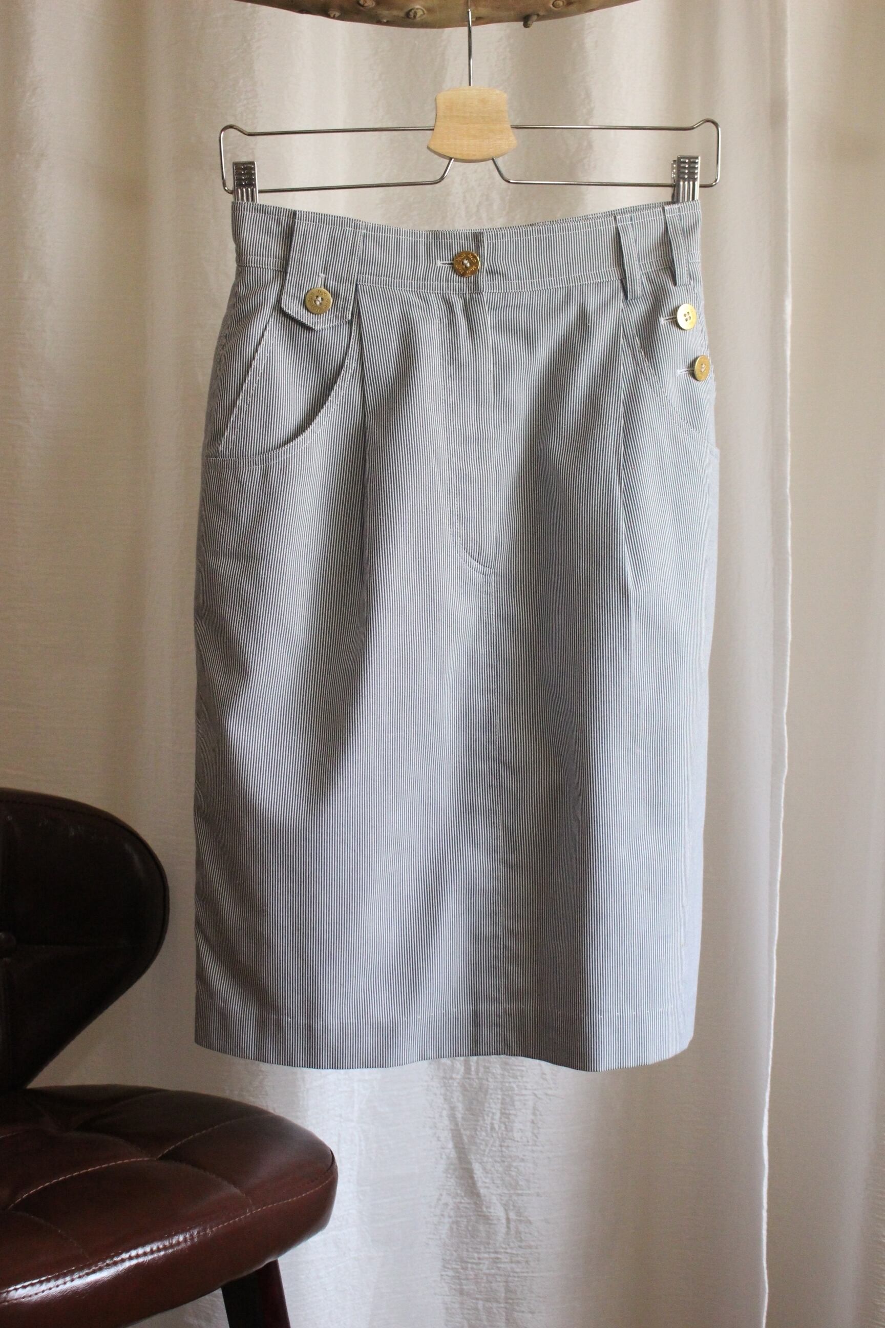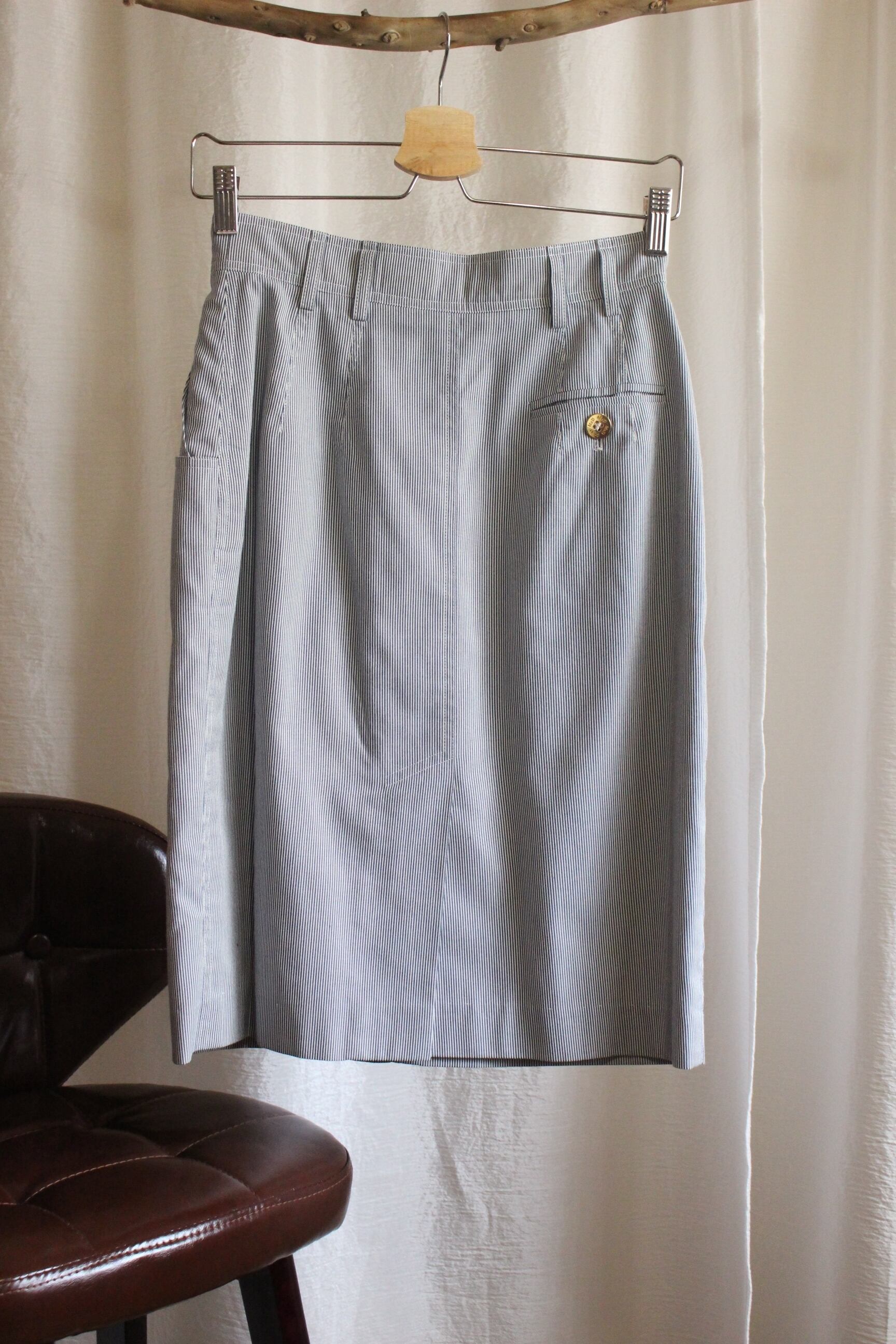 ストライプにゴールドのボタンがクラシカルなスカート。
