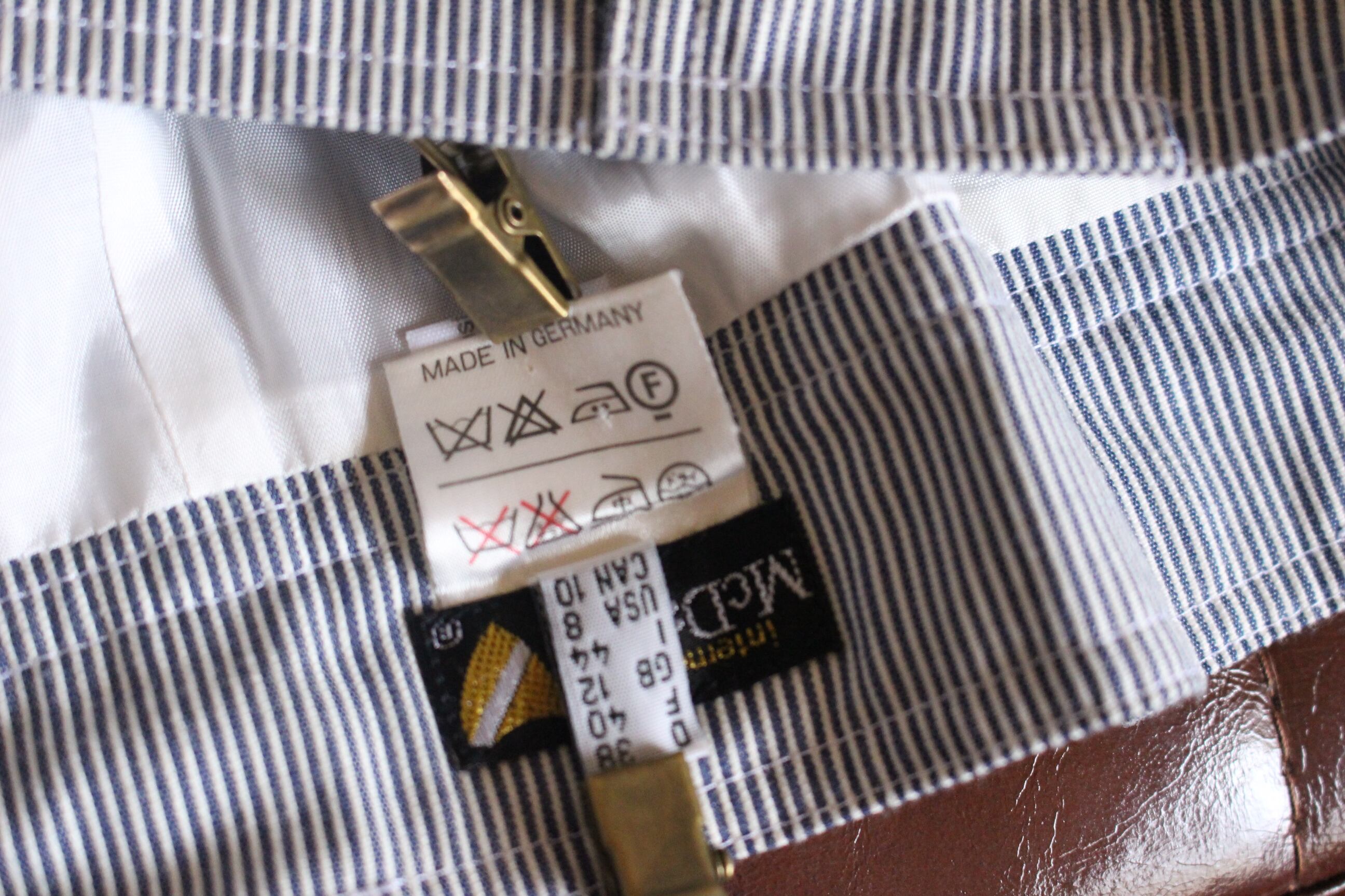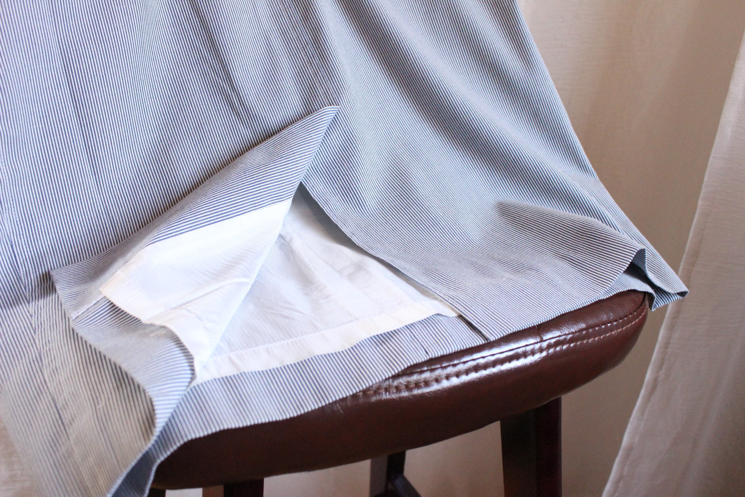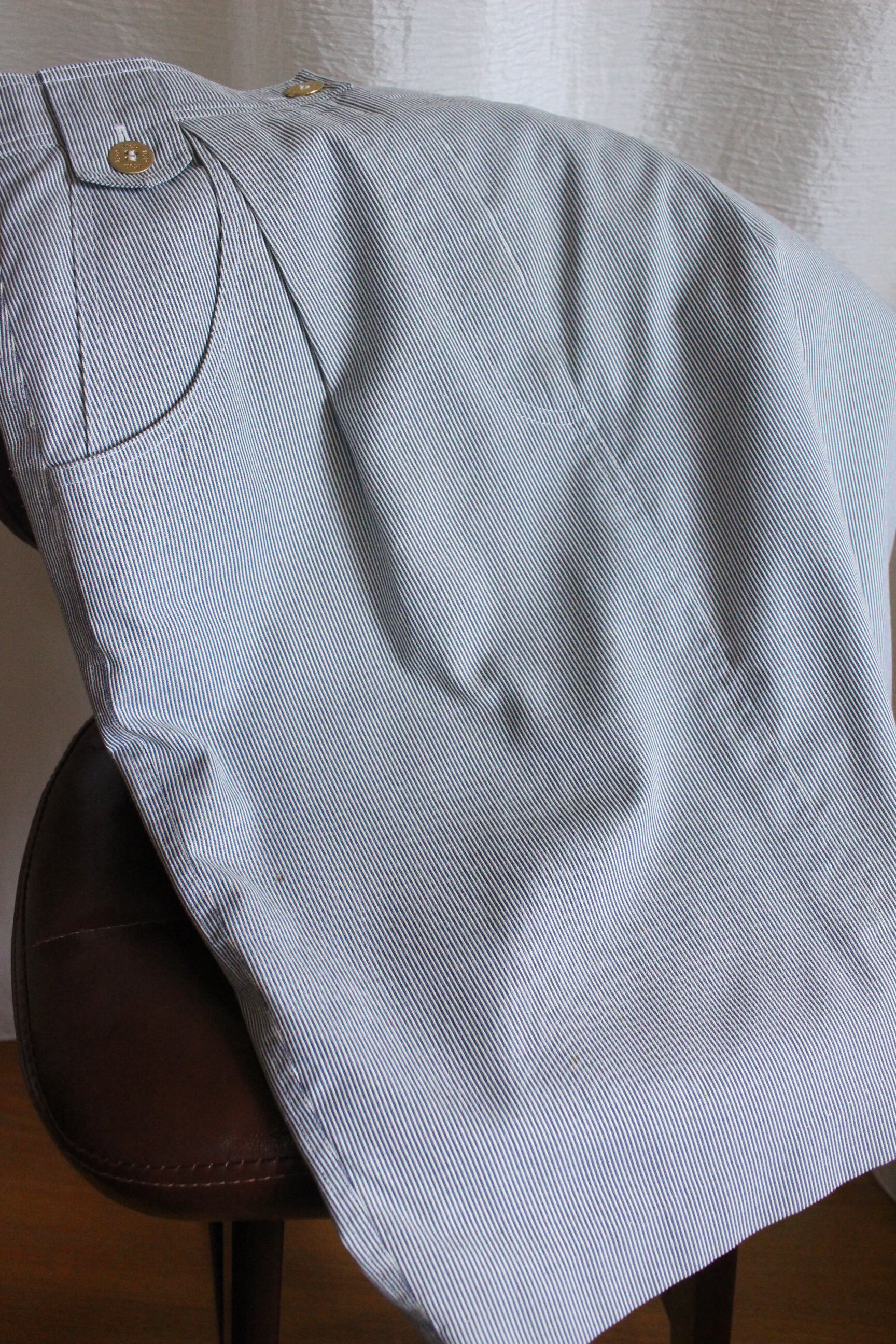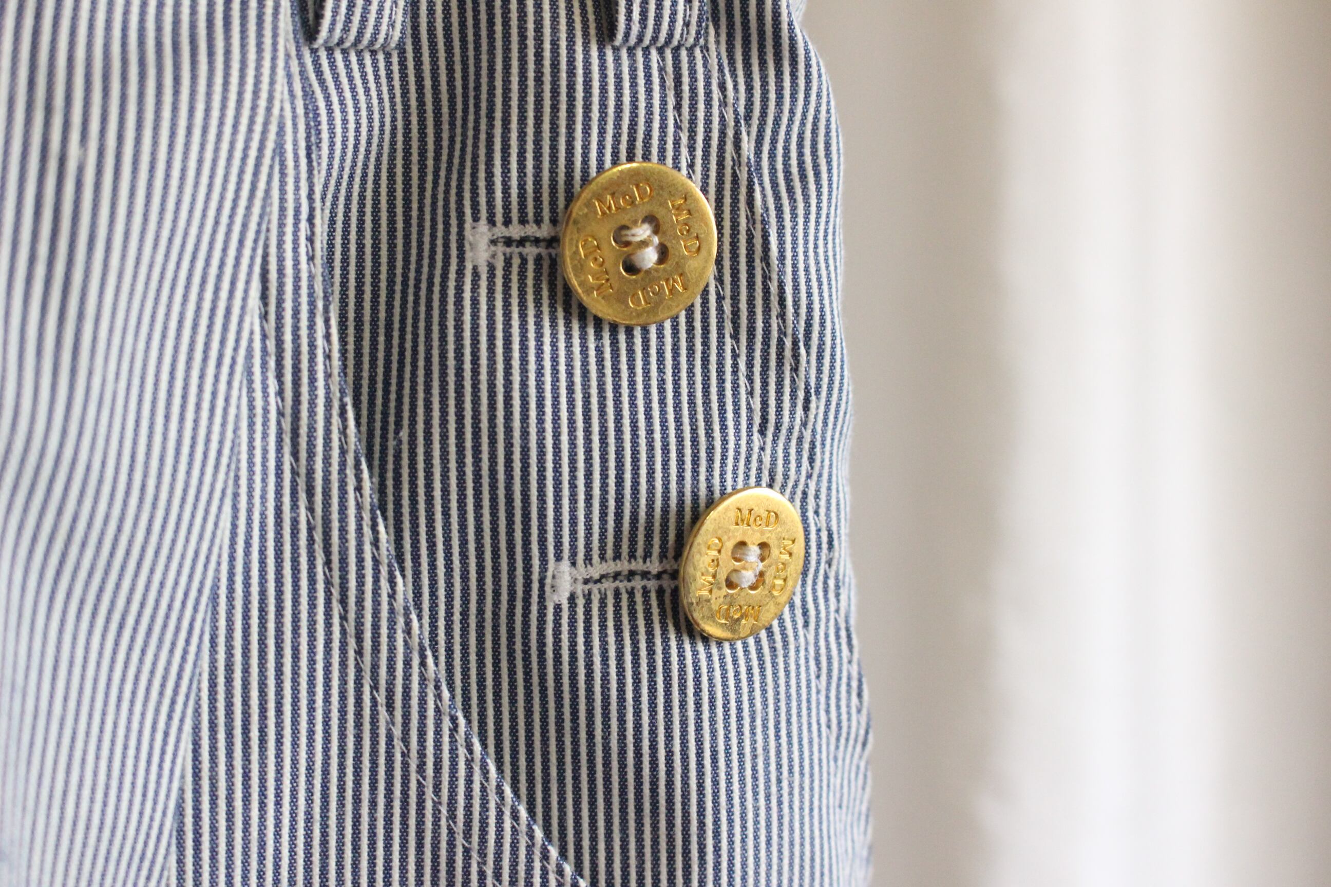 ストライプにゴールドのボタンがクラシカルなスカート。