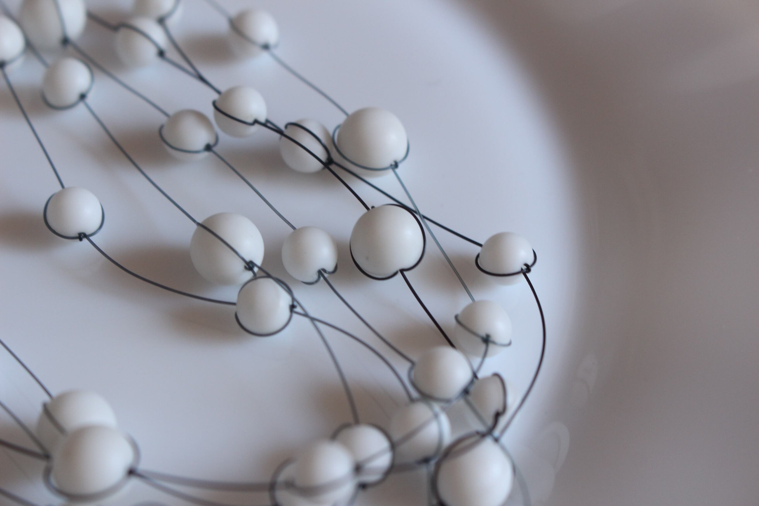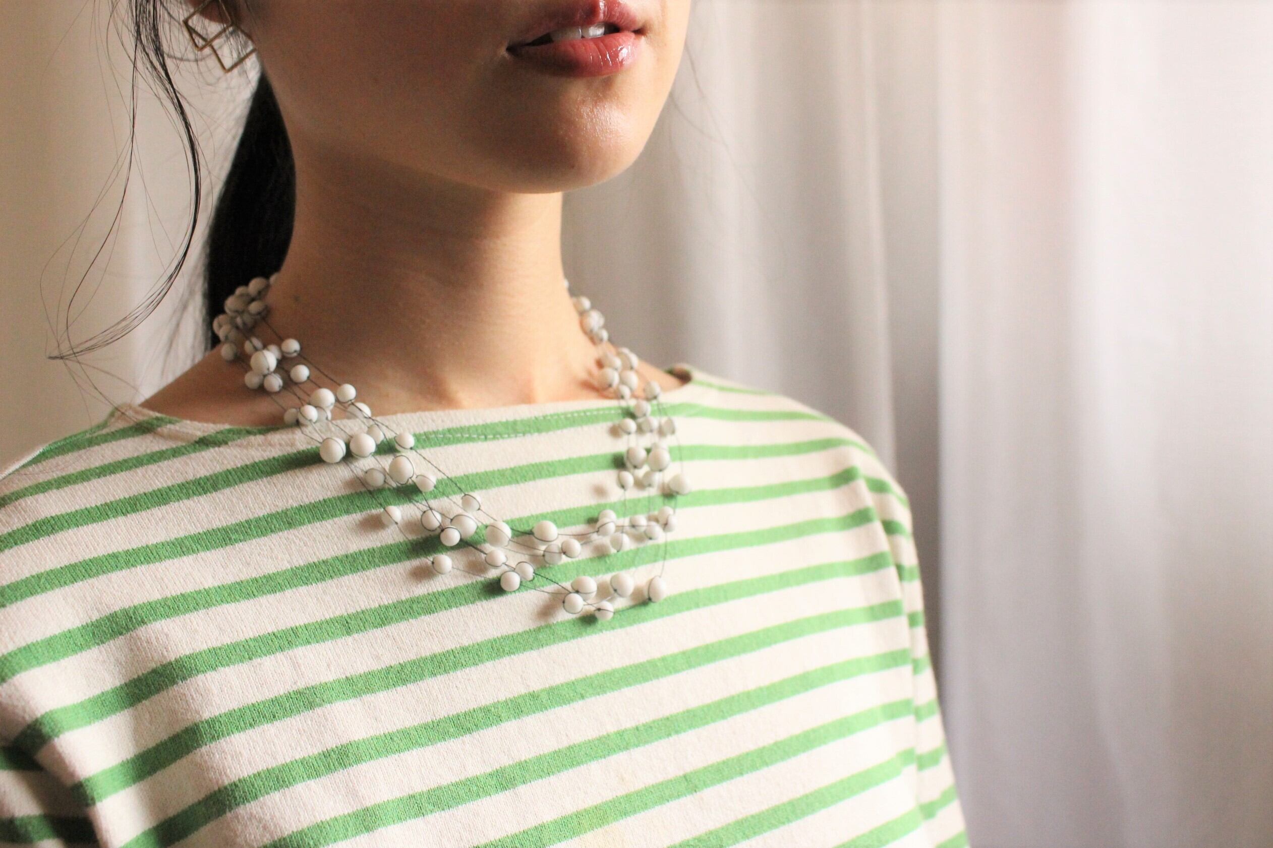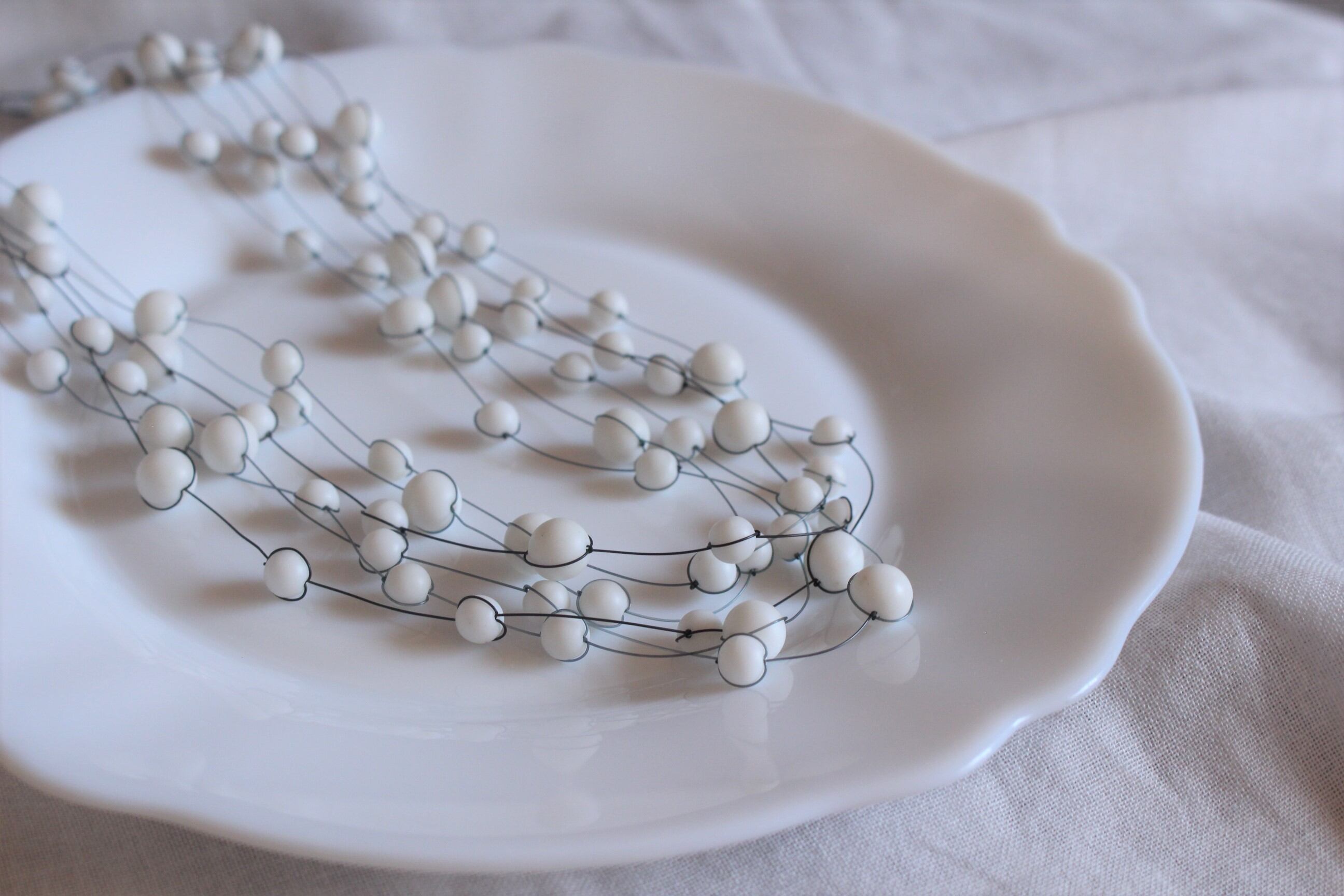 バブルのように散りばめられたホワイトビーズが特徴的。