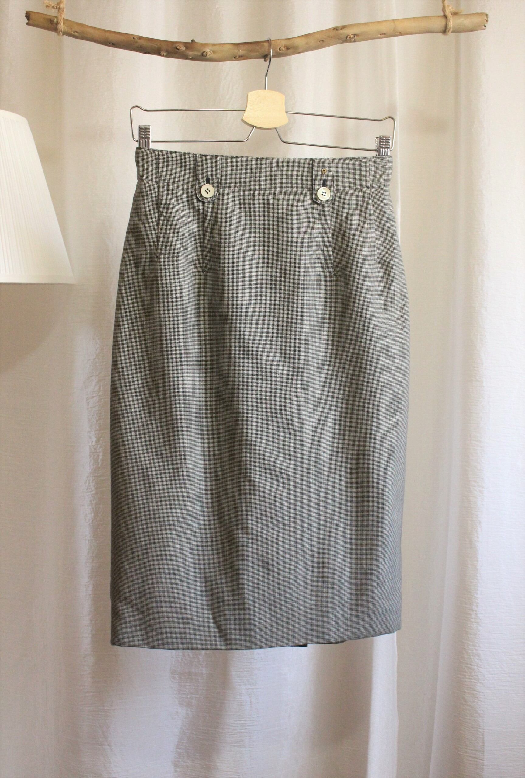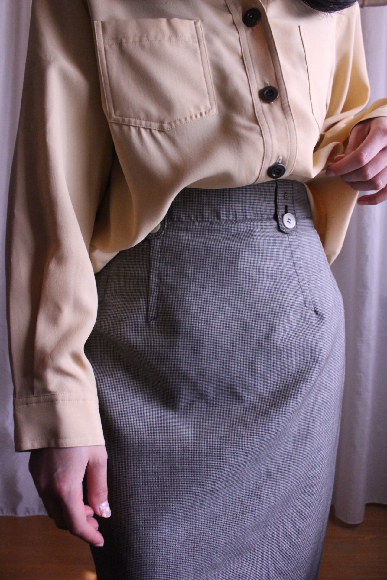 ウエストの大きめのボタンが可愛らしく、生地は細かい風車柄。