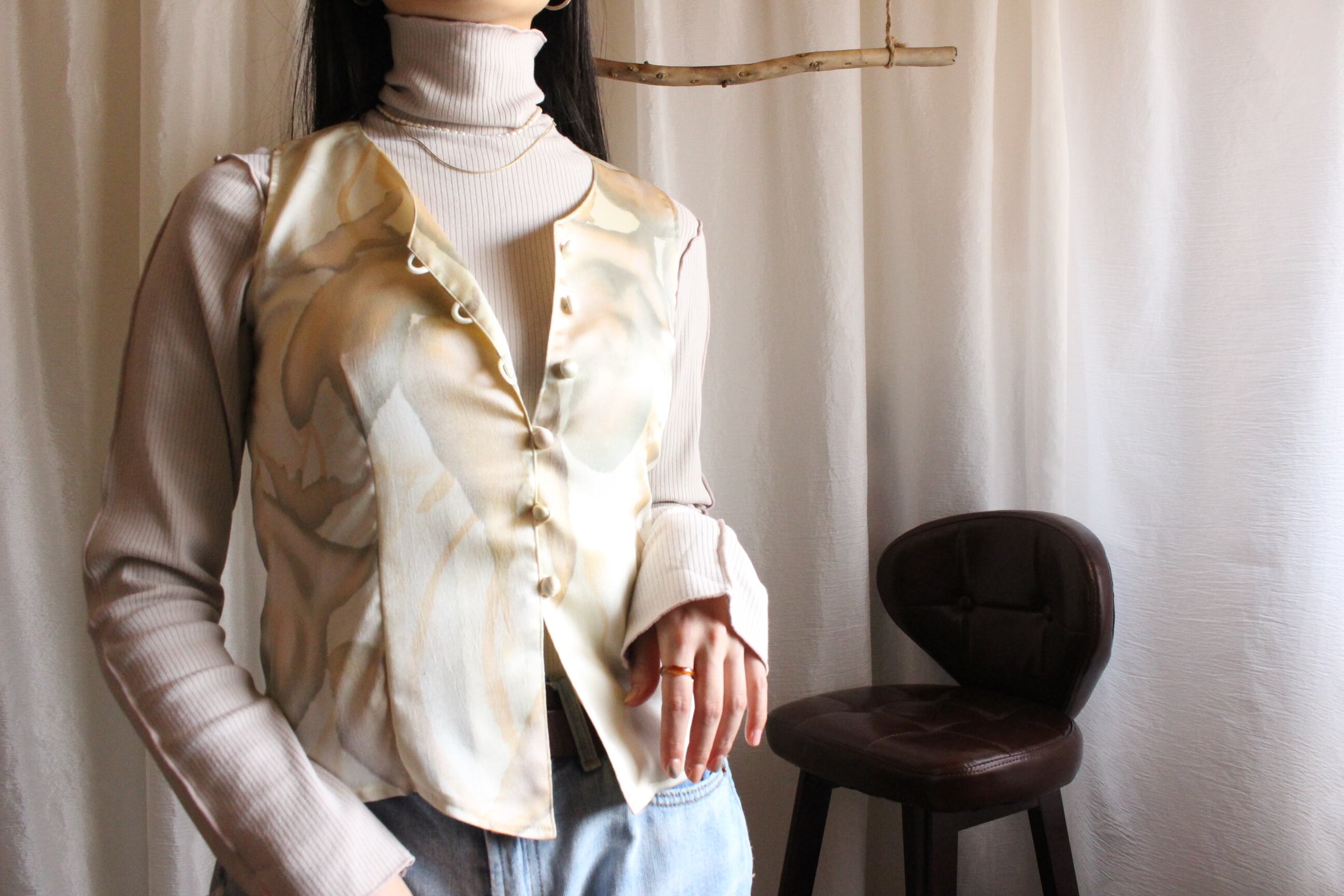 水彩絵の具を水面に広げたような特徴的な模様のベスト。