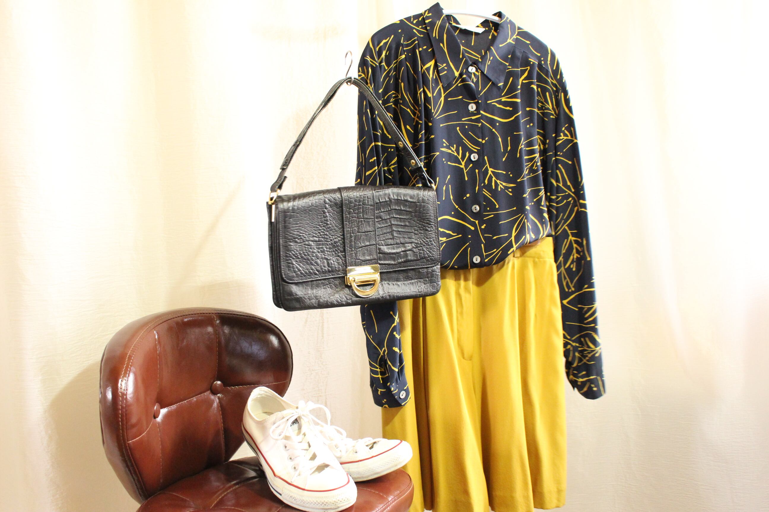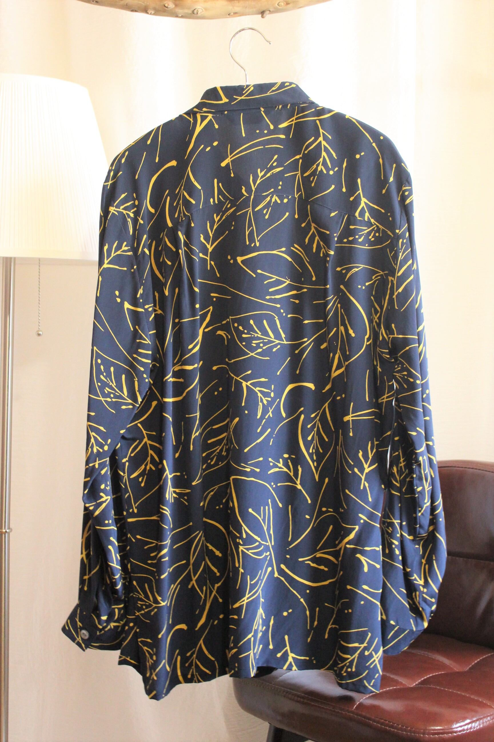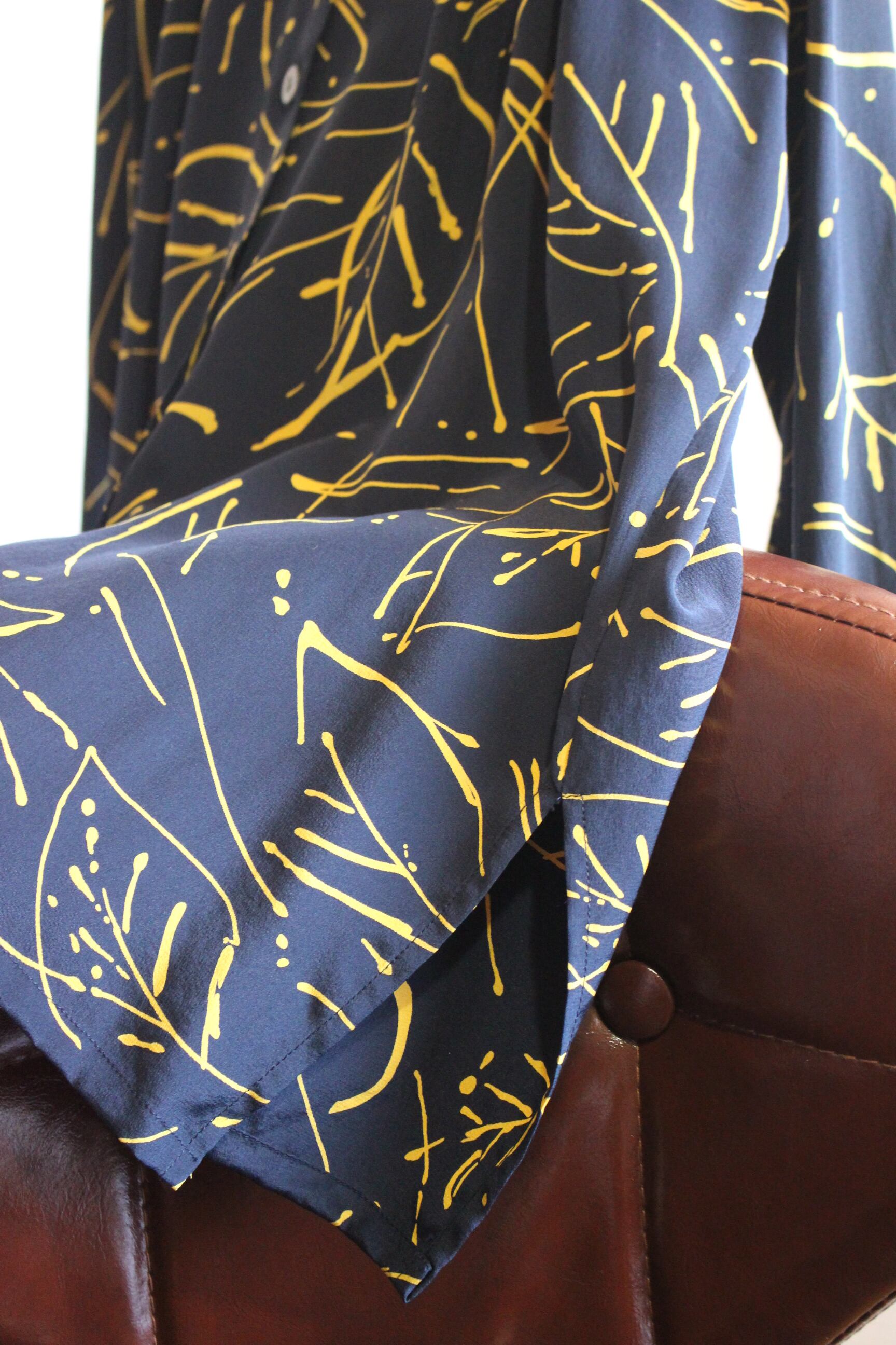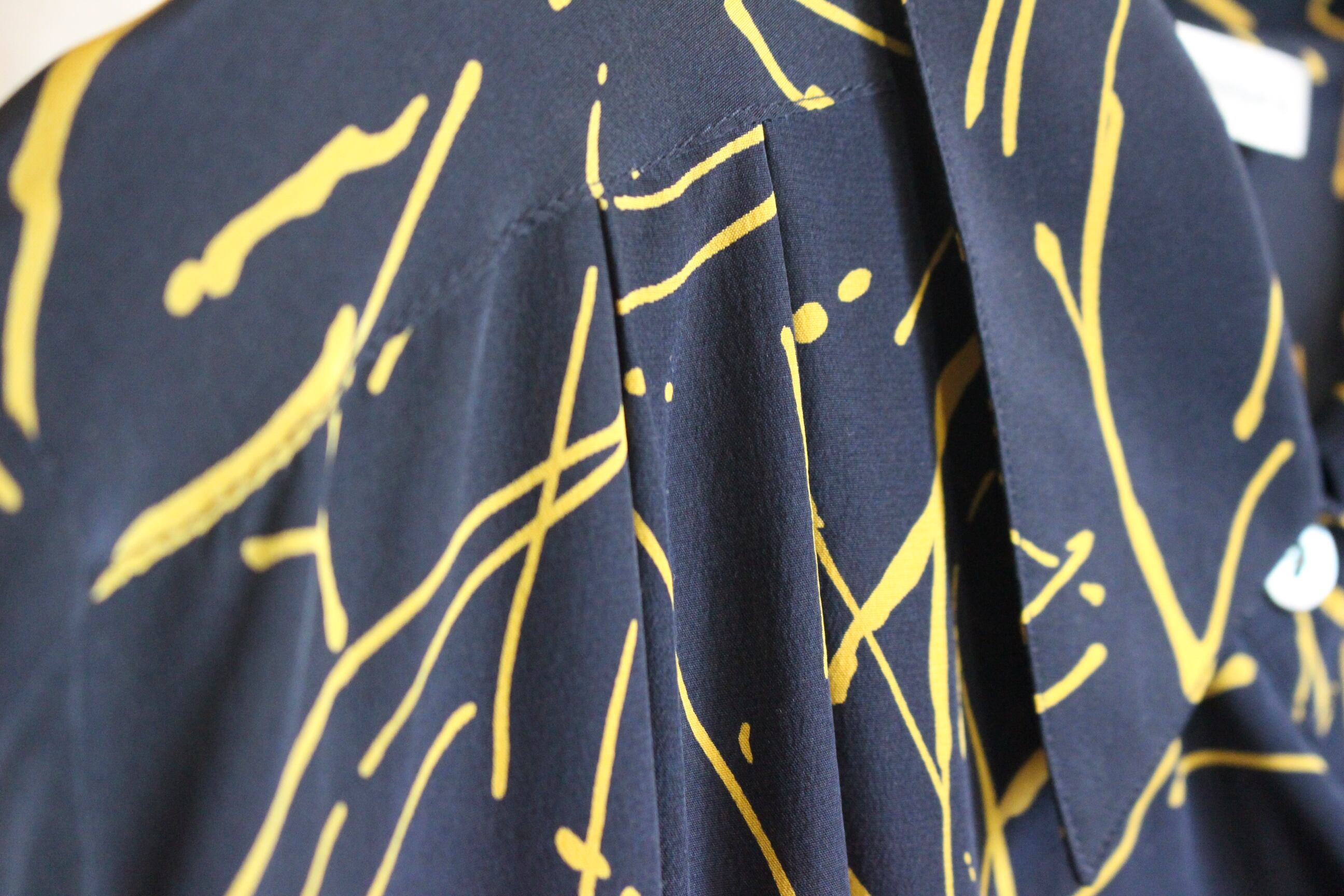 黒地に黄色コントラストが特徴的なシルク100%のシャツ。