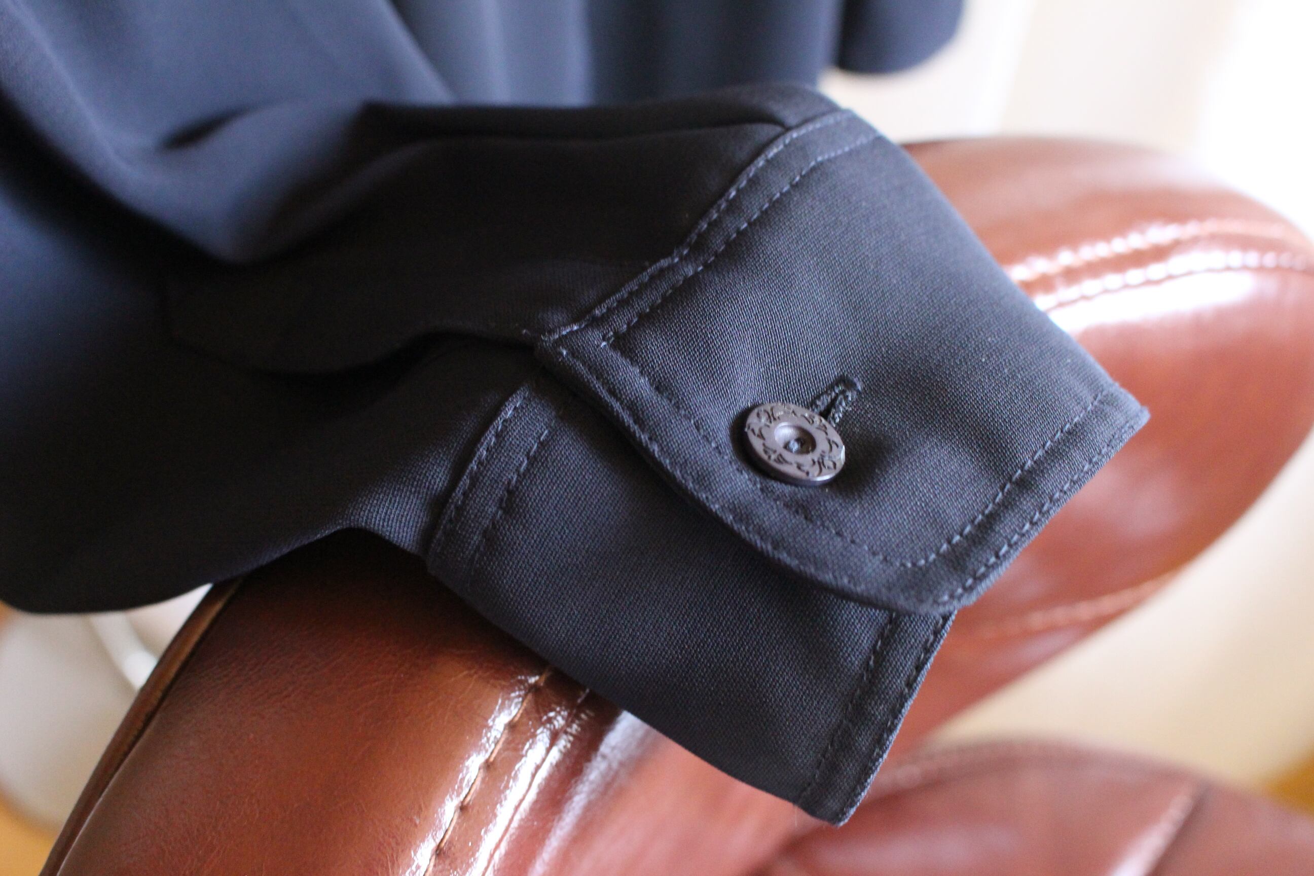 ボタンの彫刻デザインまでがおしゃれな一点です。