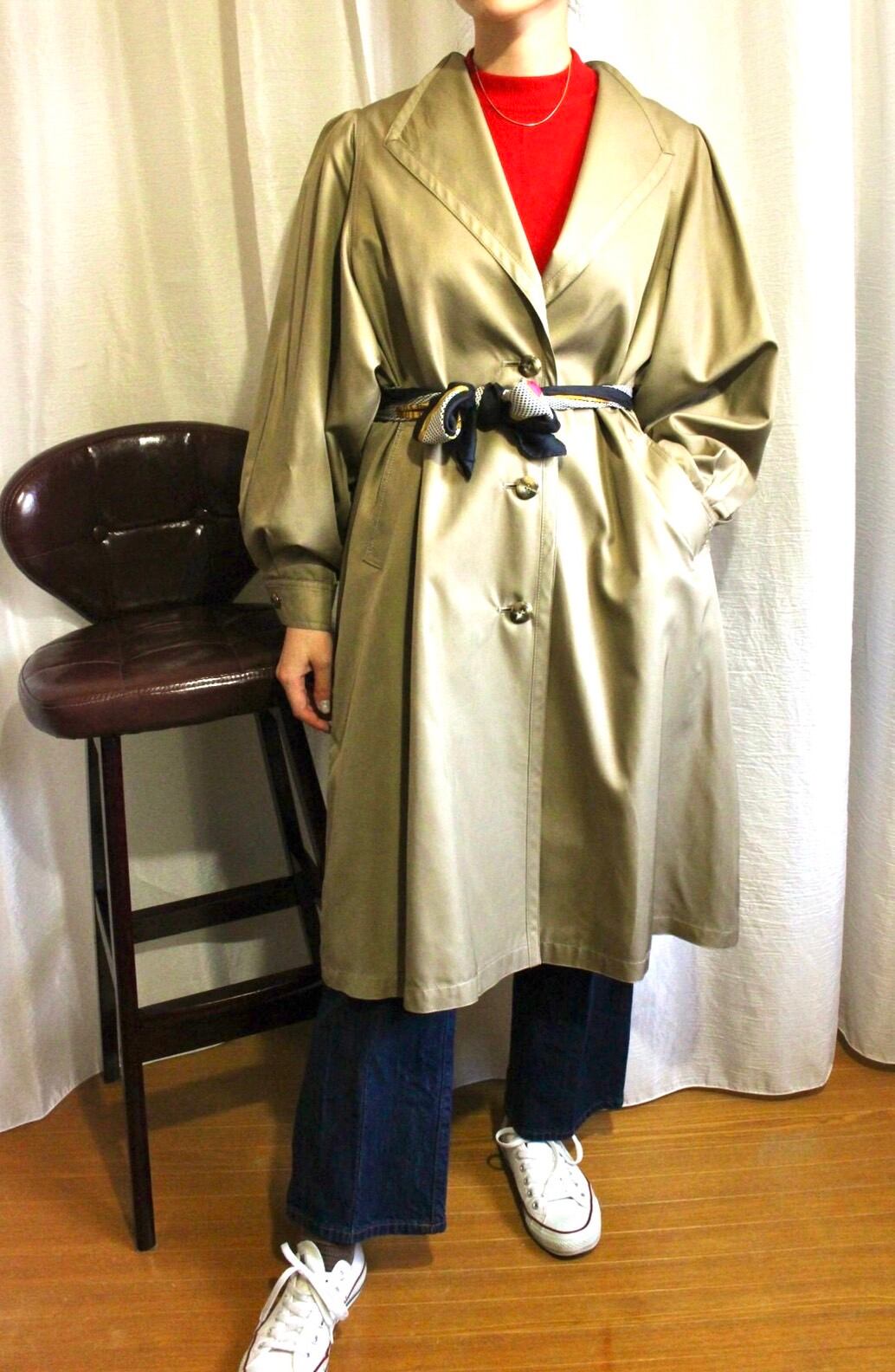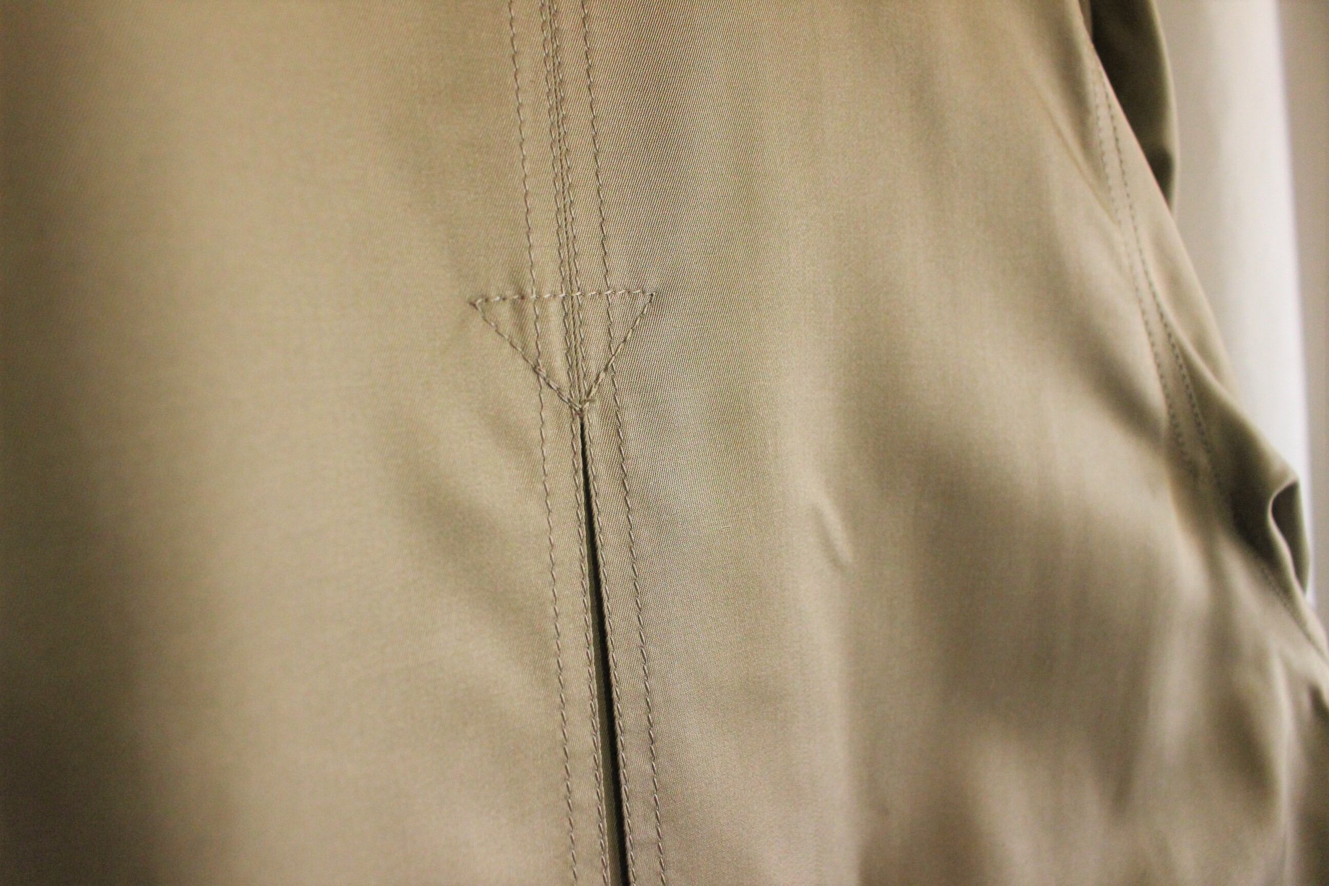 全体のシルエットは、ウエストあたりから裾に向かってふわっと広がる女性らしい形です。裏地もおしゃれ。