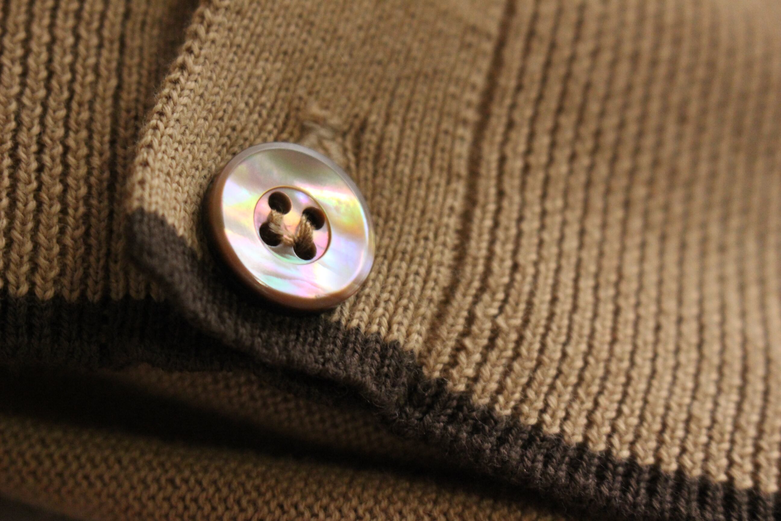 ボタンは光の角度によって色が変わる玉虫色で、とてもキレイです。
