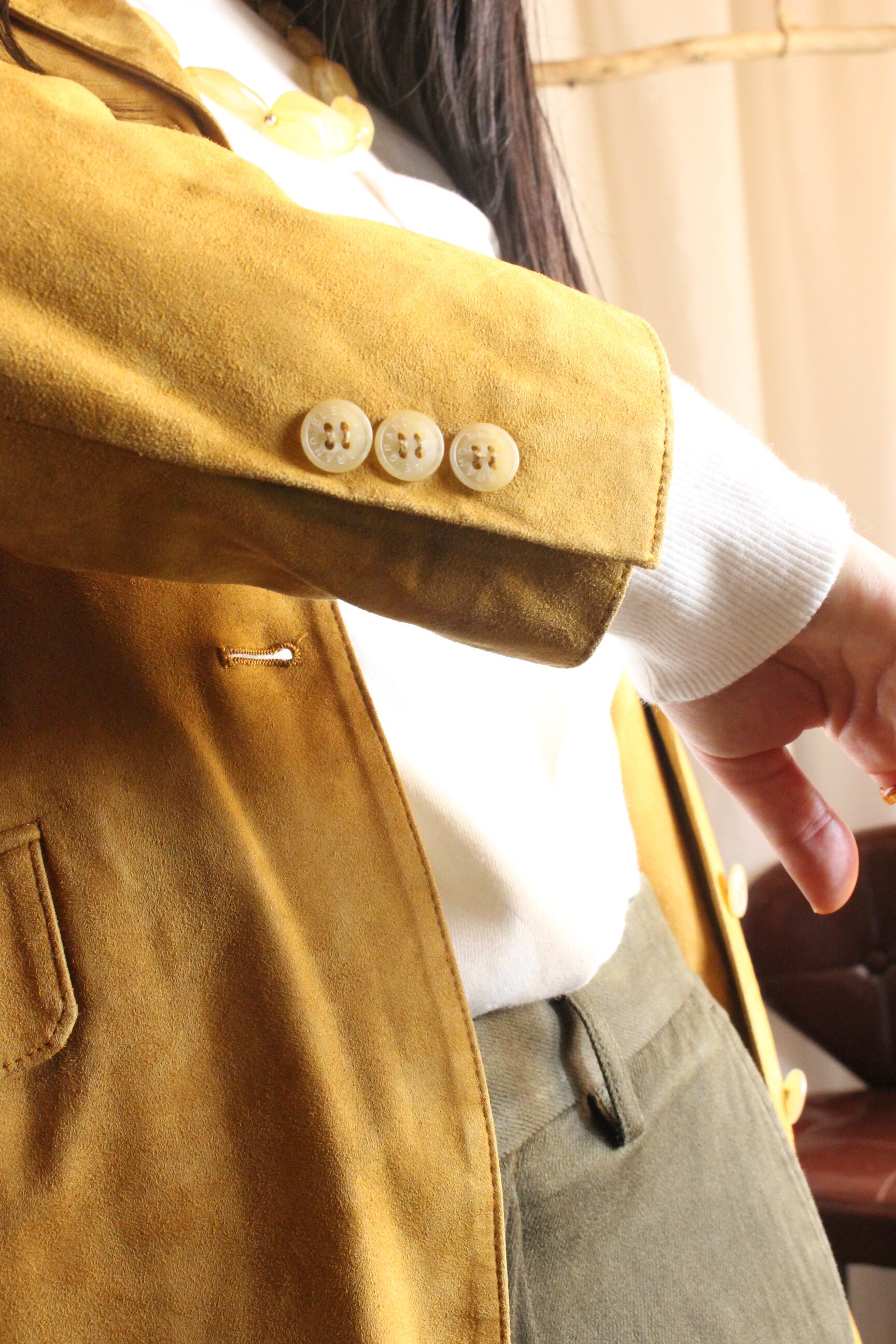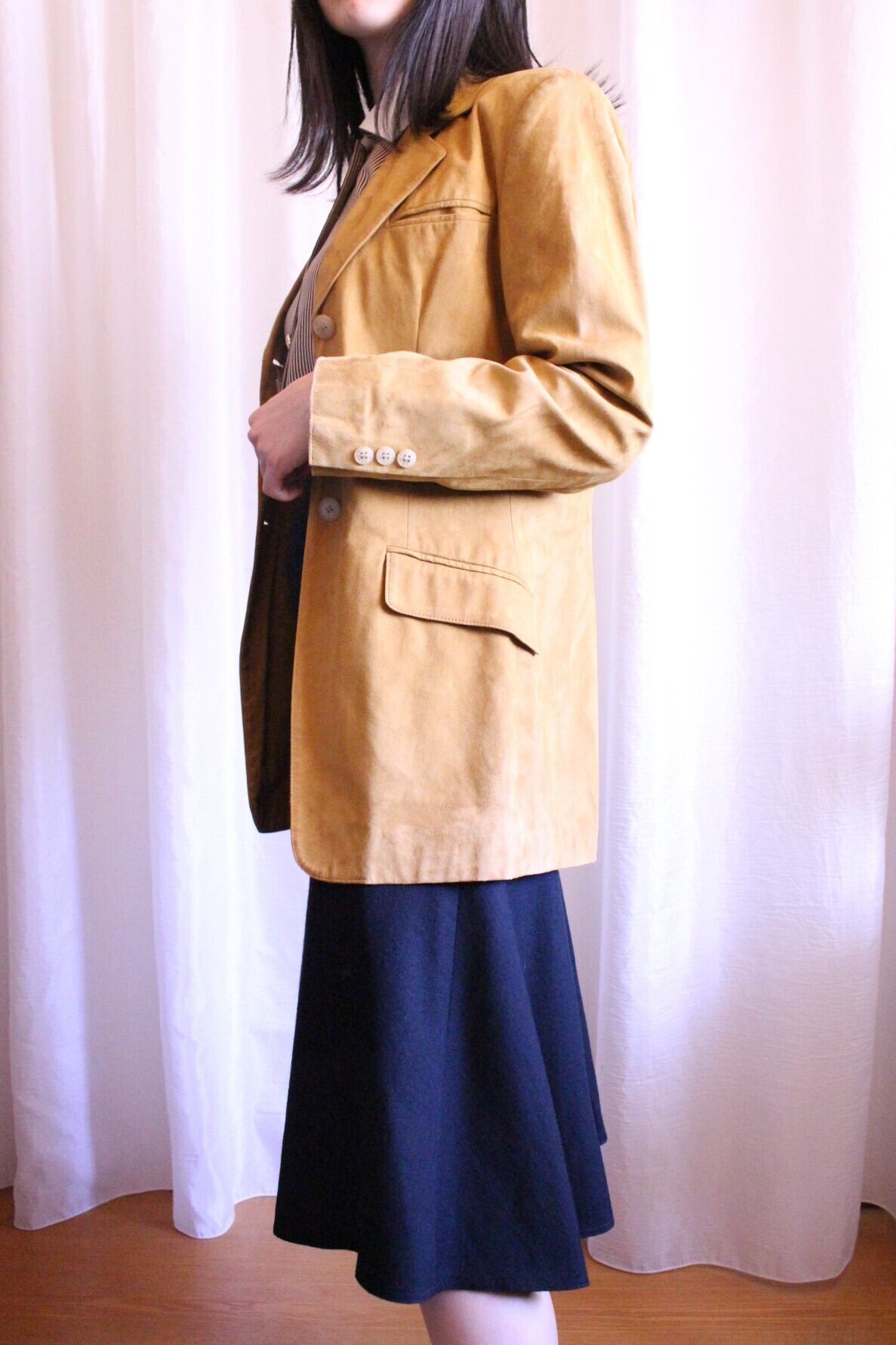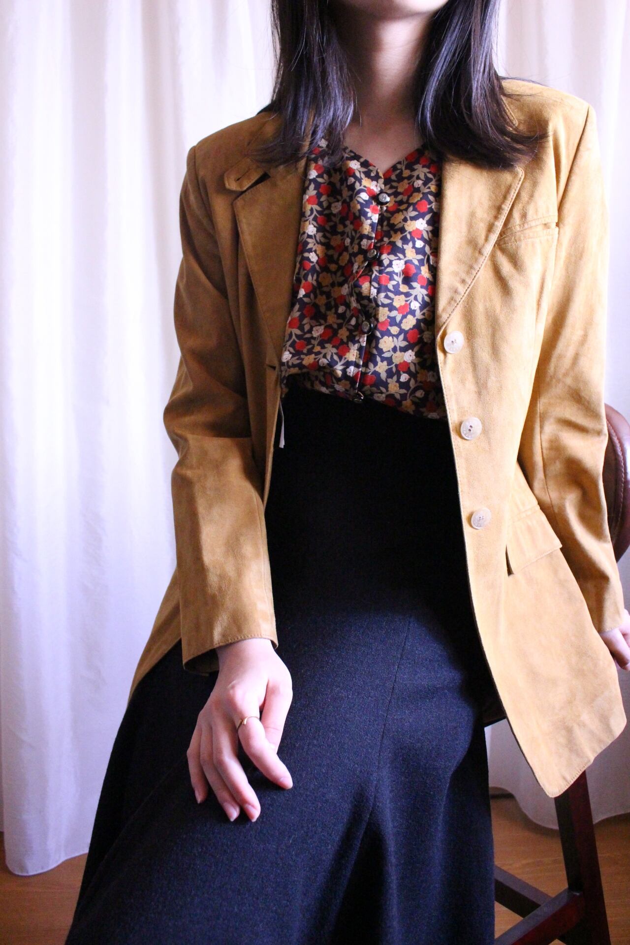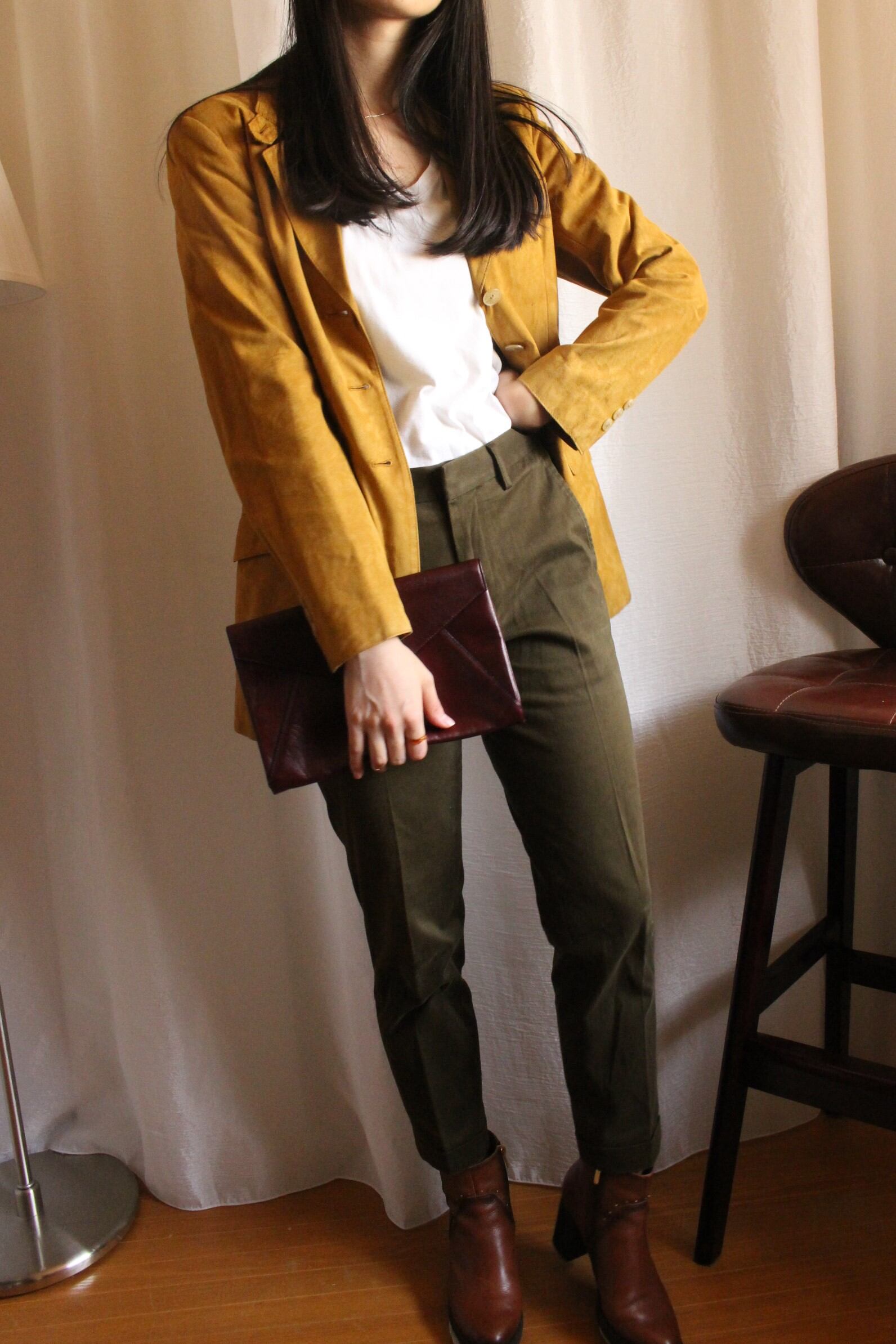 スウェード生地で、シンプルコーデに合わせるだけでおしゃれ感UP。