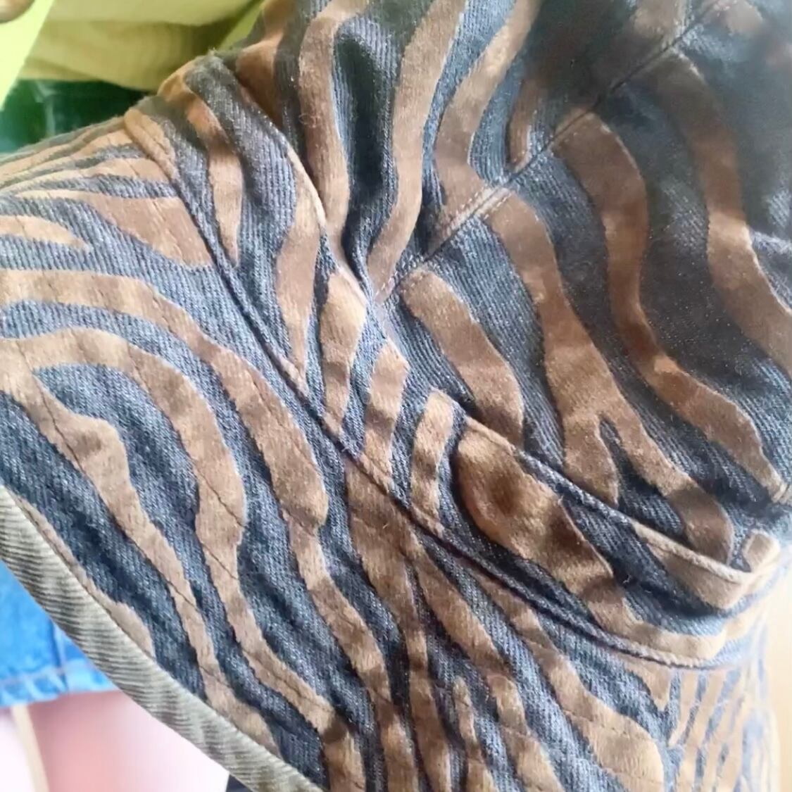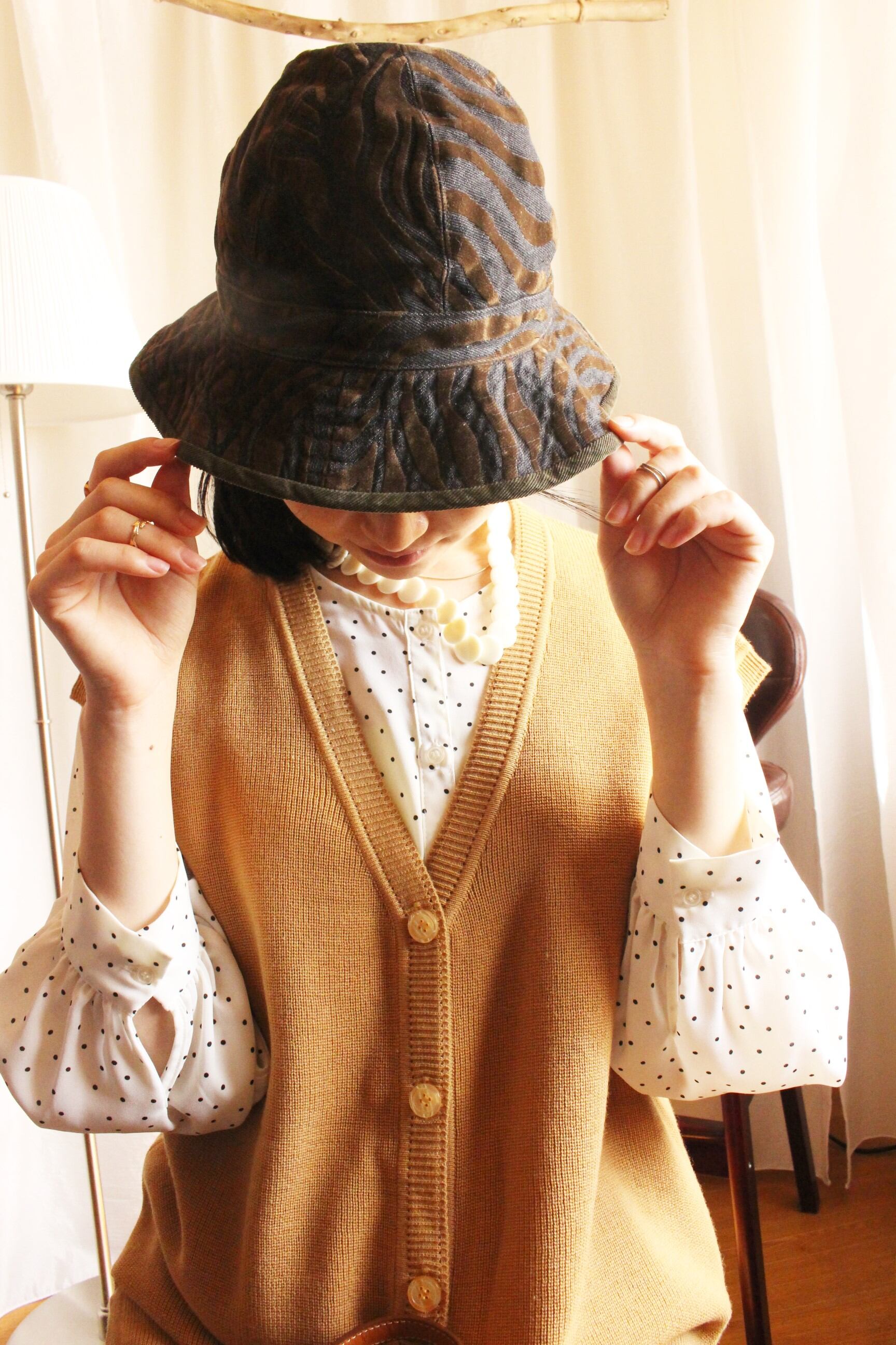 コーデュロイ生地とベスウェード使用のオシャレなゼブラ模様の2wayバケツハット。