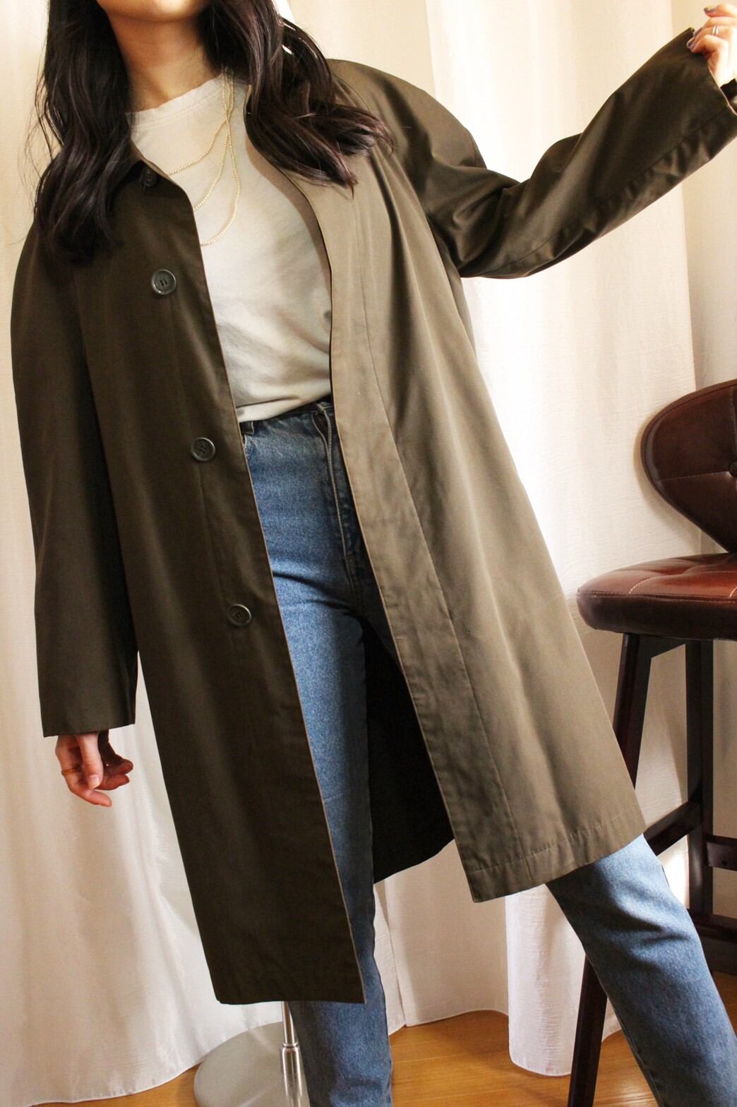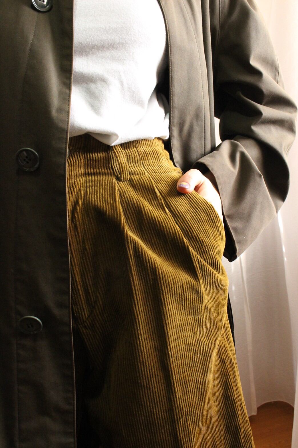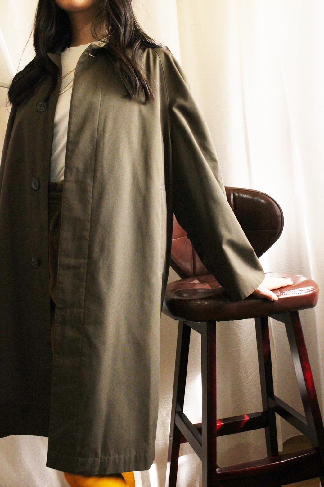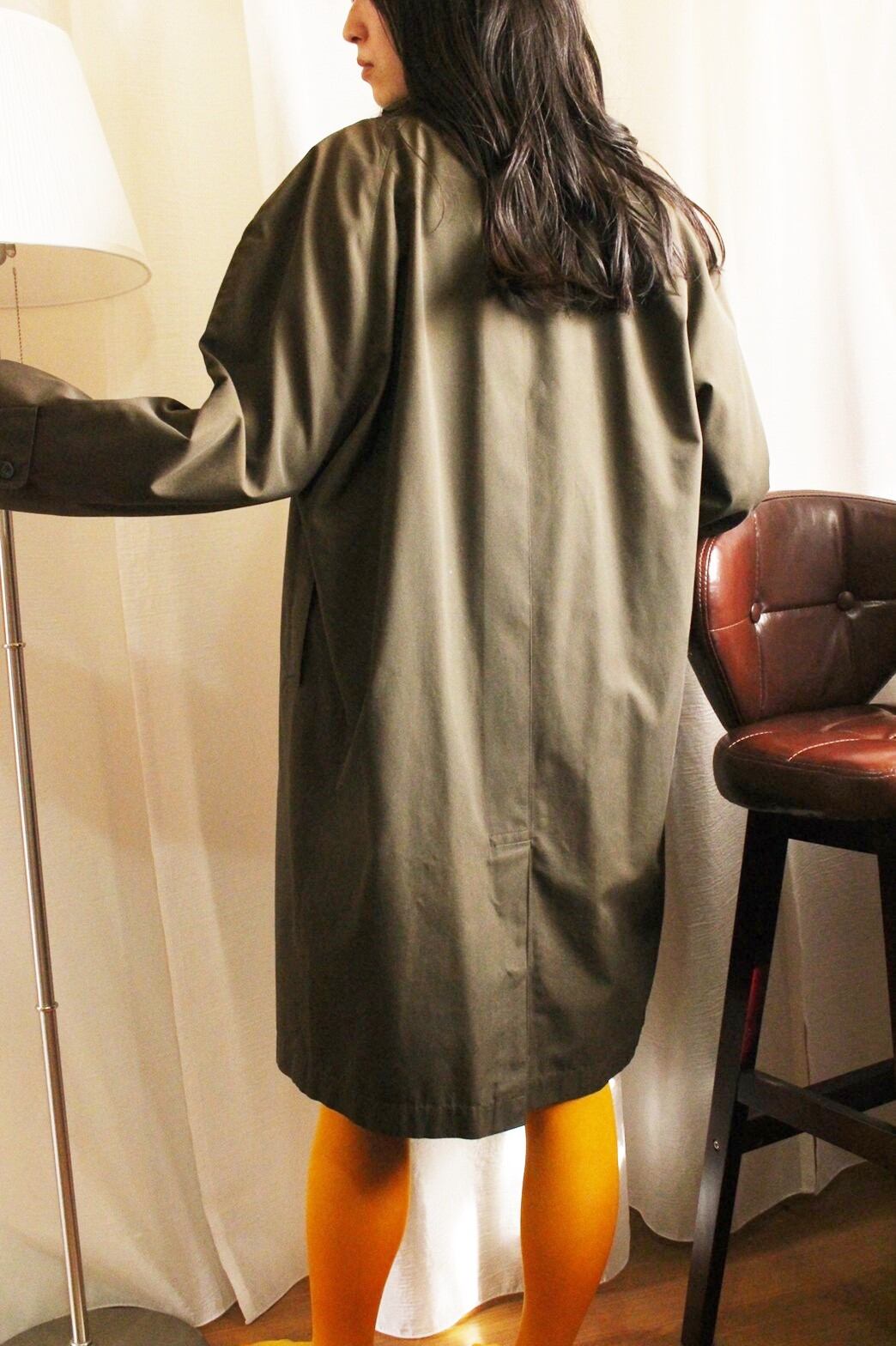 ストンと落ちる肩のシルエット。落ち着いたモスグリーンカラーです。