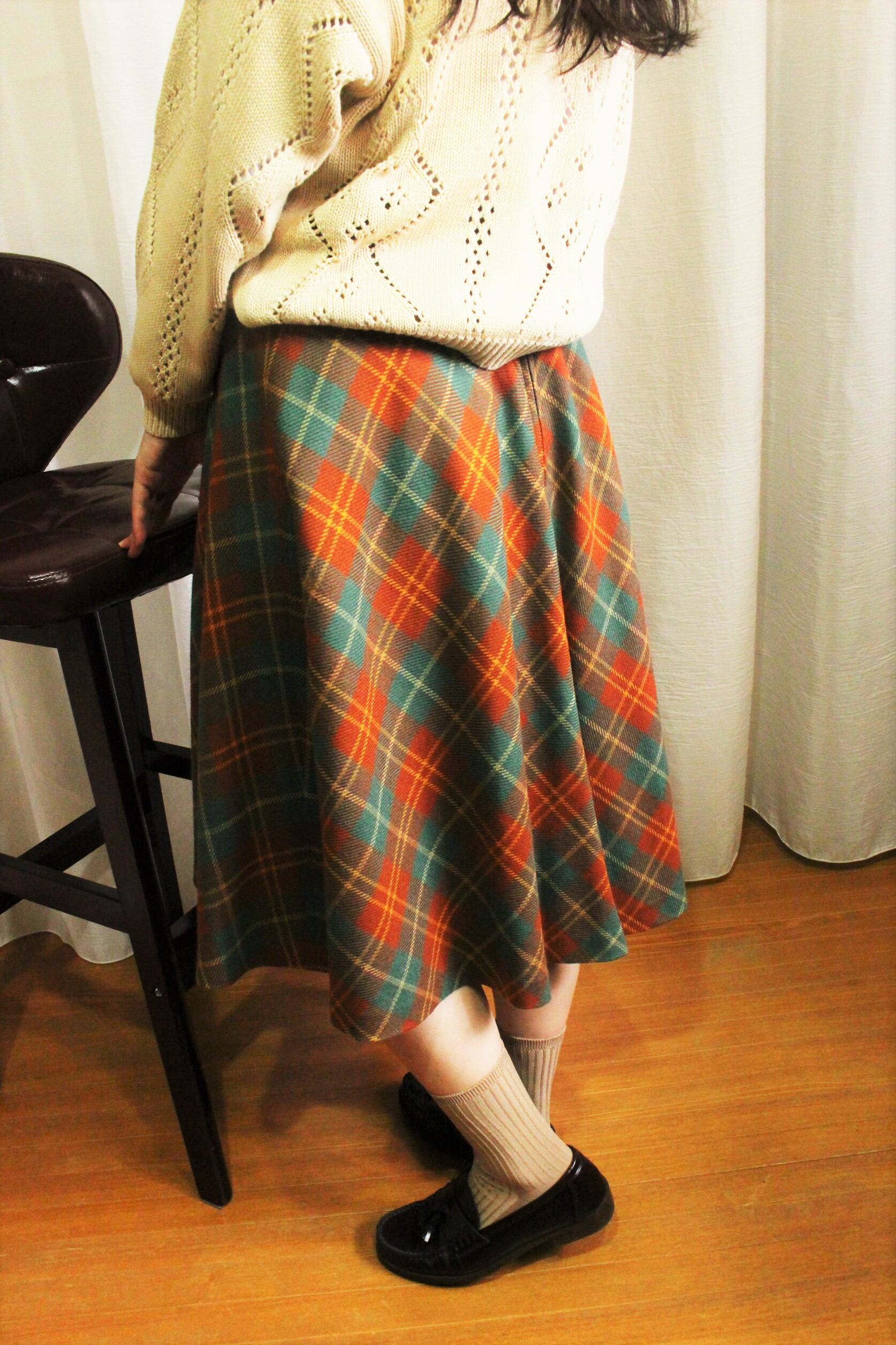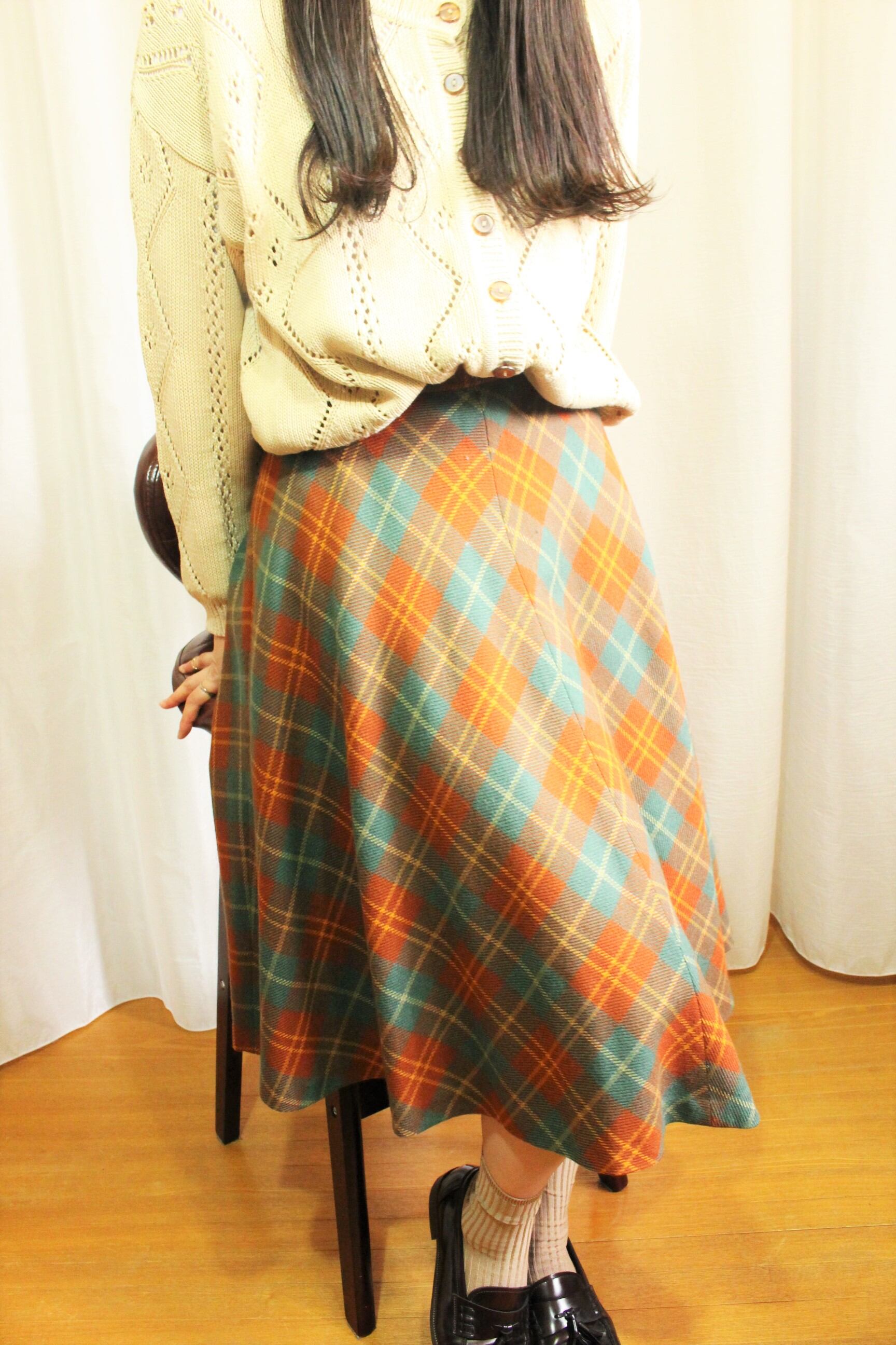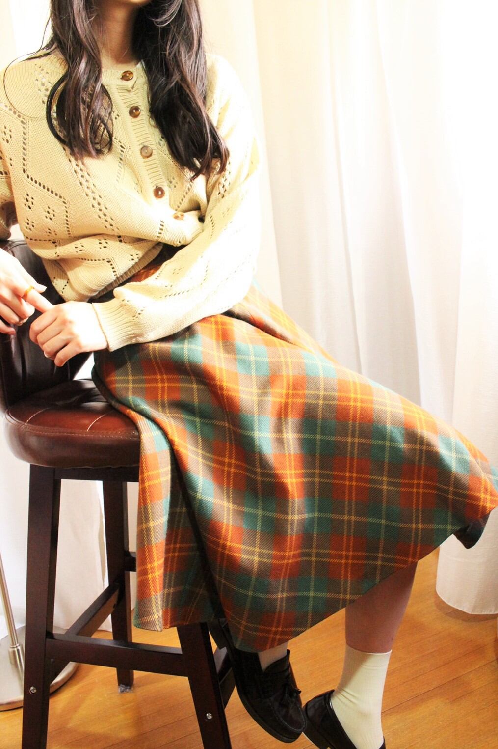 優しい色合いとひざ下丈のスカートは全体的に柔らかい印象です。