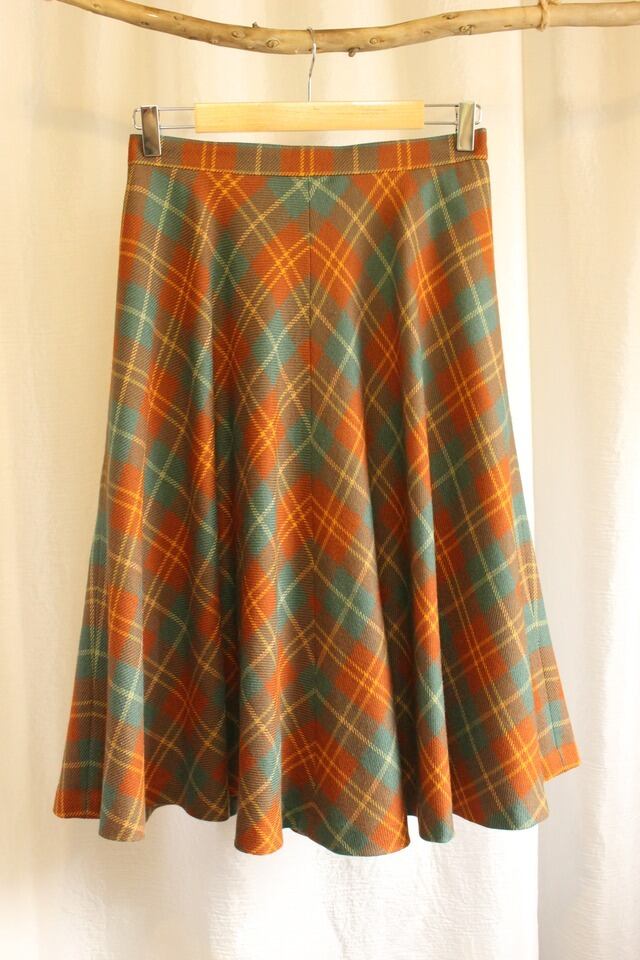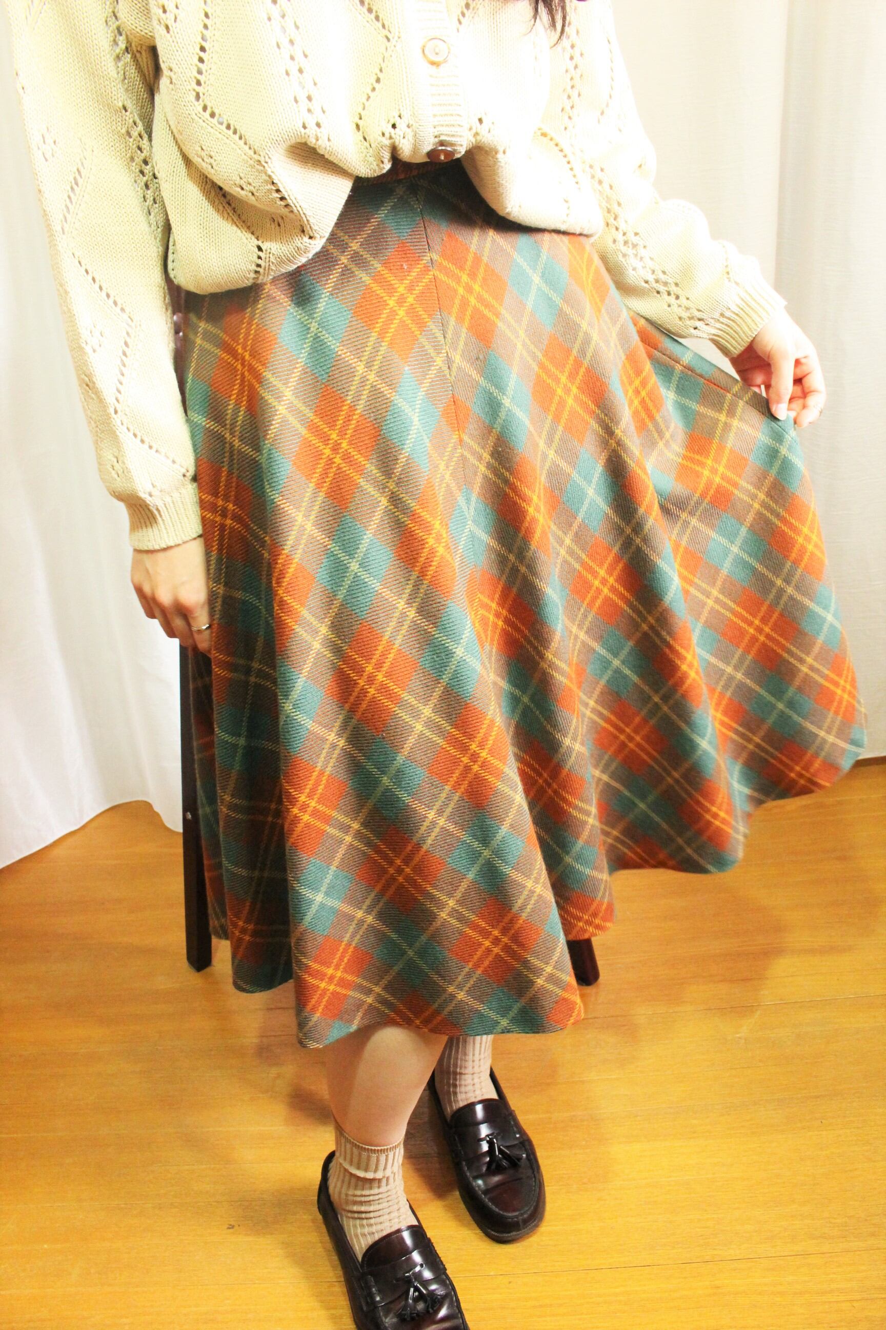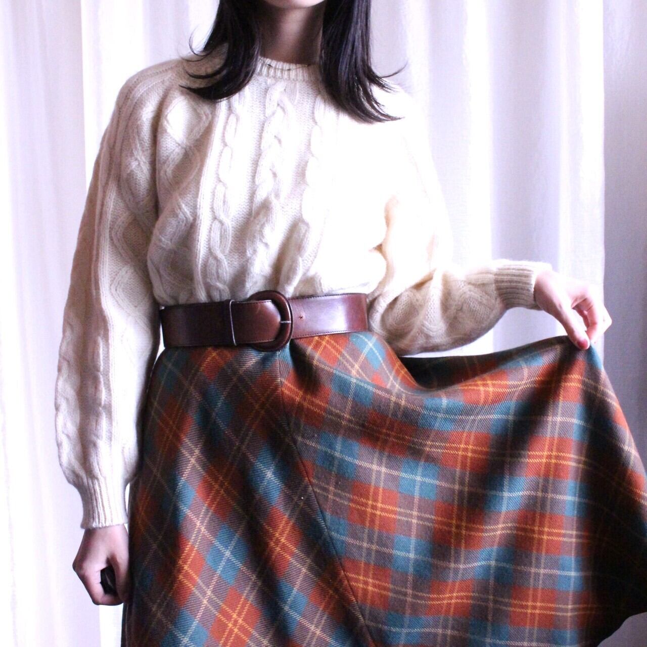 優しい色合いとひざ下丈のスカートは全体的に柔らかい印象です。