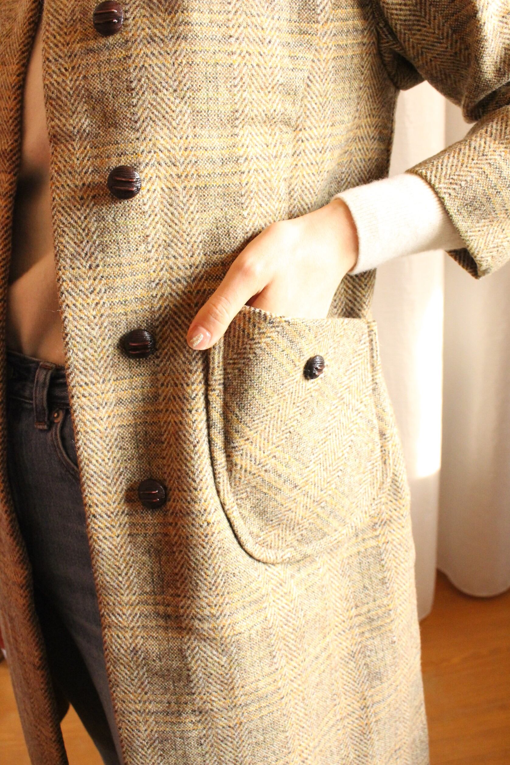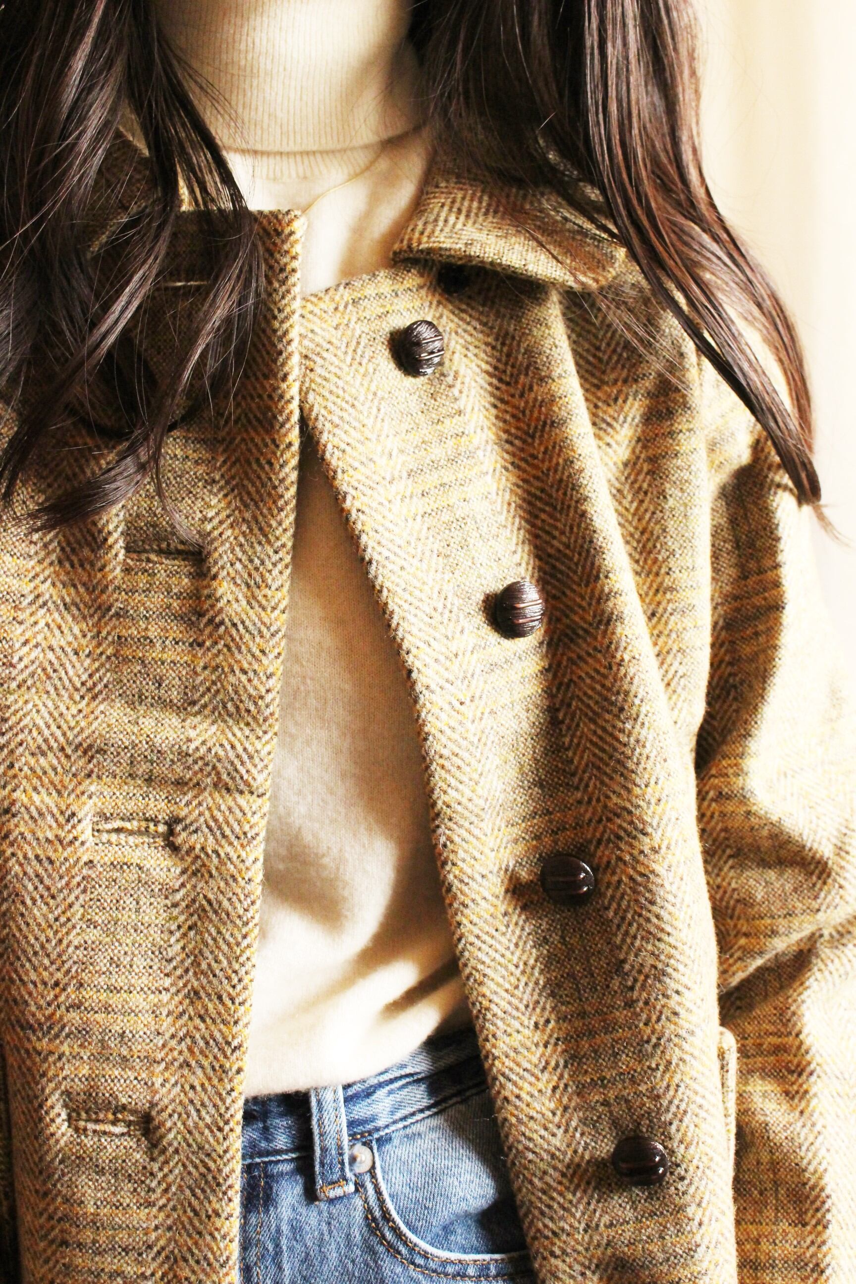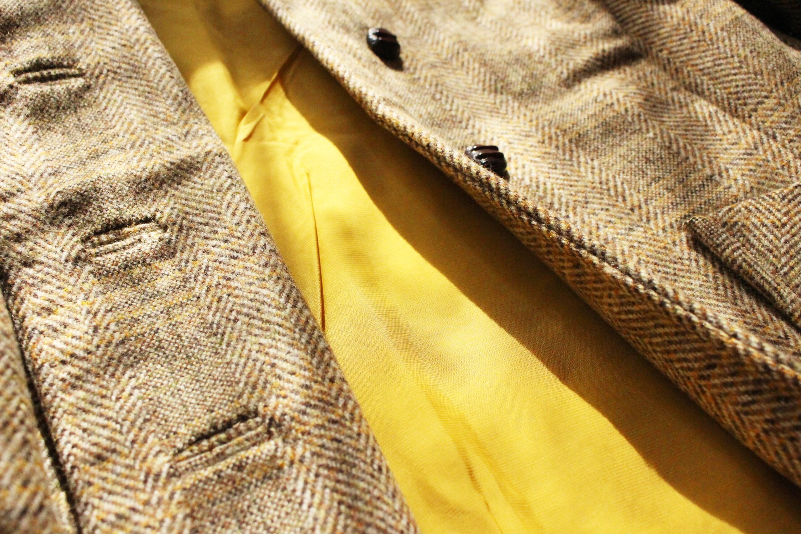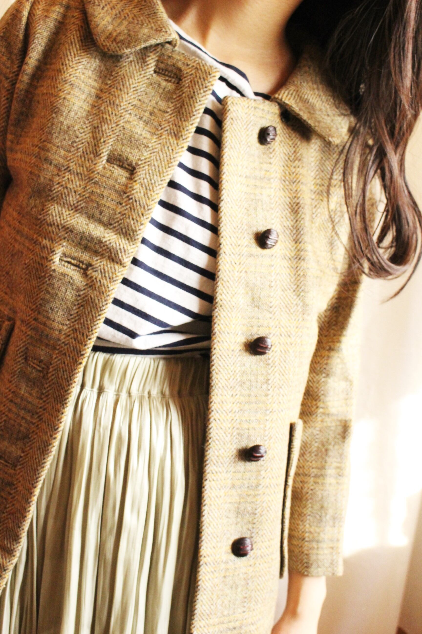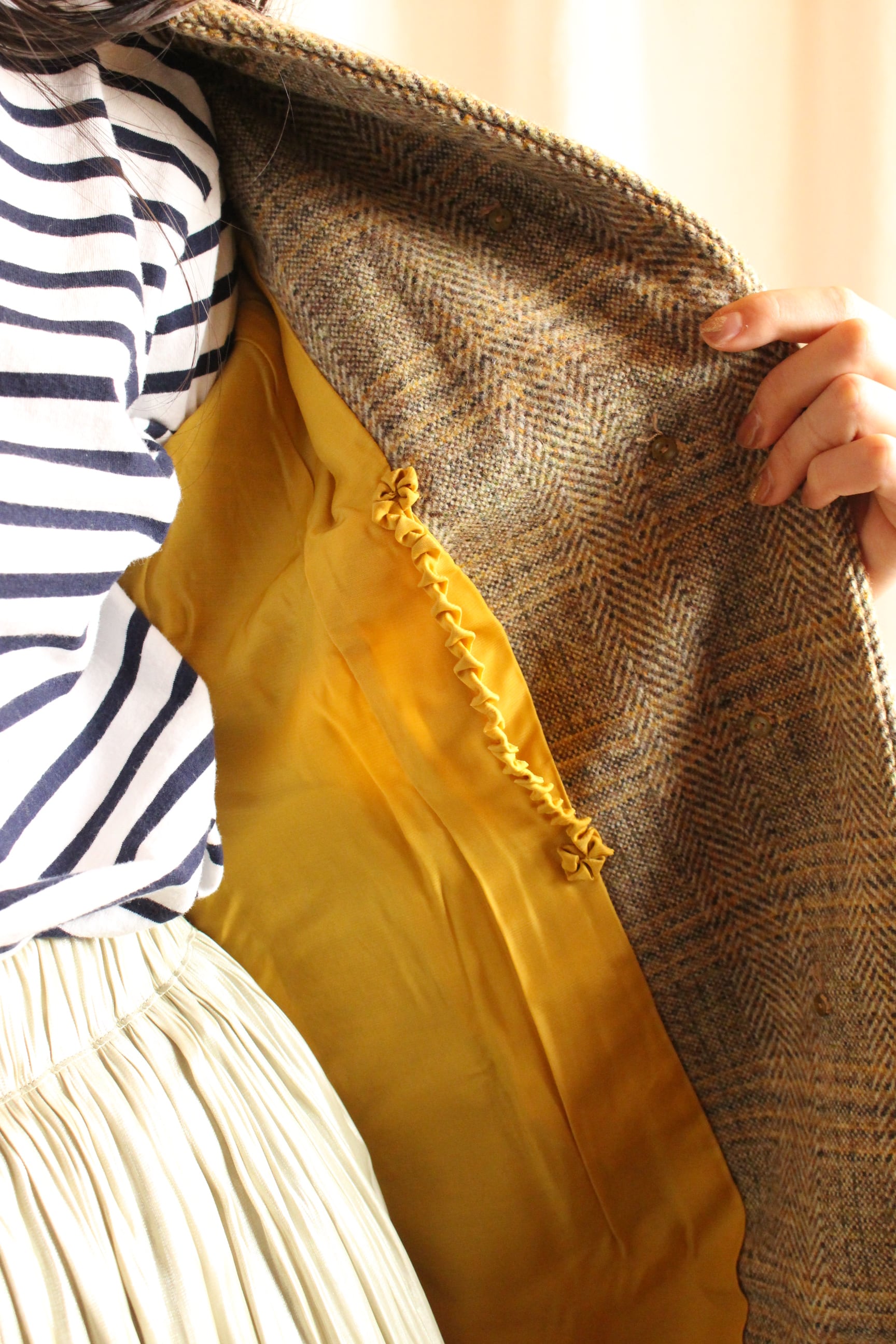 チラッと見える裏地のイエローが生地の色とマッチしていておしゃれです。